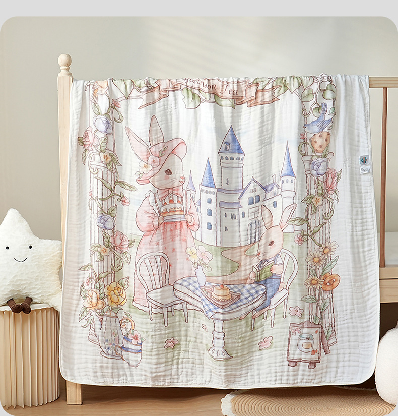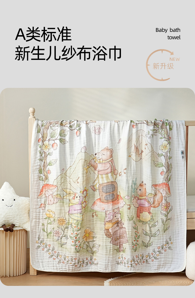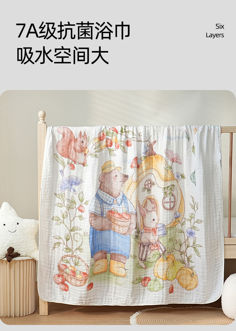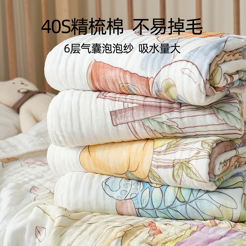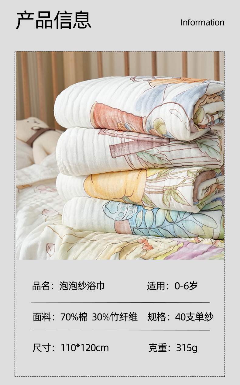 婴儿浴巾绉布独花新生儿童盖毯宝宝抱被泡泡纱6层纱布浴巾批发