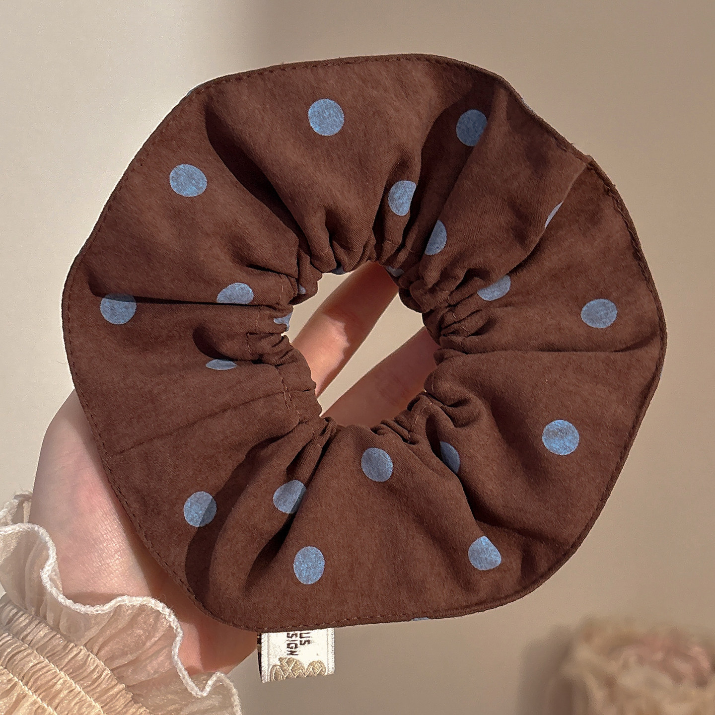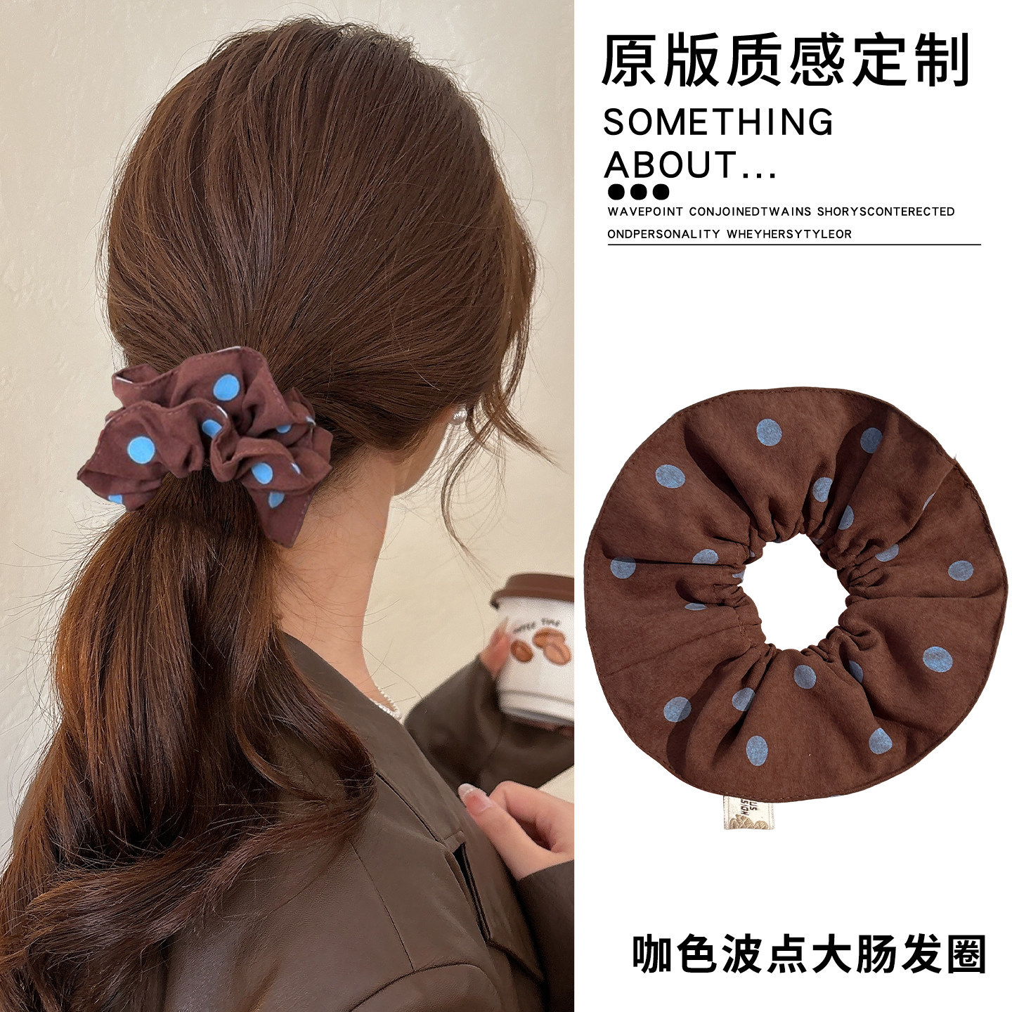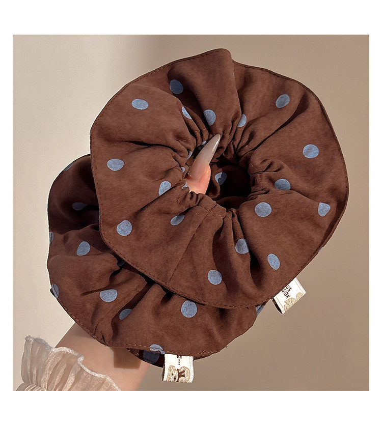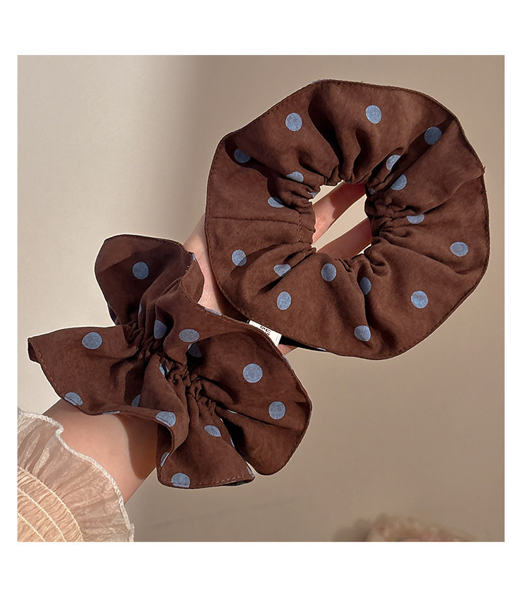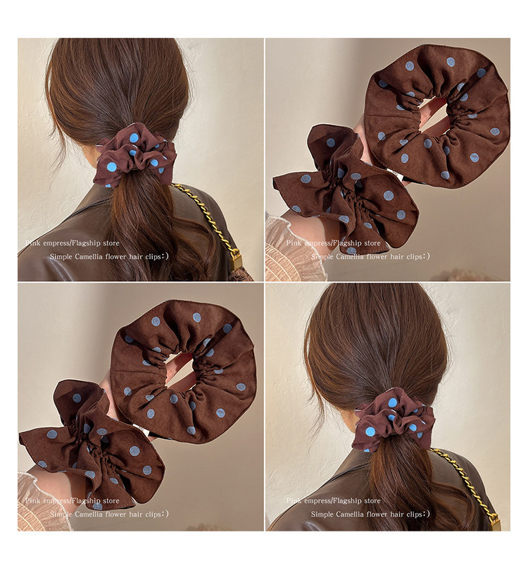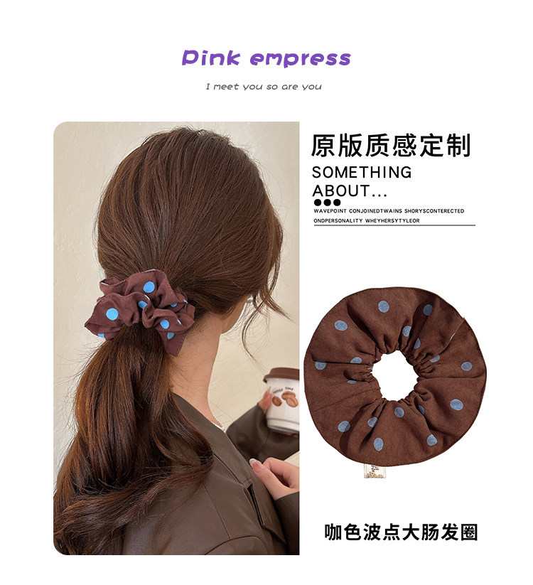 复古咖色波点双层大肠发圈女2026新款扎头发绳高弹力丸子头绳发饰