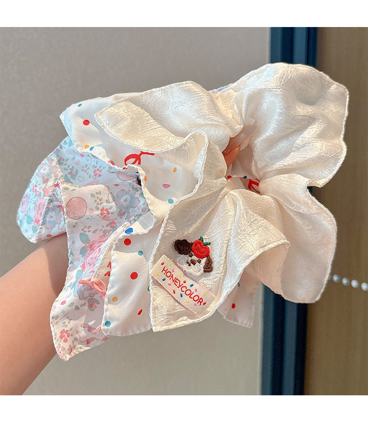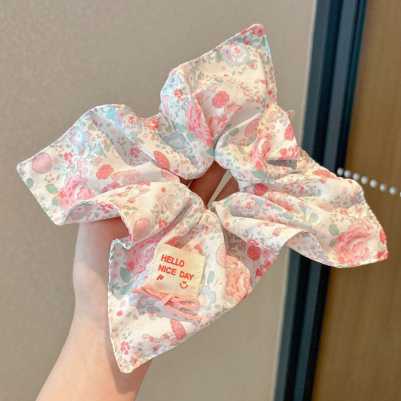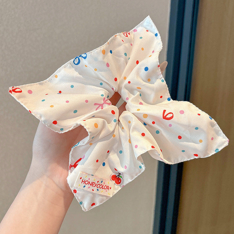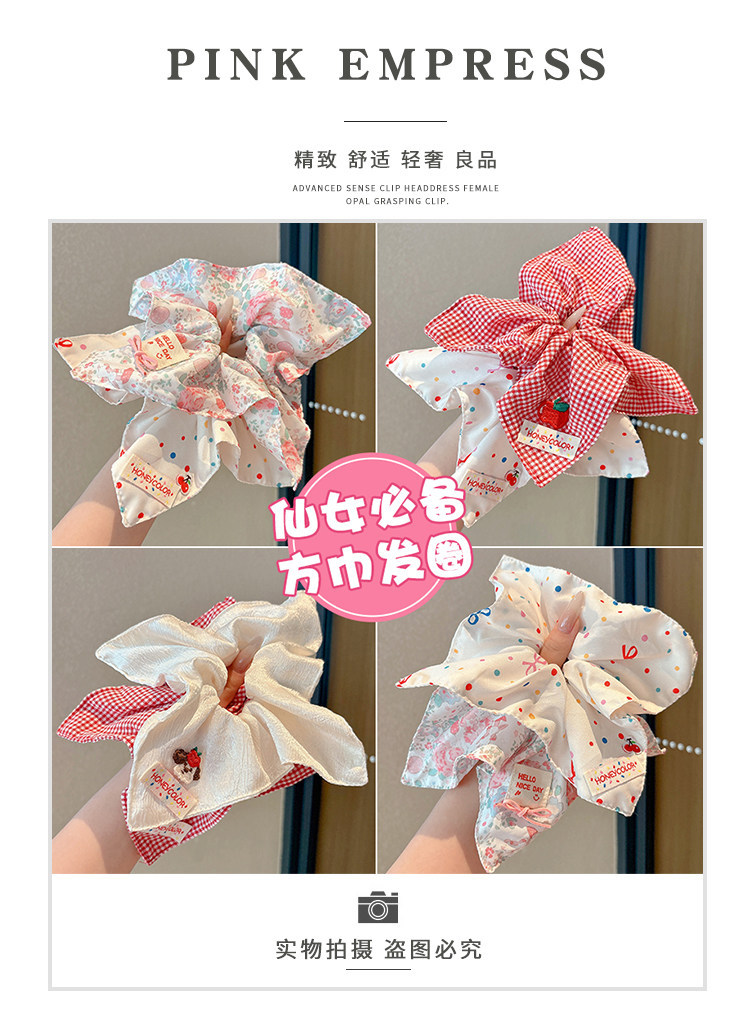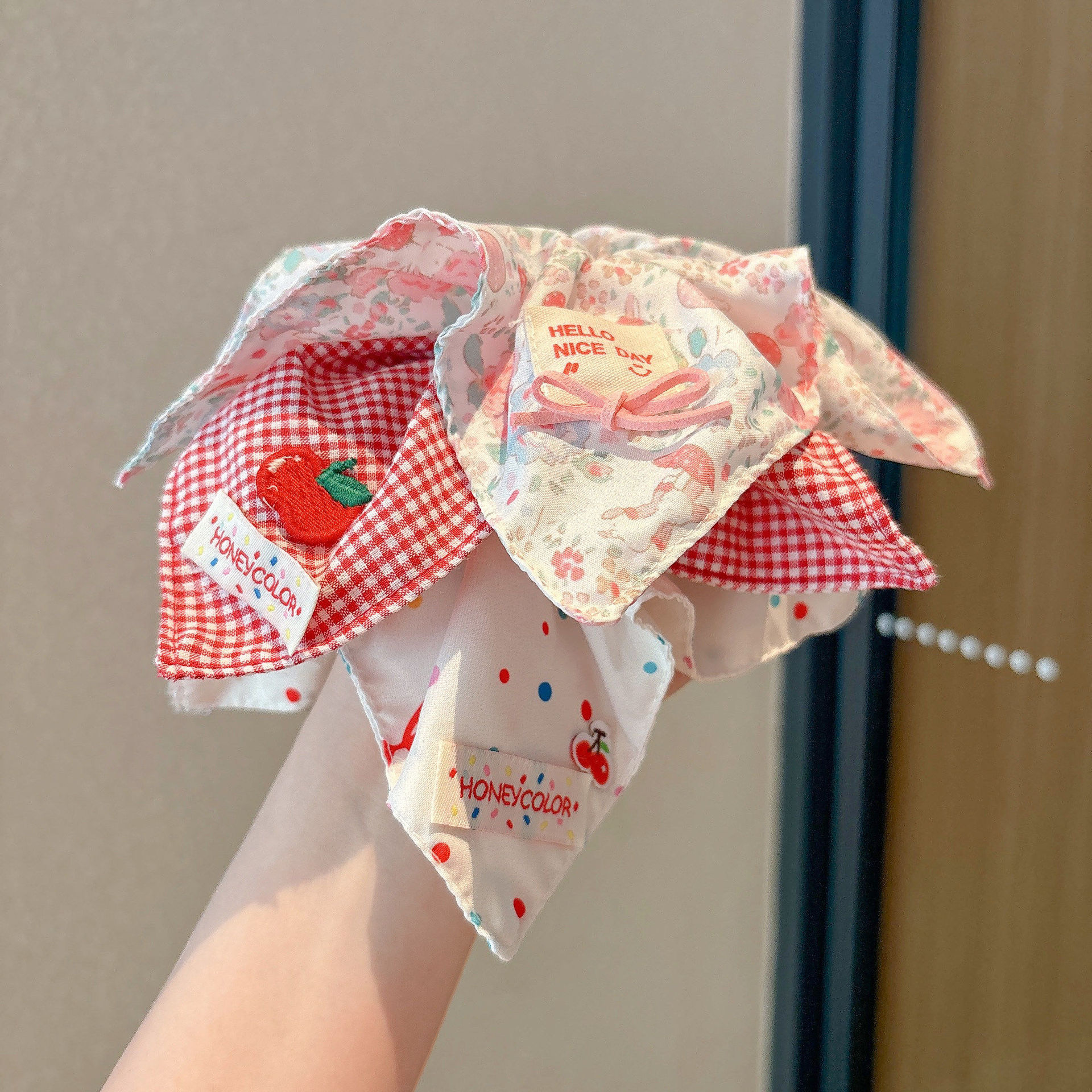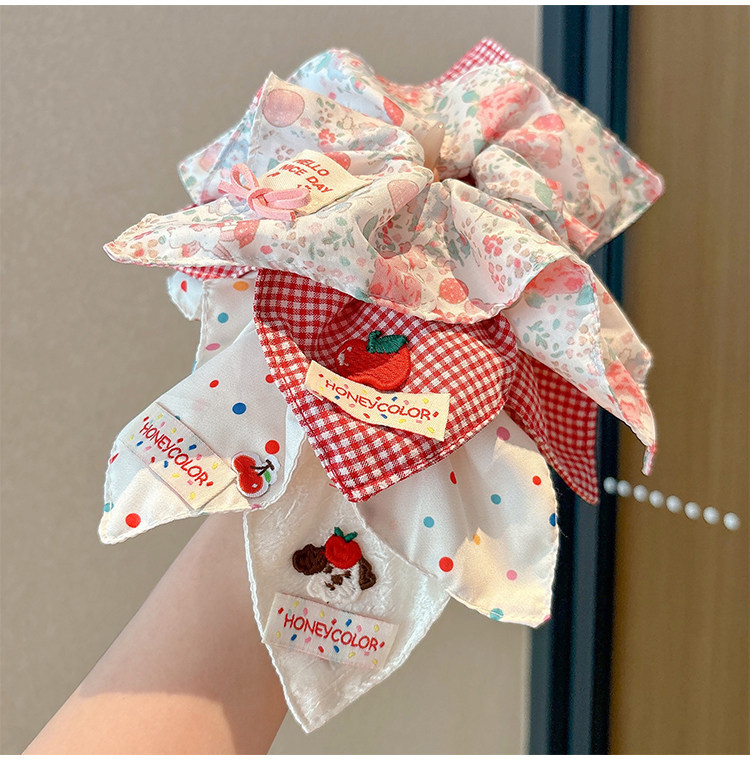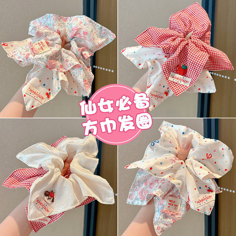 儿童刺绣方巾大肠发圈女童高级感扎头发头绳小女孩甜美低马尾头花