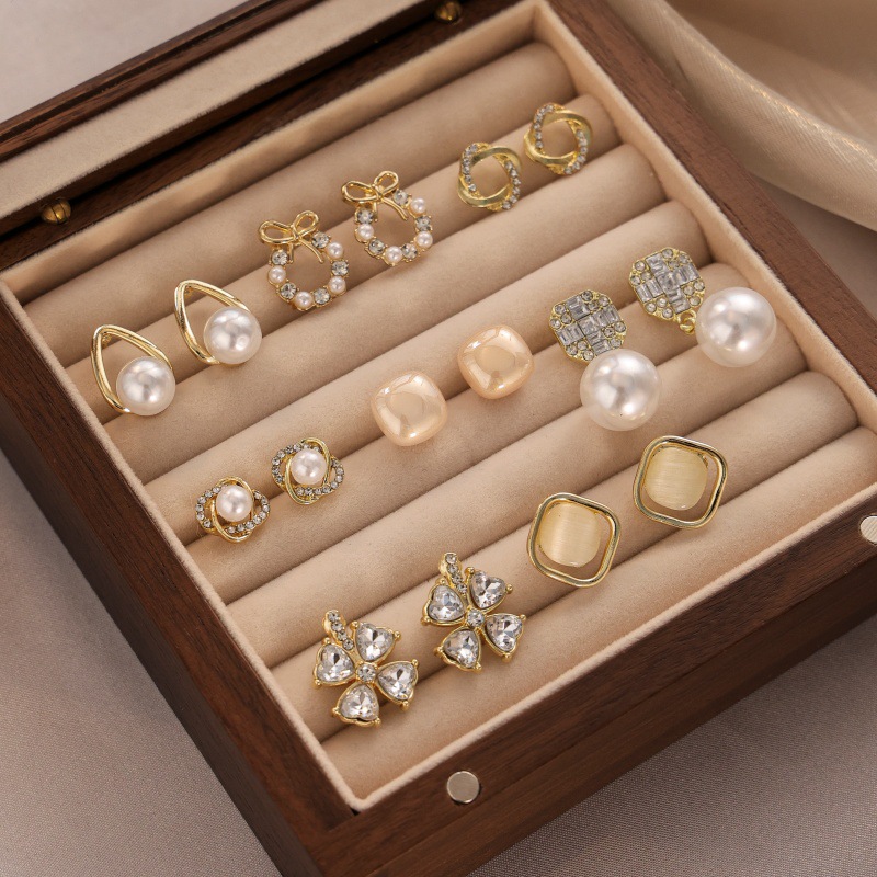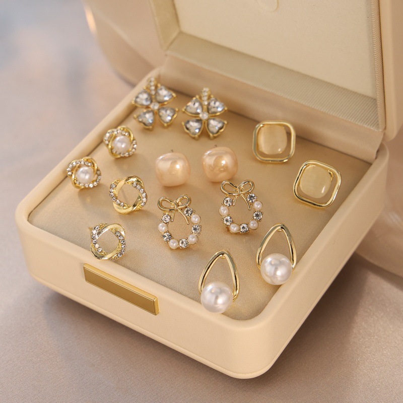 轻奢小众耳饰女设计感法式气质仿珍珠耳钉方圆脸显瘦复古耳环批发