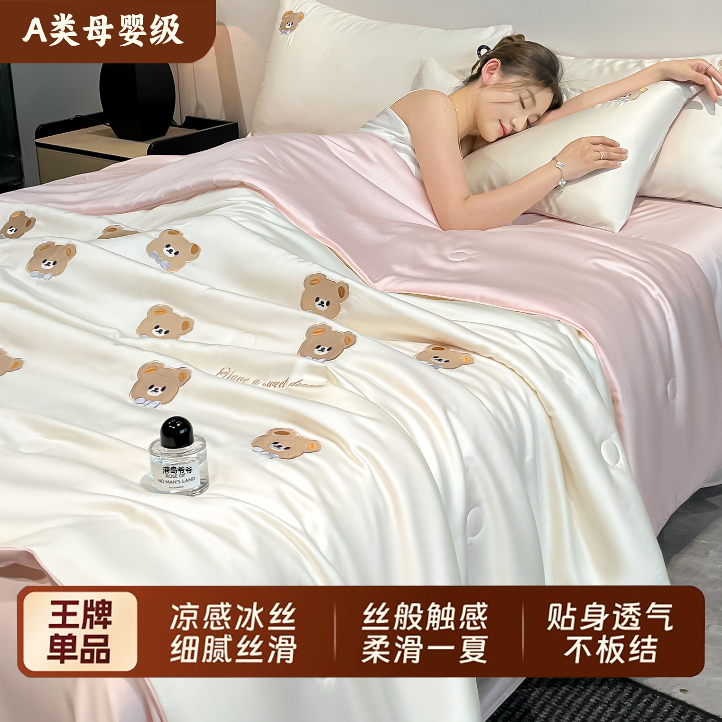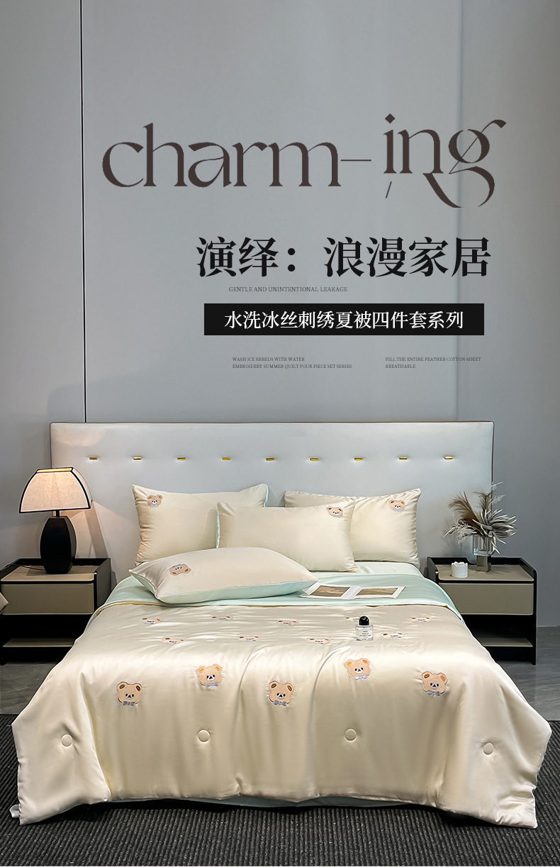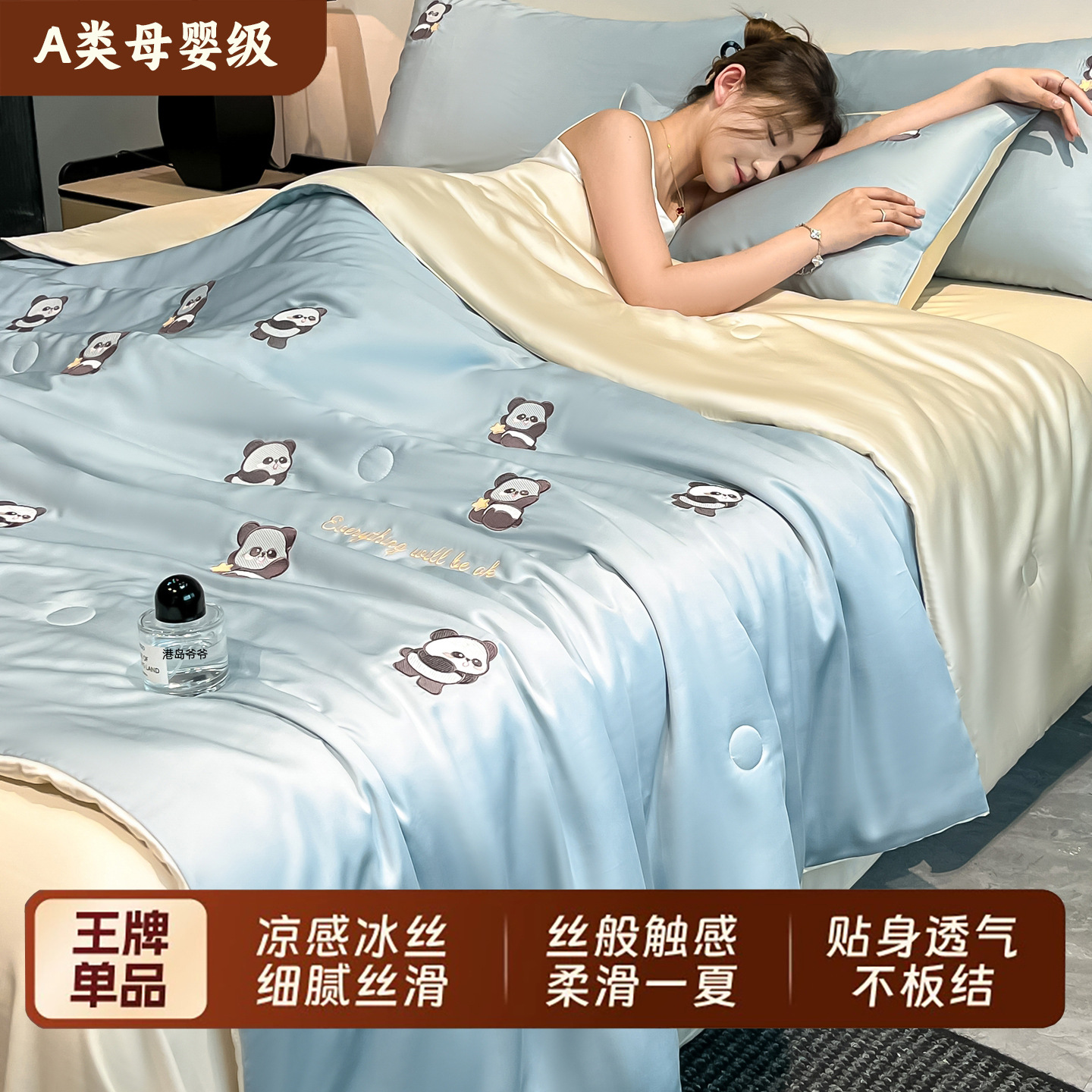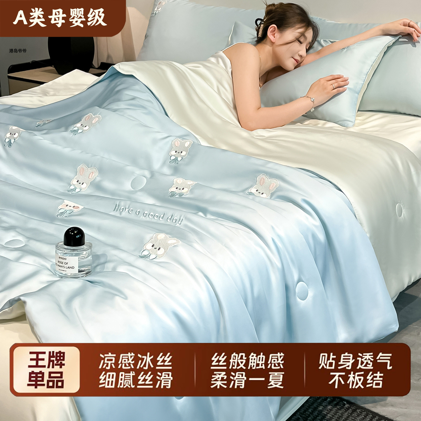 A类裸睡冰丝夏凉被空调被四件套单人夏被可机洗夏季凉感被子薄款
