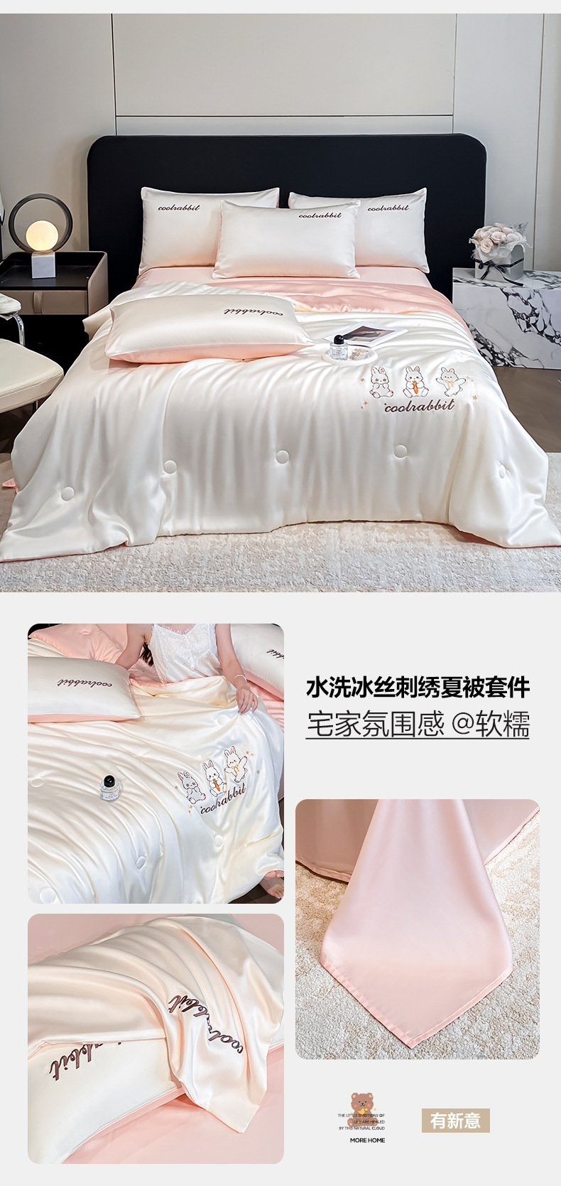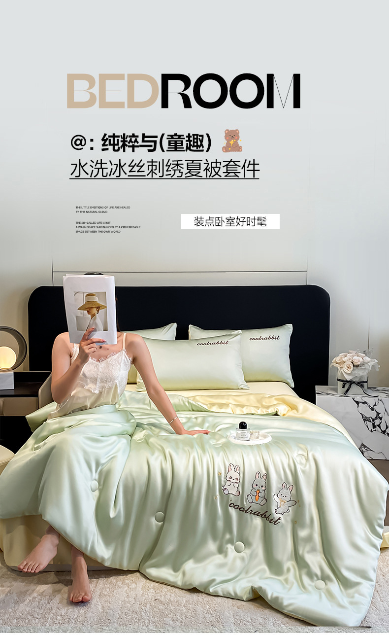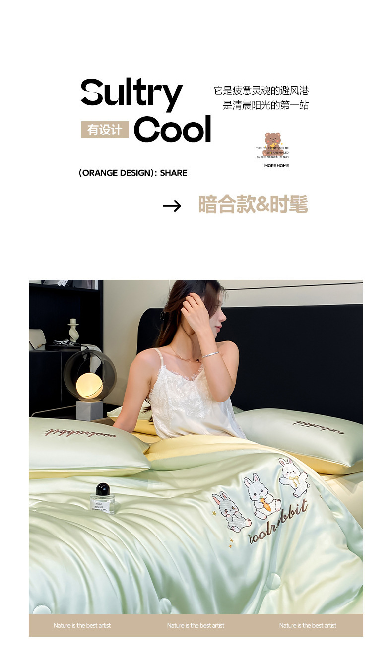 A类夏凉被丝滑裸睡夏季被子四件套可机洗冰丝凉感空调被宿舍被芯