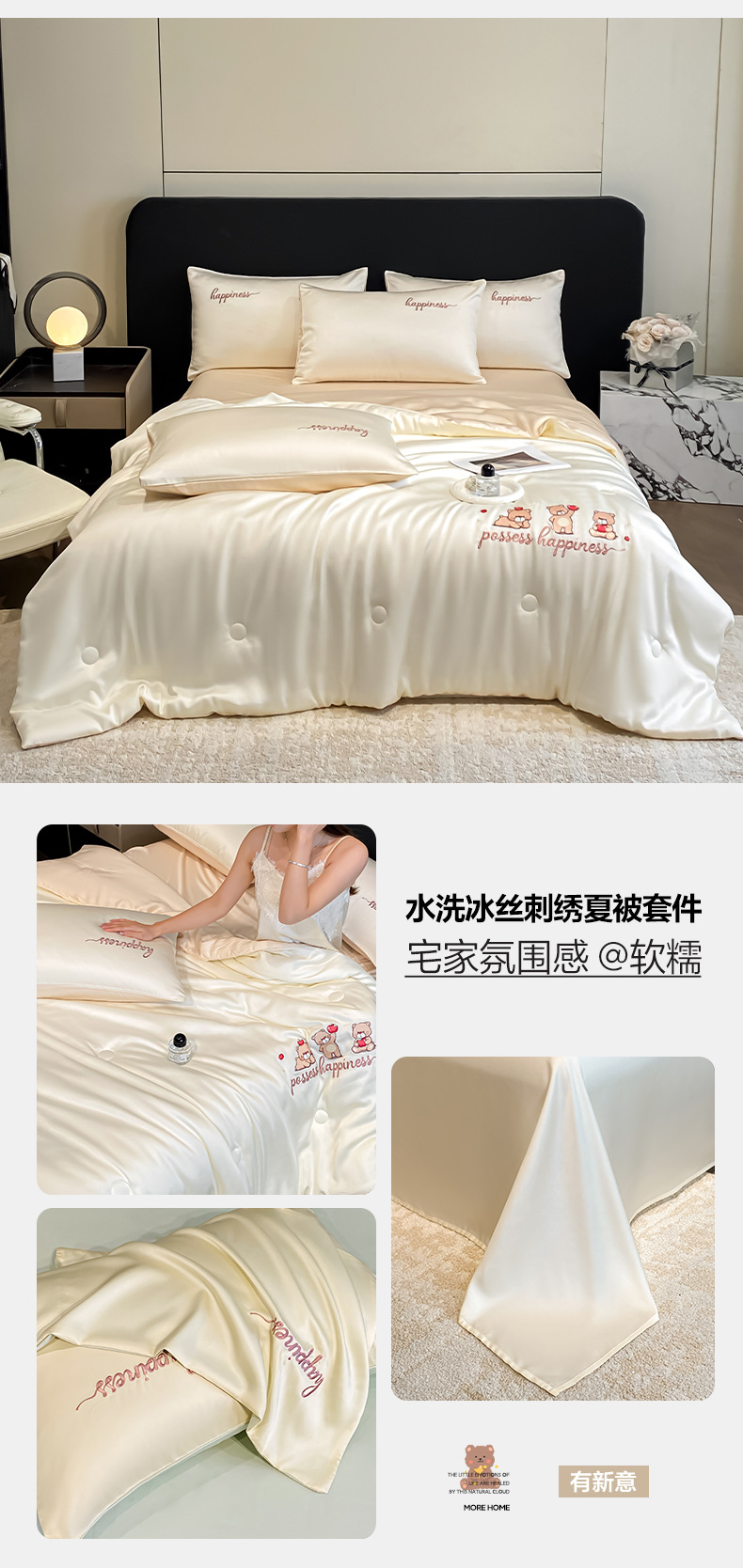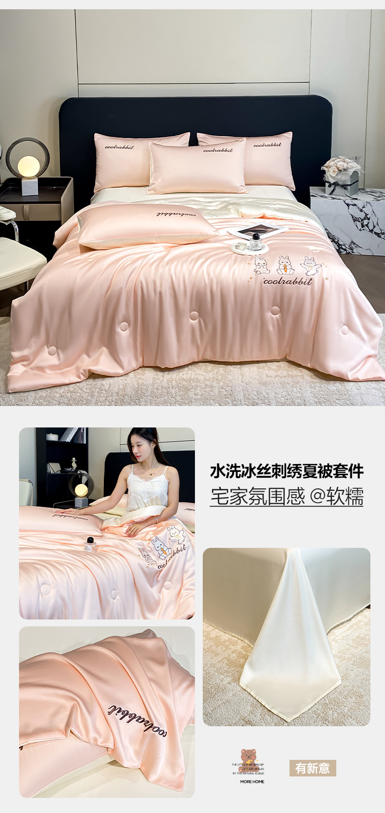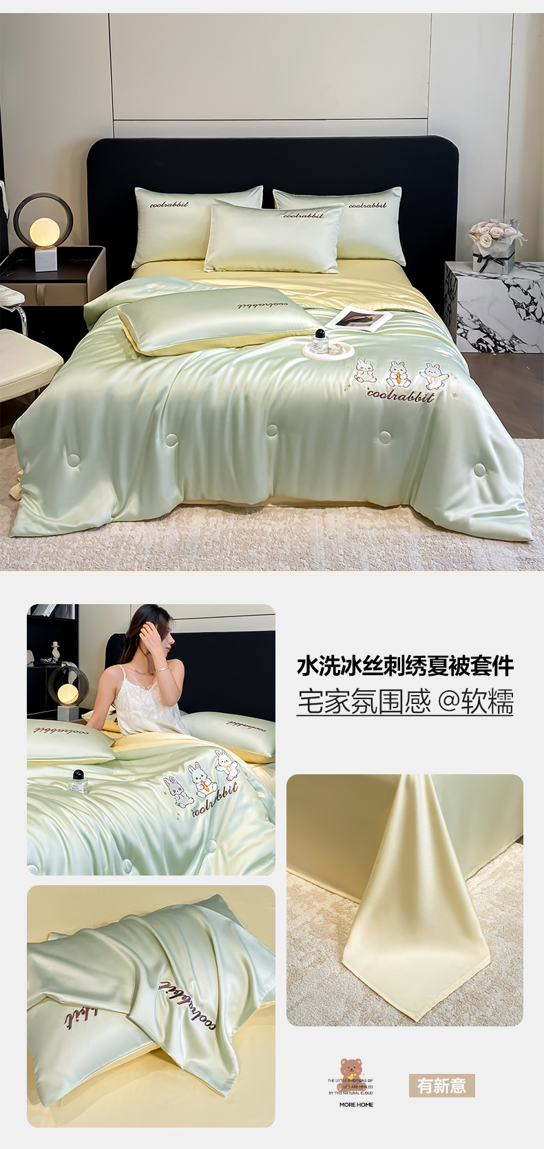 A类夏凉被丝滑裸睡夏季被子四件套可机洗冰丝凉感空调被宿舍被芯