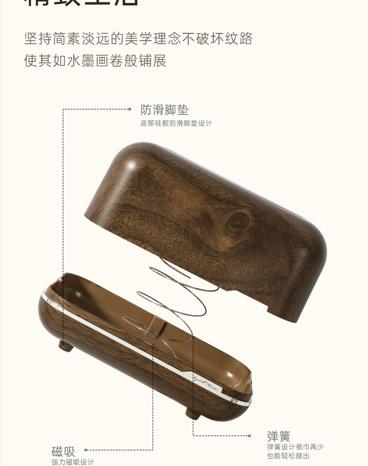 桌面客厅纸巾盒中古风茶几卧室轻奢家用弹簧磁吸遥控器收纳抽纸盒