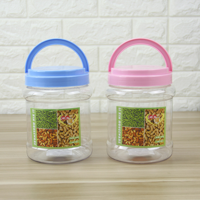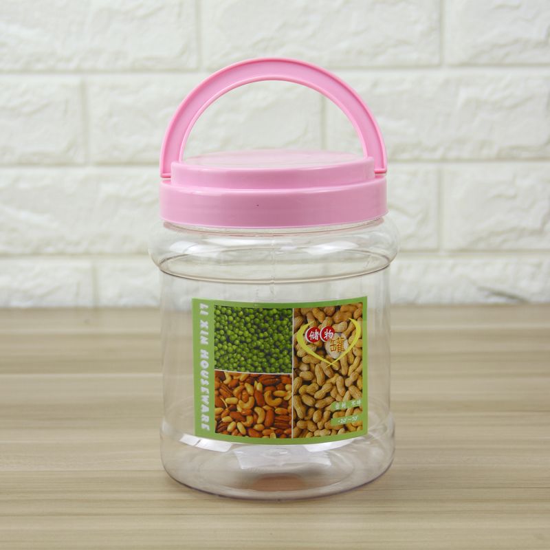透明塑料pet密封提手罐食品糖果罐饼干咸鱼茶叶蜂蜜收纳储物罐子