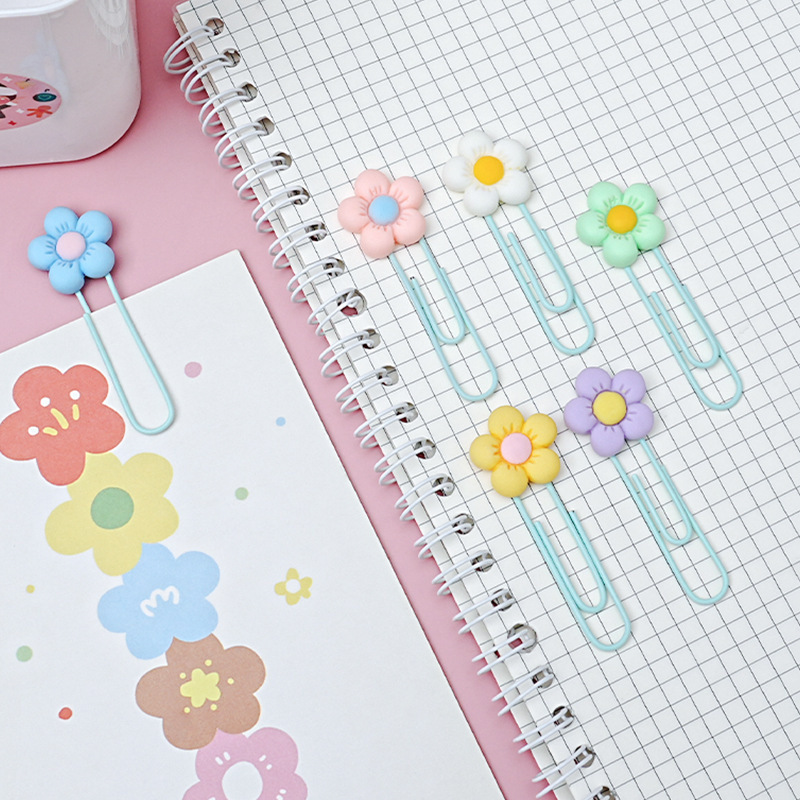 ins风花朵回形针pvc书签动漫卡通新款可爱办公文具曲别针跨境批发