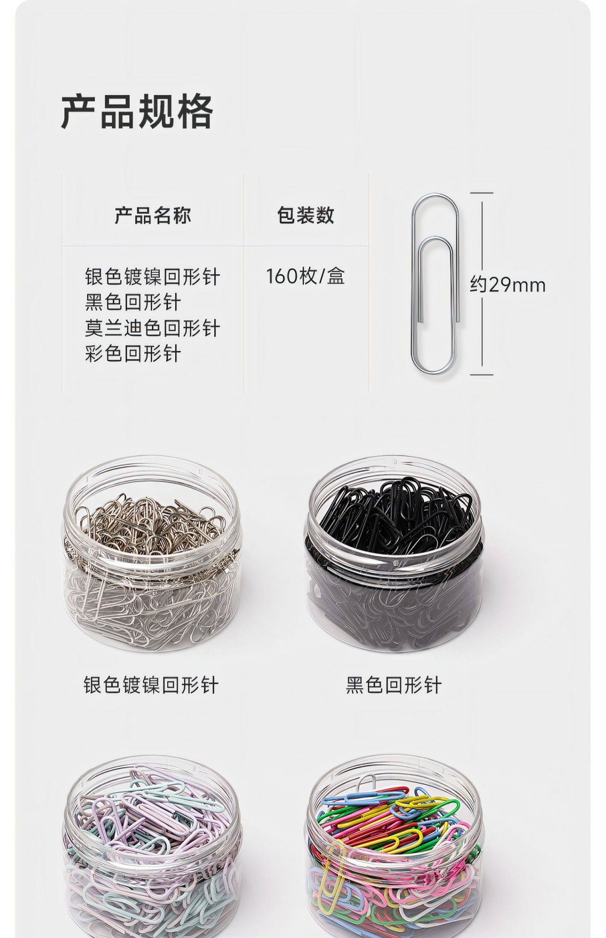【三筒装】金属回形针办公加厚电镀表层曲别针彩色回形针学生手工