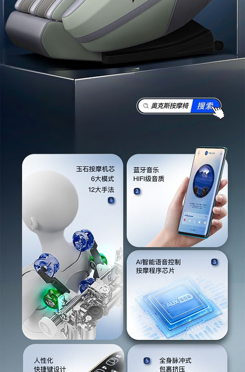 奥克斯(AUX)4D按摩椅家用机械手全身太空舱全自动多功能智能