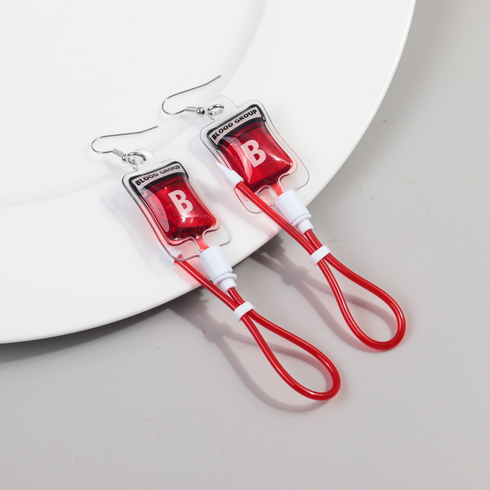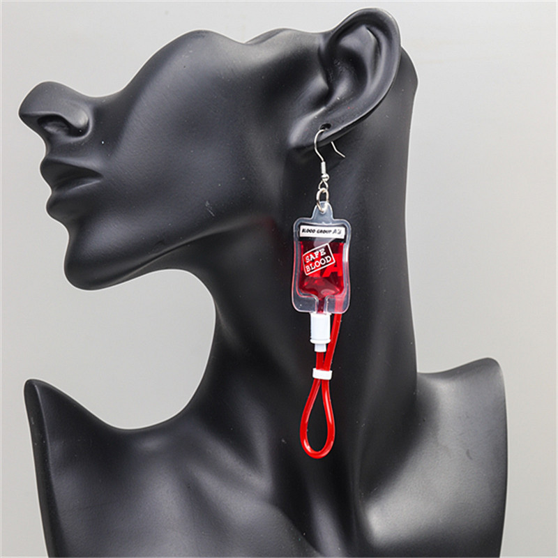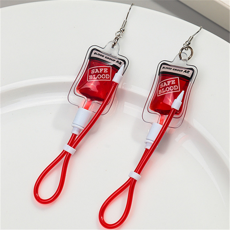 cross-border european and american style quirky creative sweet cool style simulation plasma blood bag earrings personality hot girl style liquid plasma earrings