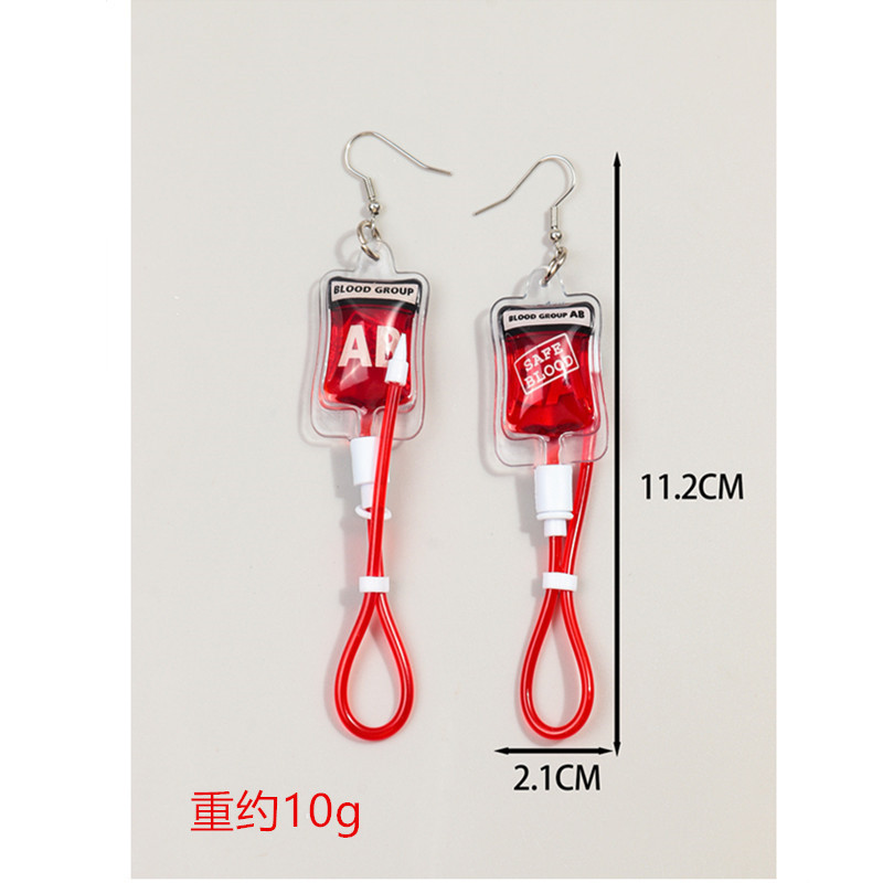 跨境欧美搞怪创意甜酷风仿真血浆血袋耳环个性辣妹风液体血浆耳环