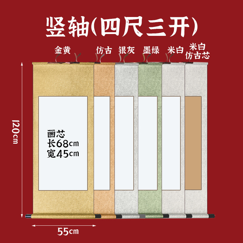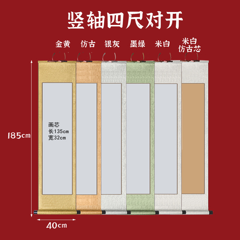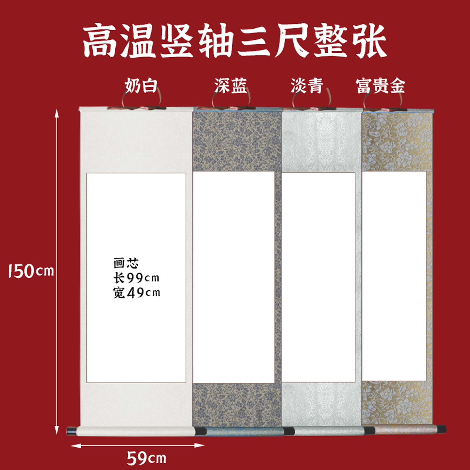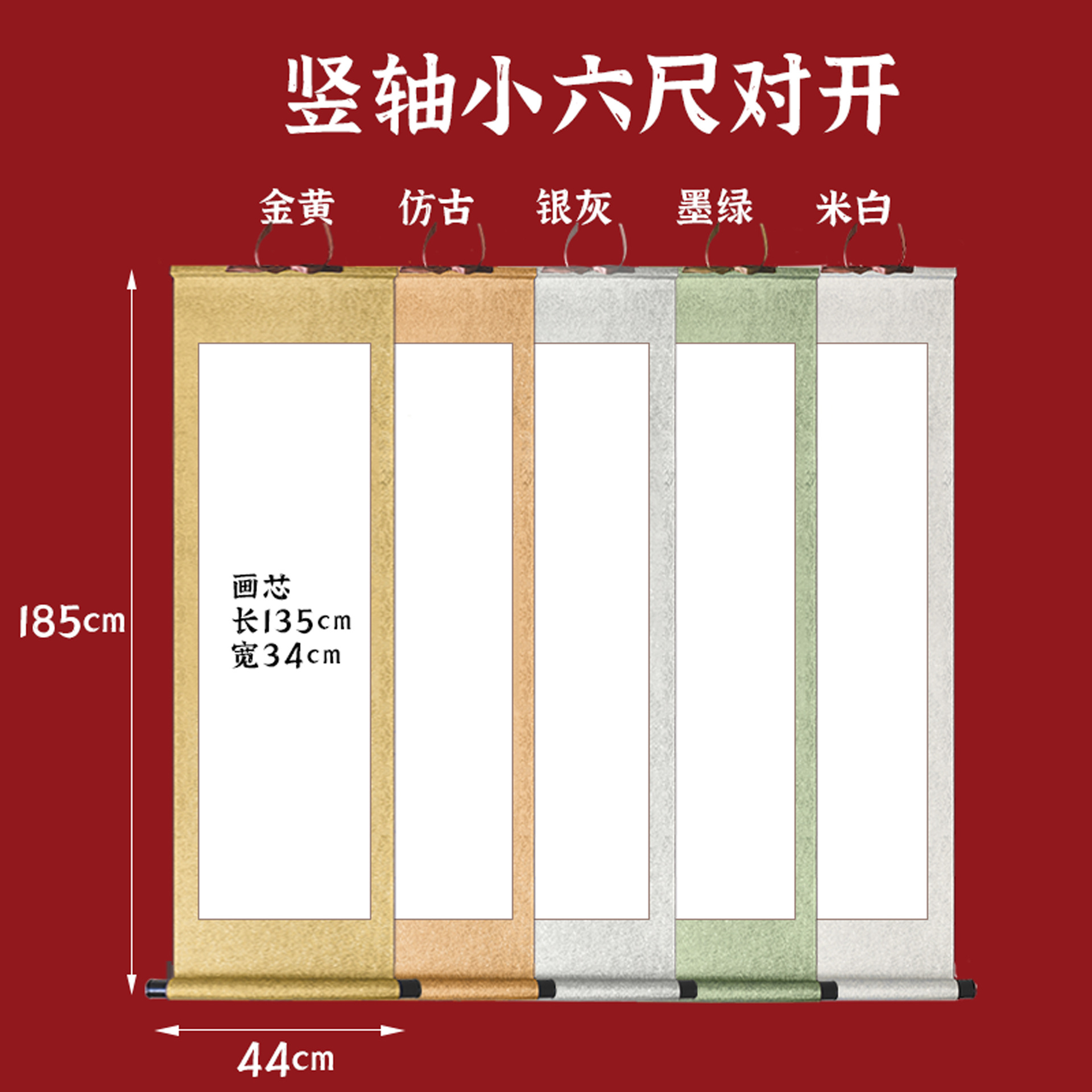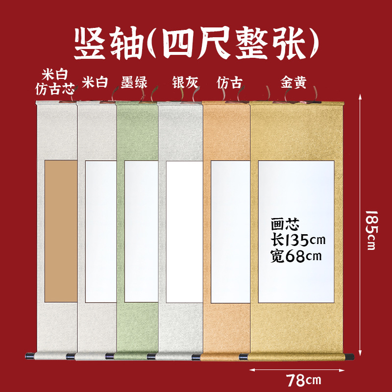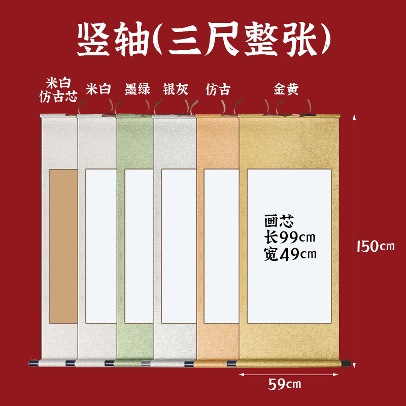 卷轴空白绫布卷轴宣纸挂轴立轴书法文创创作半生熟免装裱挂画挂件