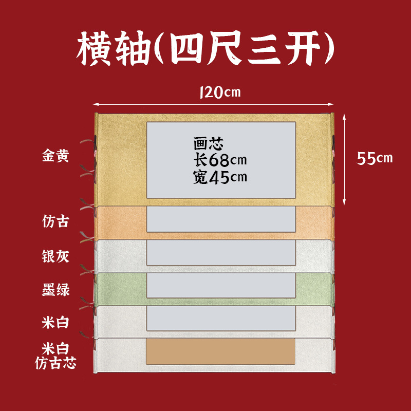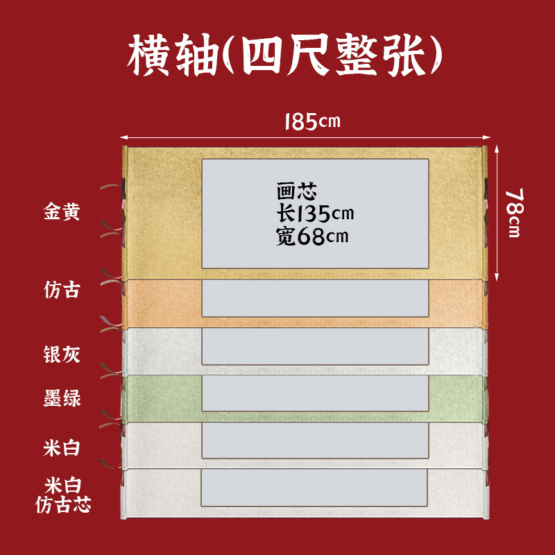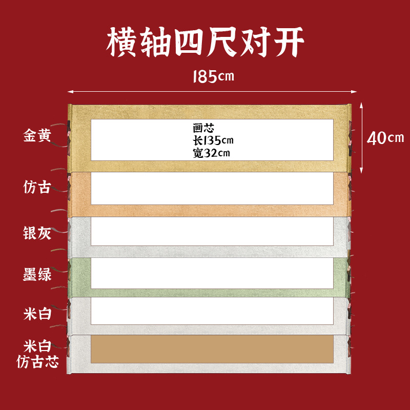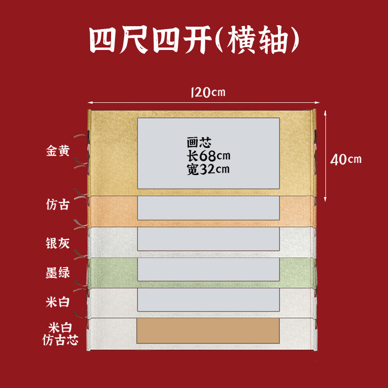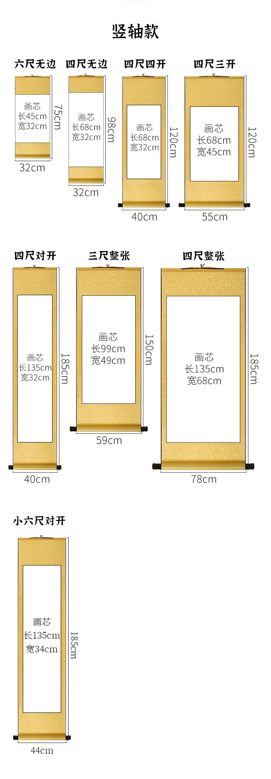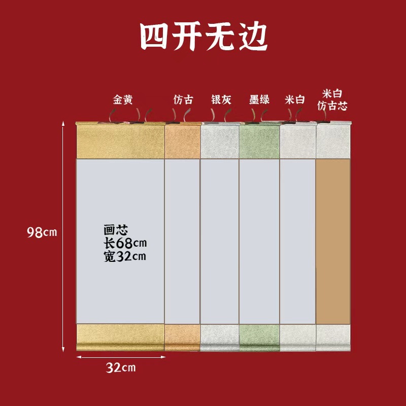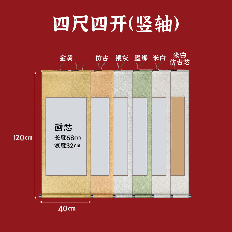卷轴空白绫布卷轴宣纸挂轴立轴书法文创创作半生熟免装裱挂画挂件