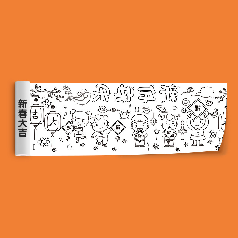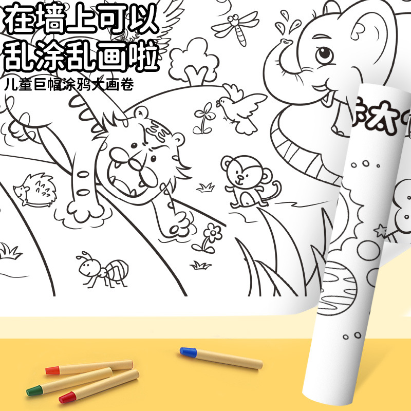 儿童涂鸦画卷绘画画纸幼儿园宝宝涂色巨幅填色绘画布绘本可贴墙