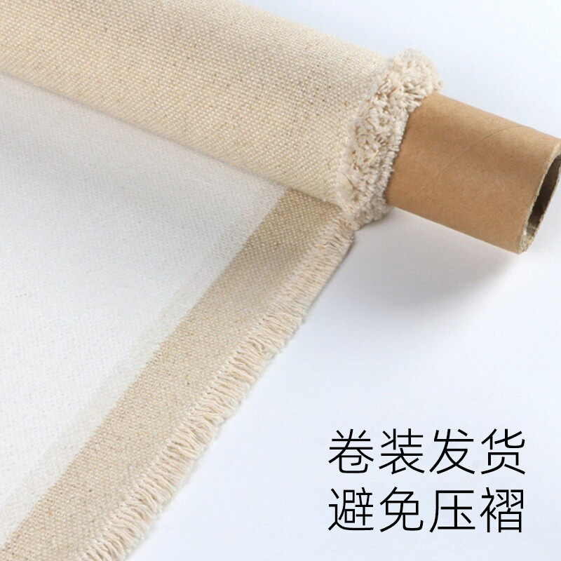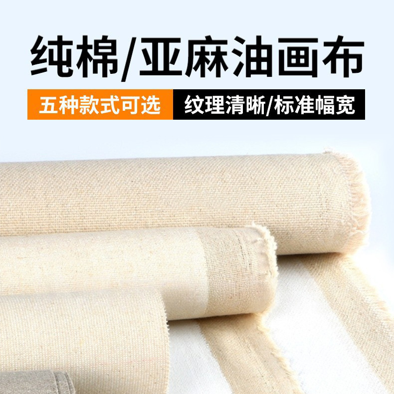 油画布亚麻混纺细纹中纹粗纹雨露麻棉麻混合带涂层已涂图好油画布