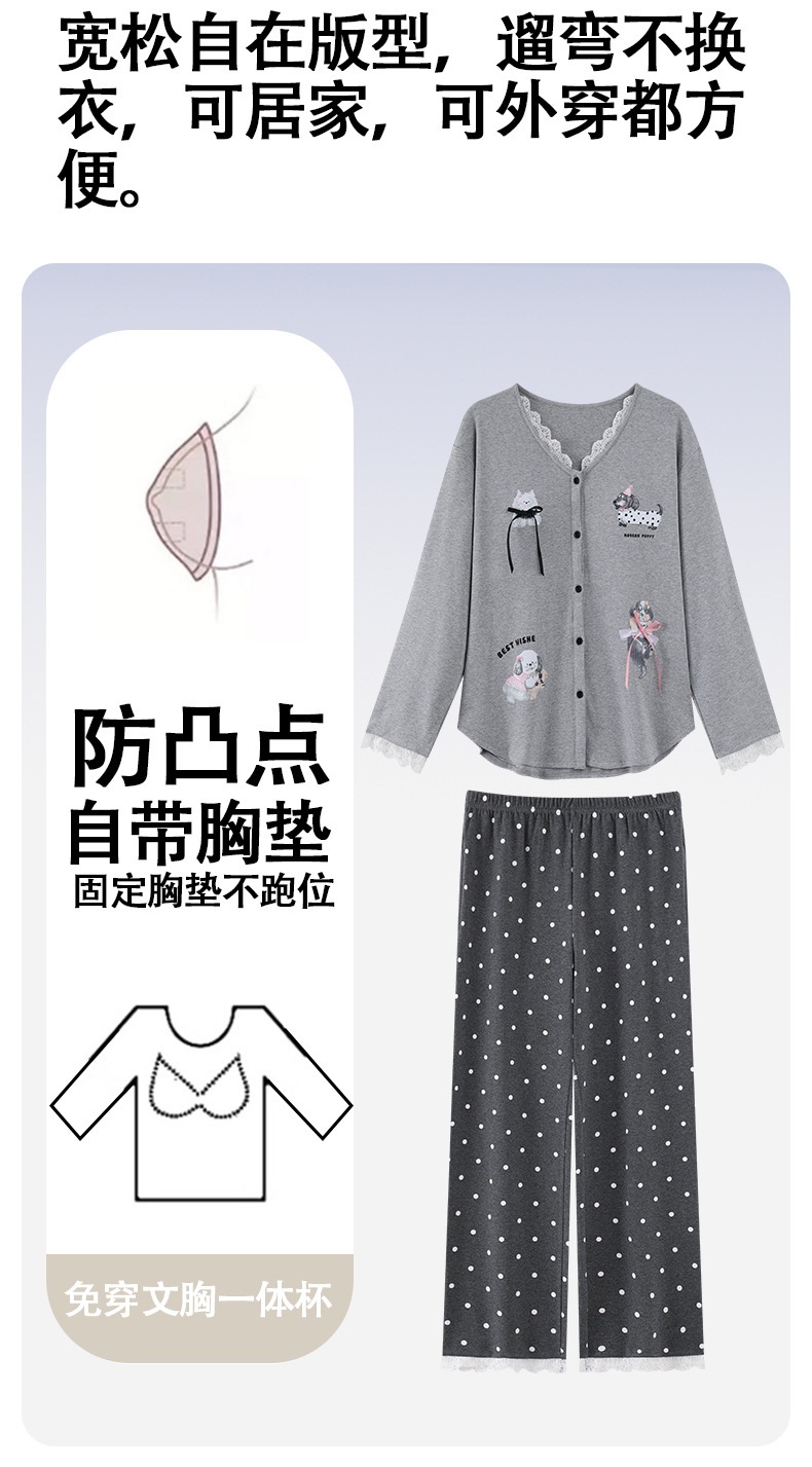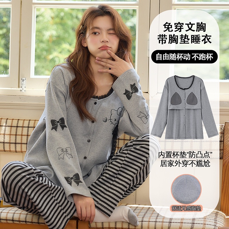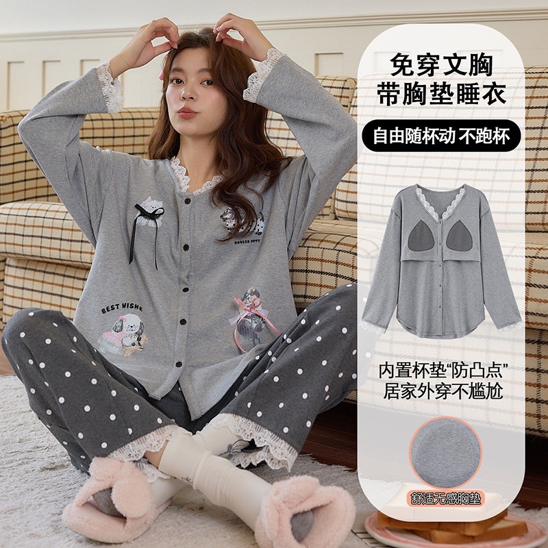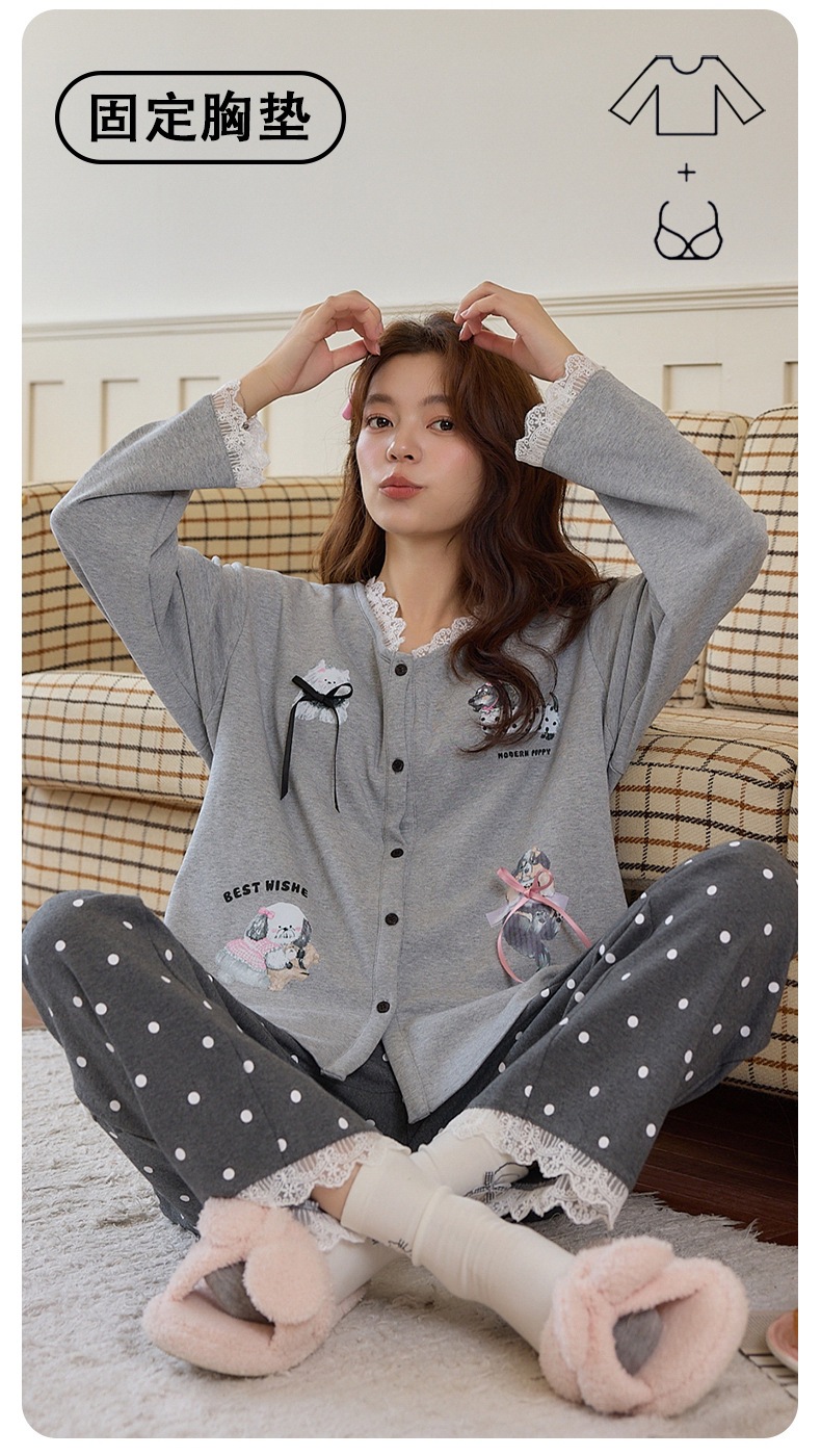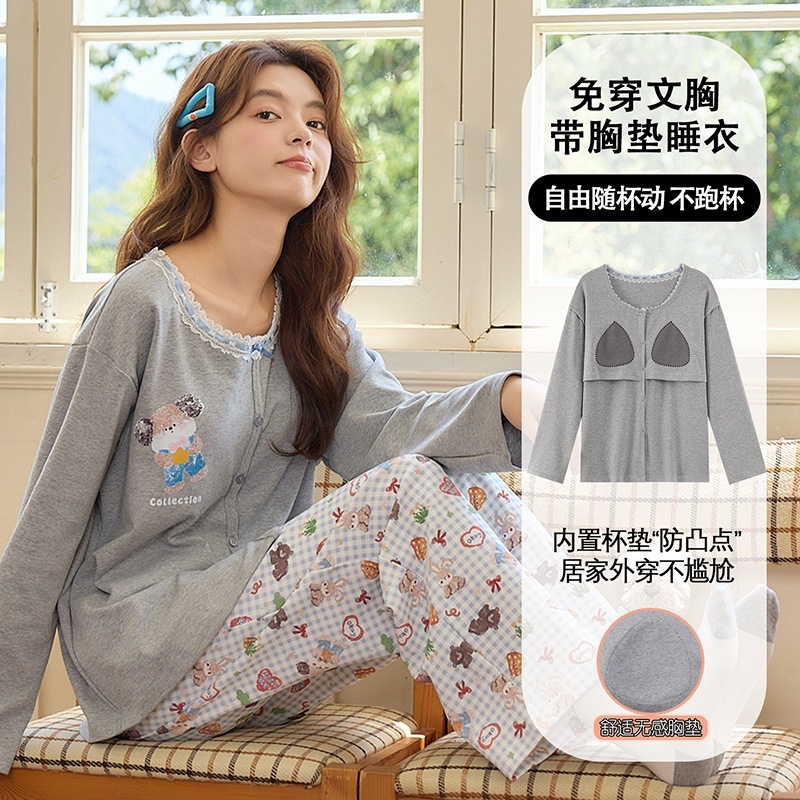 2025公主风长袖睡衣女秋季带胸垫薄款卡通少女学生冬天开衫家居服