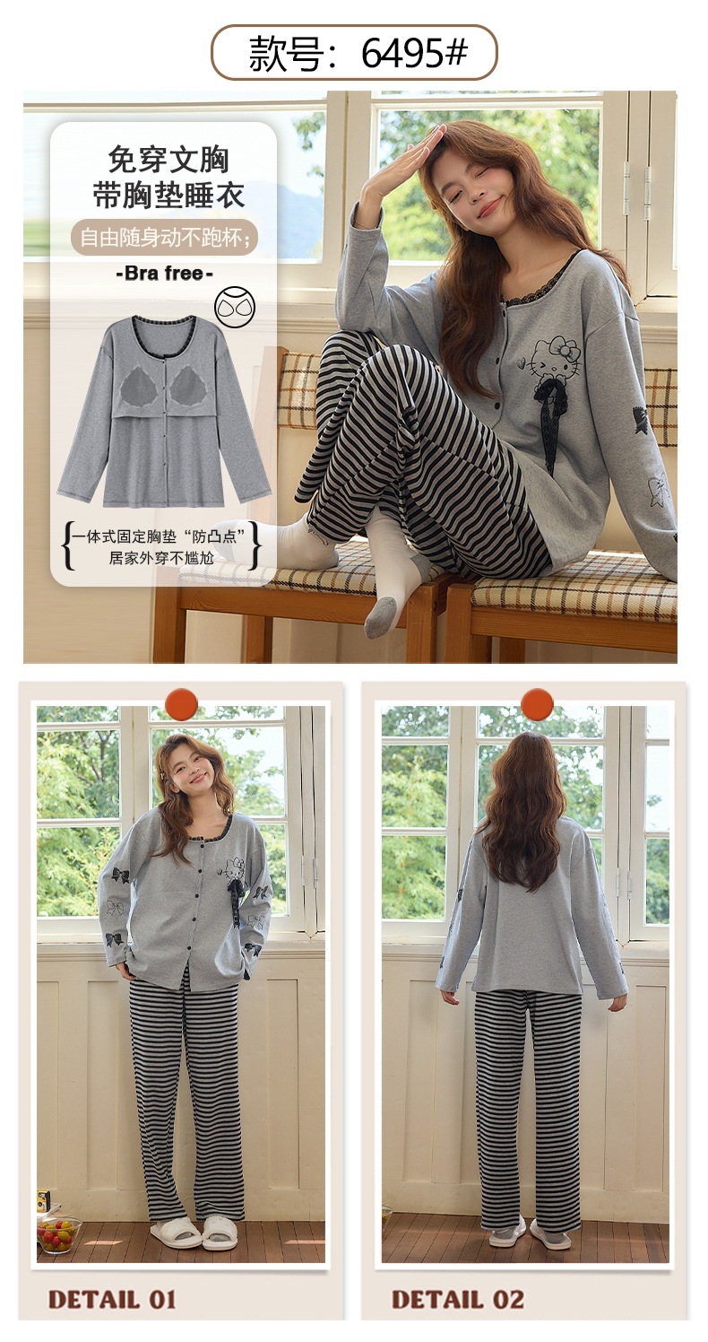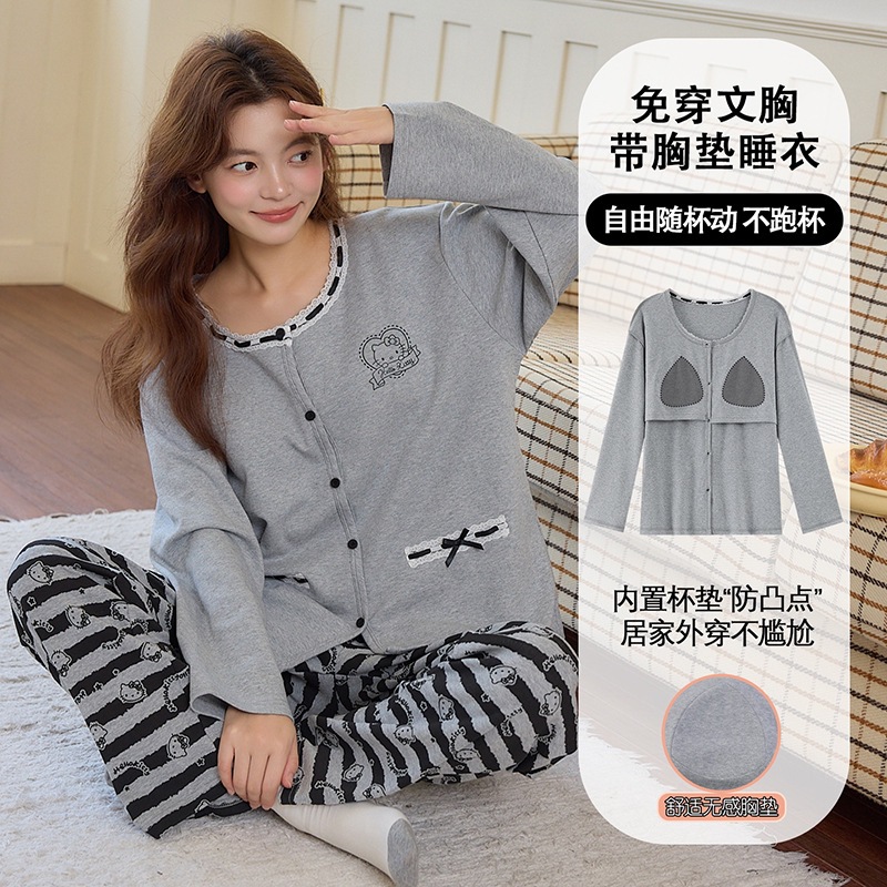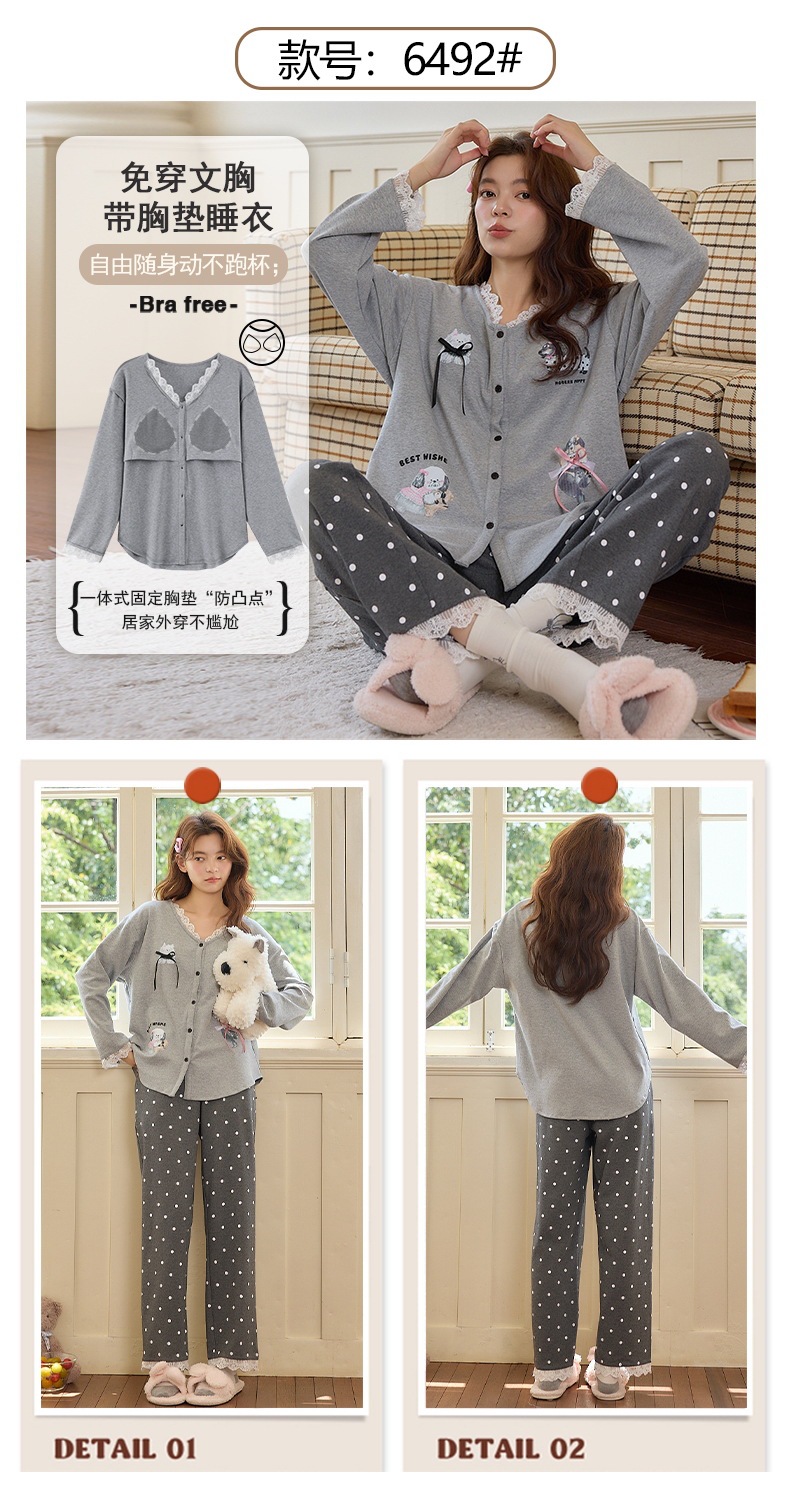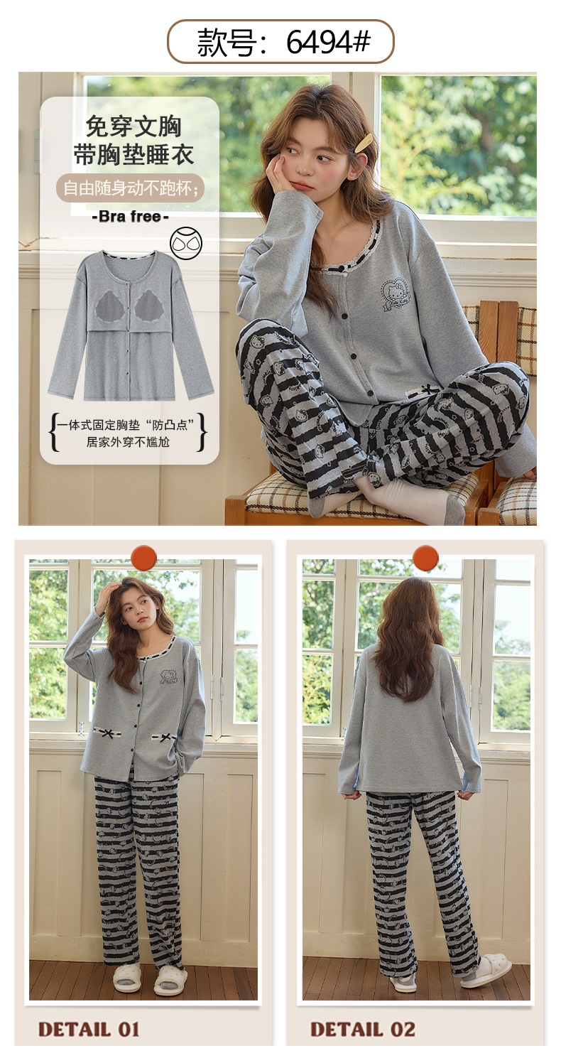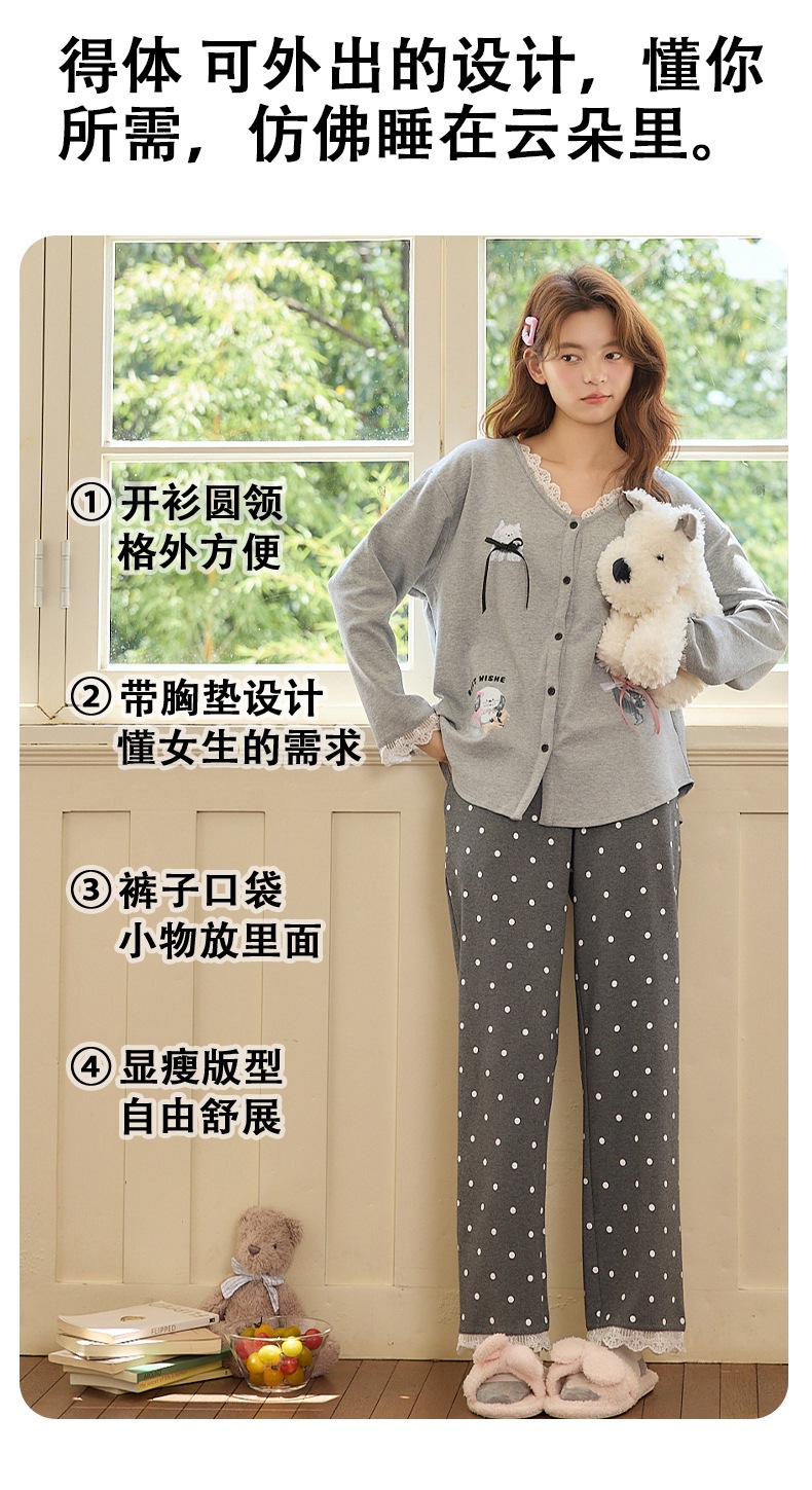 2025公主风长袖睡衣女秋季带胸垫薄款卡通少女学生冬天开衫家居服
