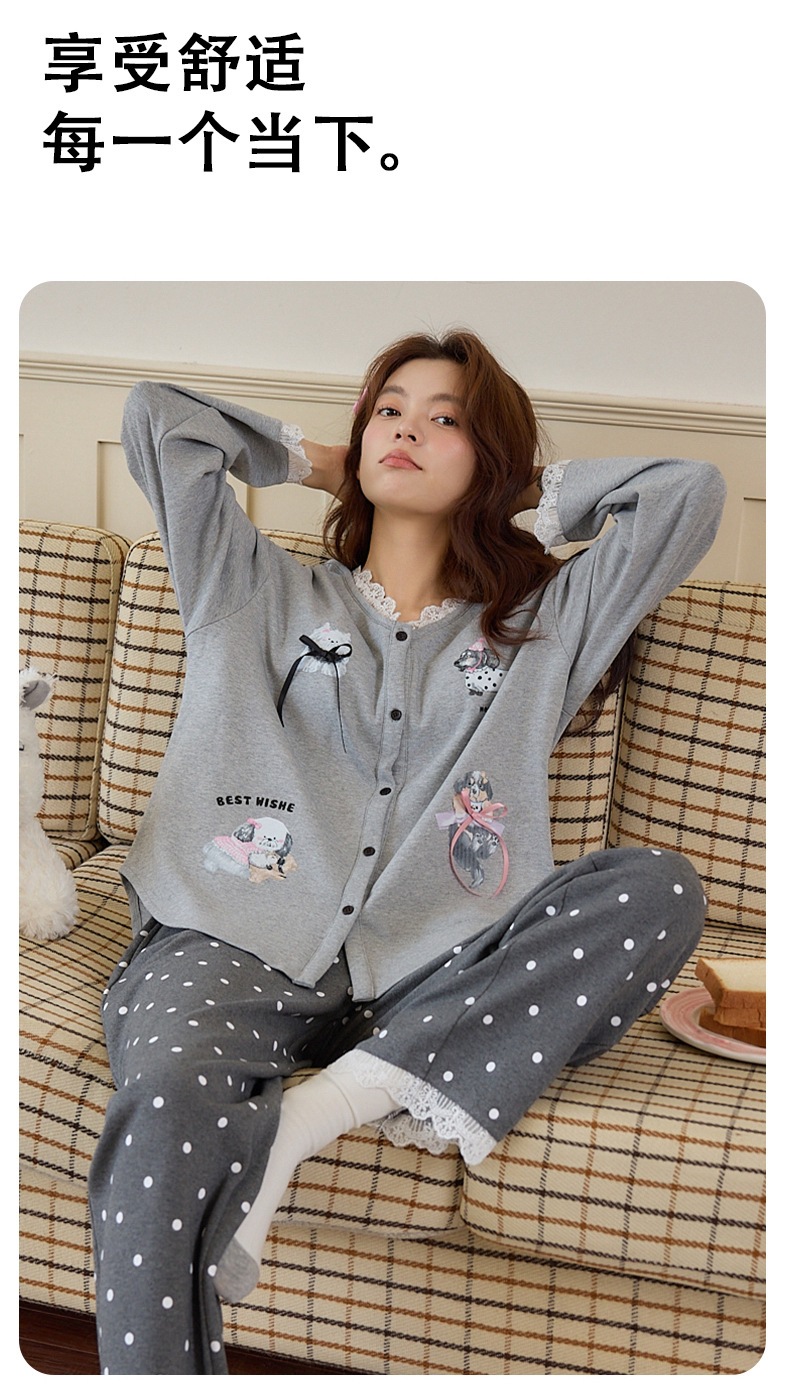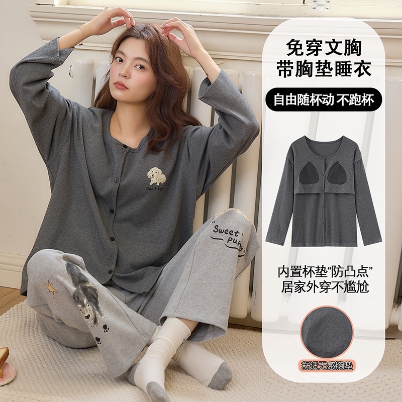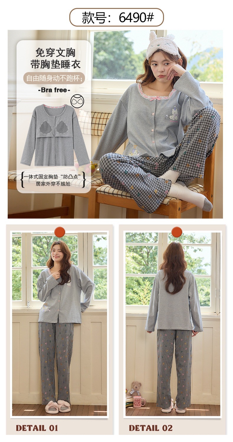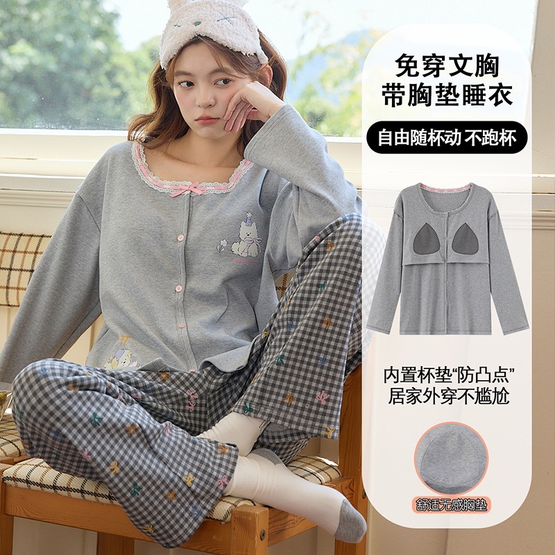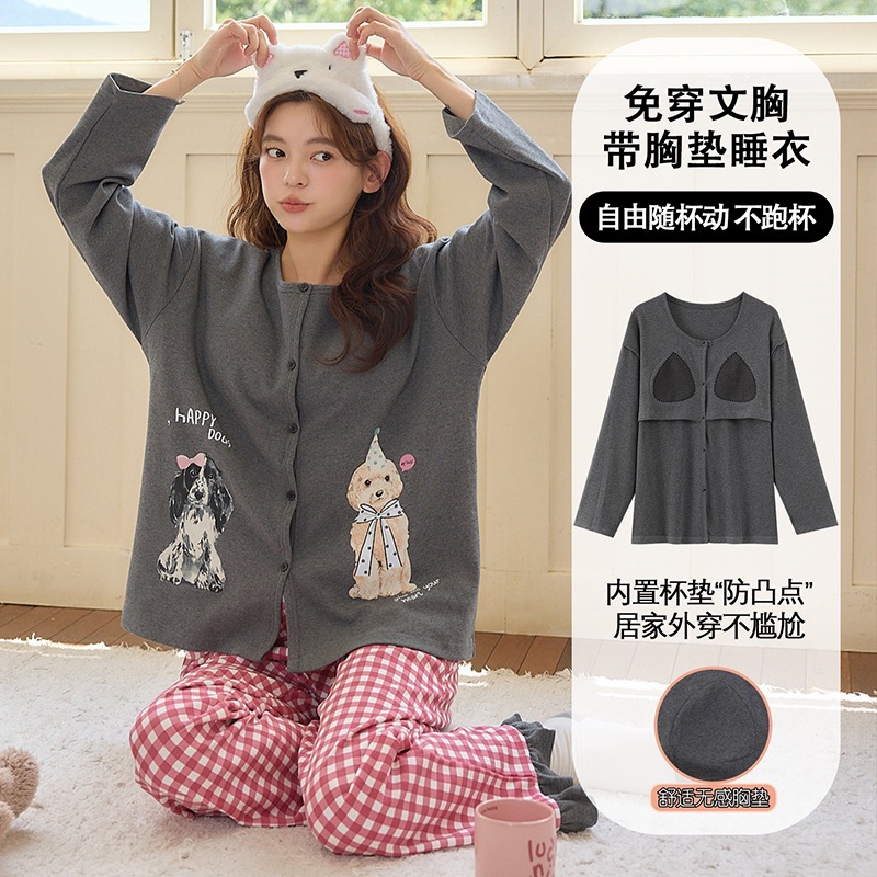 2025公主风长袖睡衣女秋季带胸垫薄款卡通少女学生冬天开衫家居服
