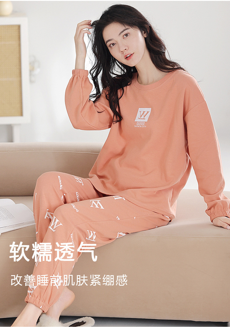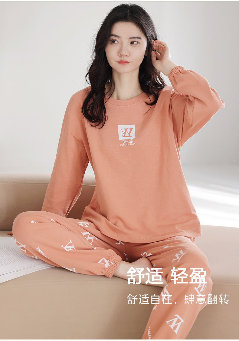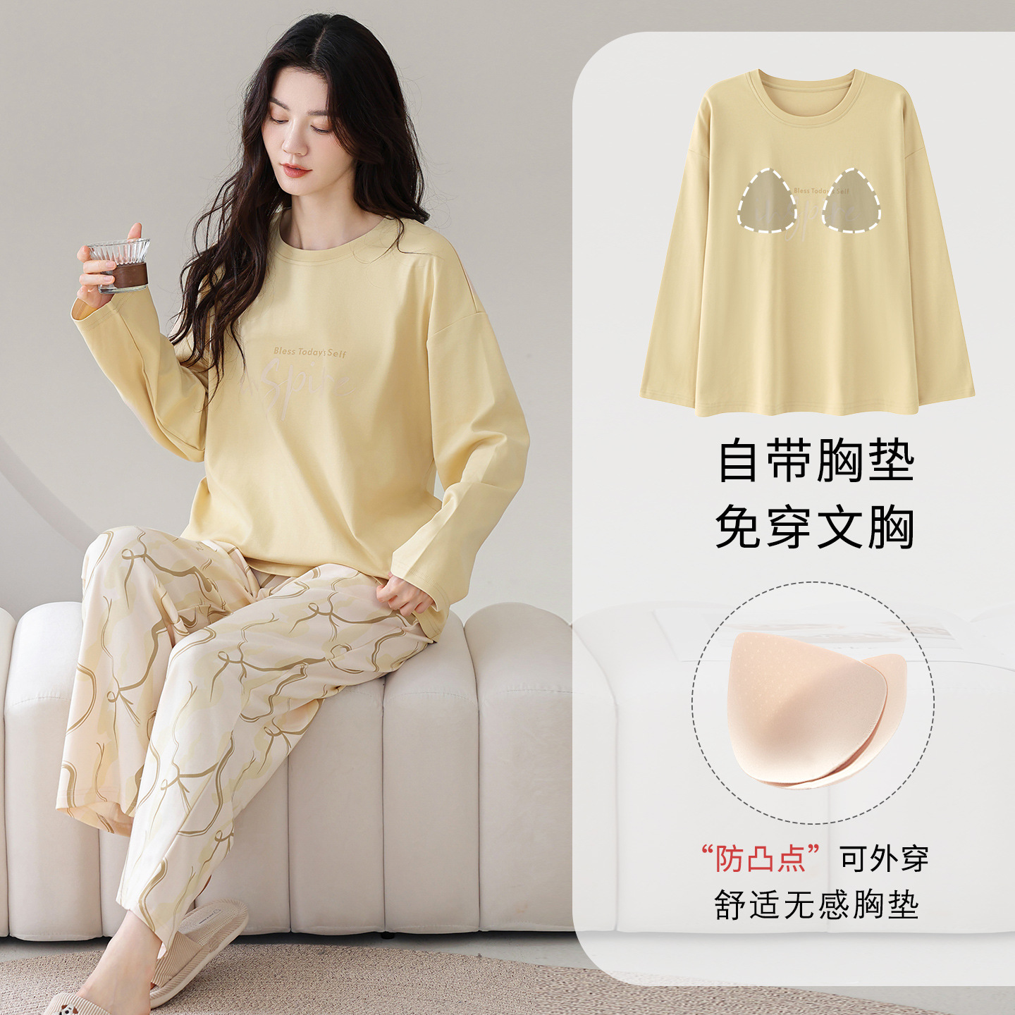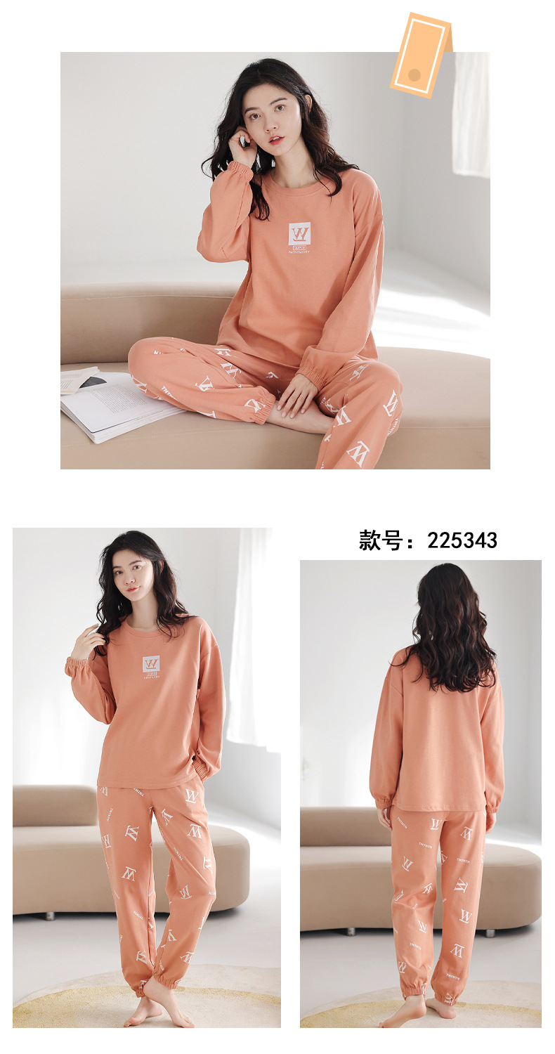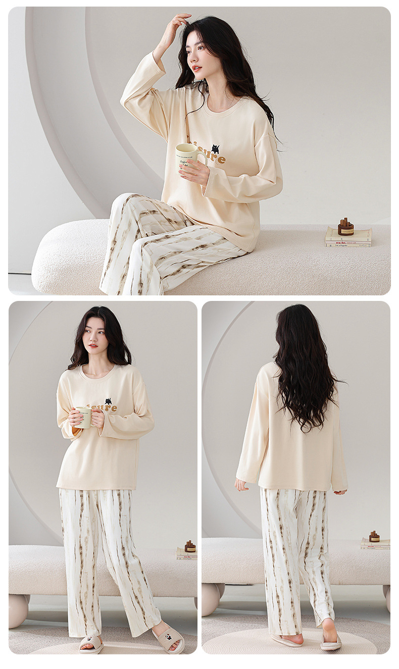 100%纯棉睡衣秋冬款女士卡通休闲薄款带胸垫可外穿家居服春秋套装