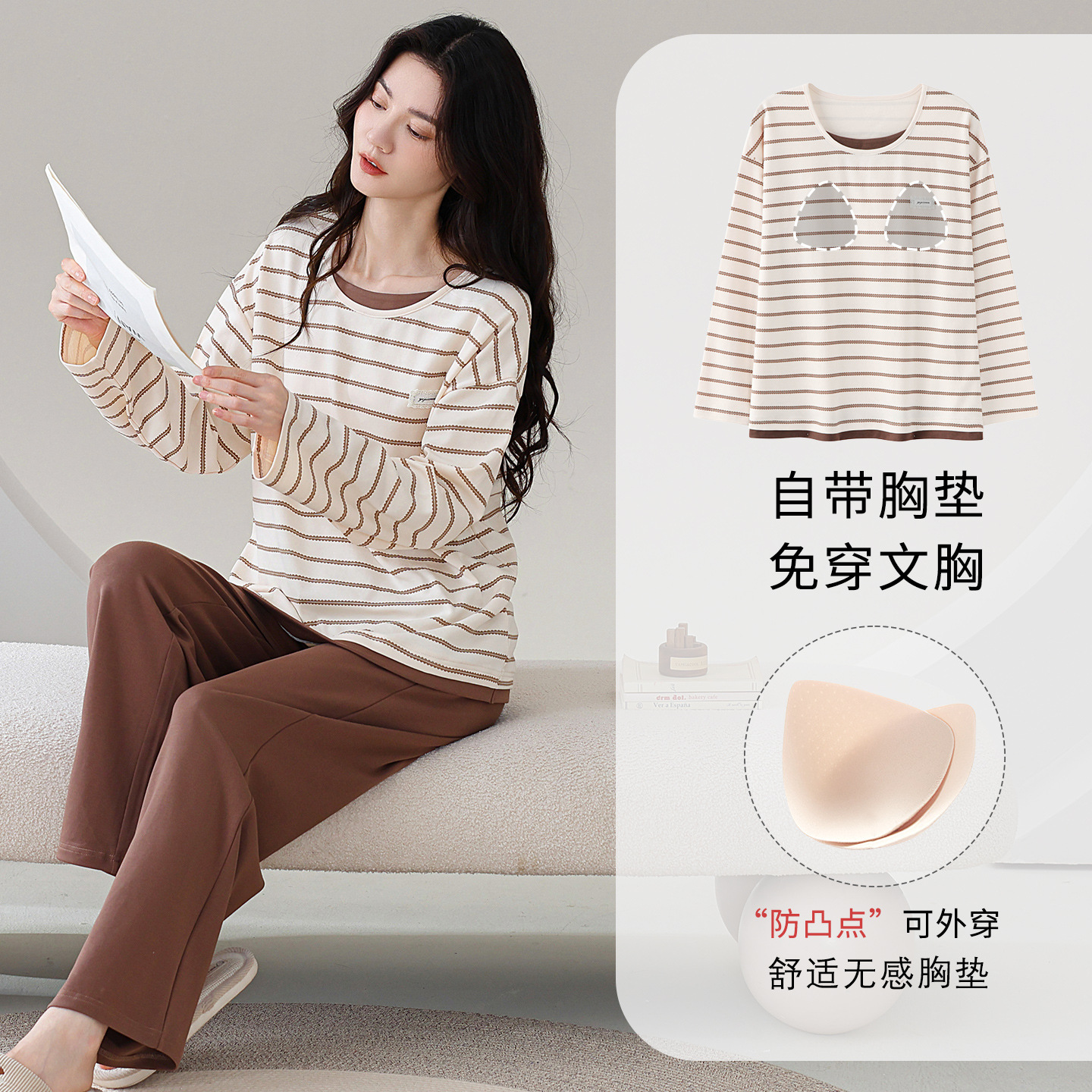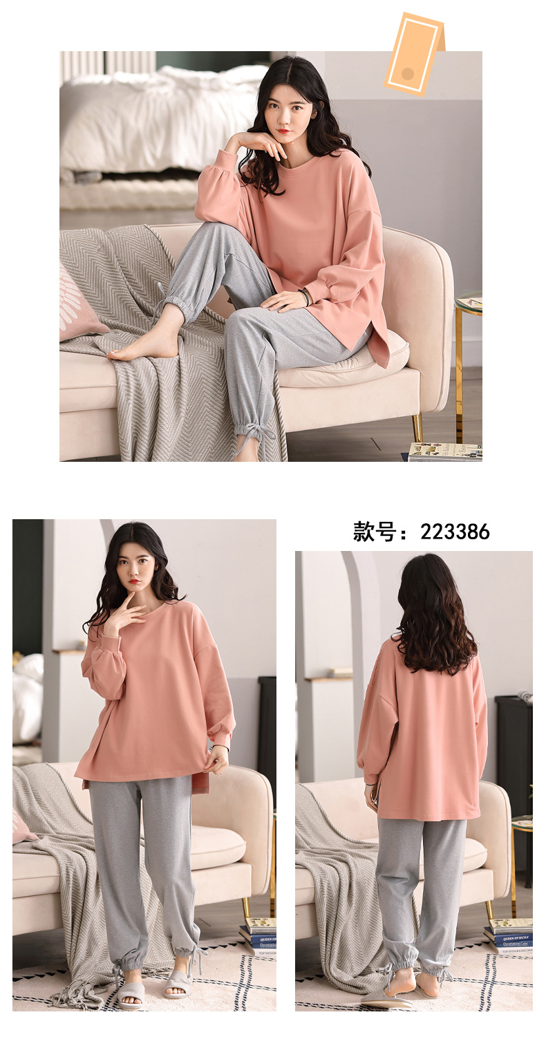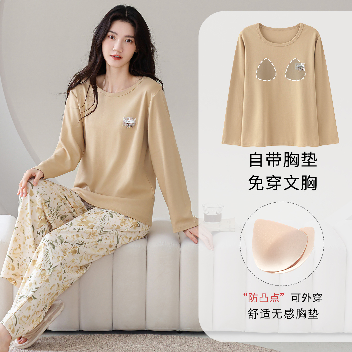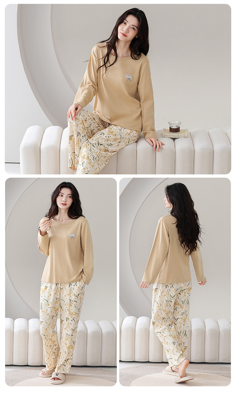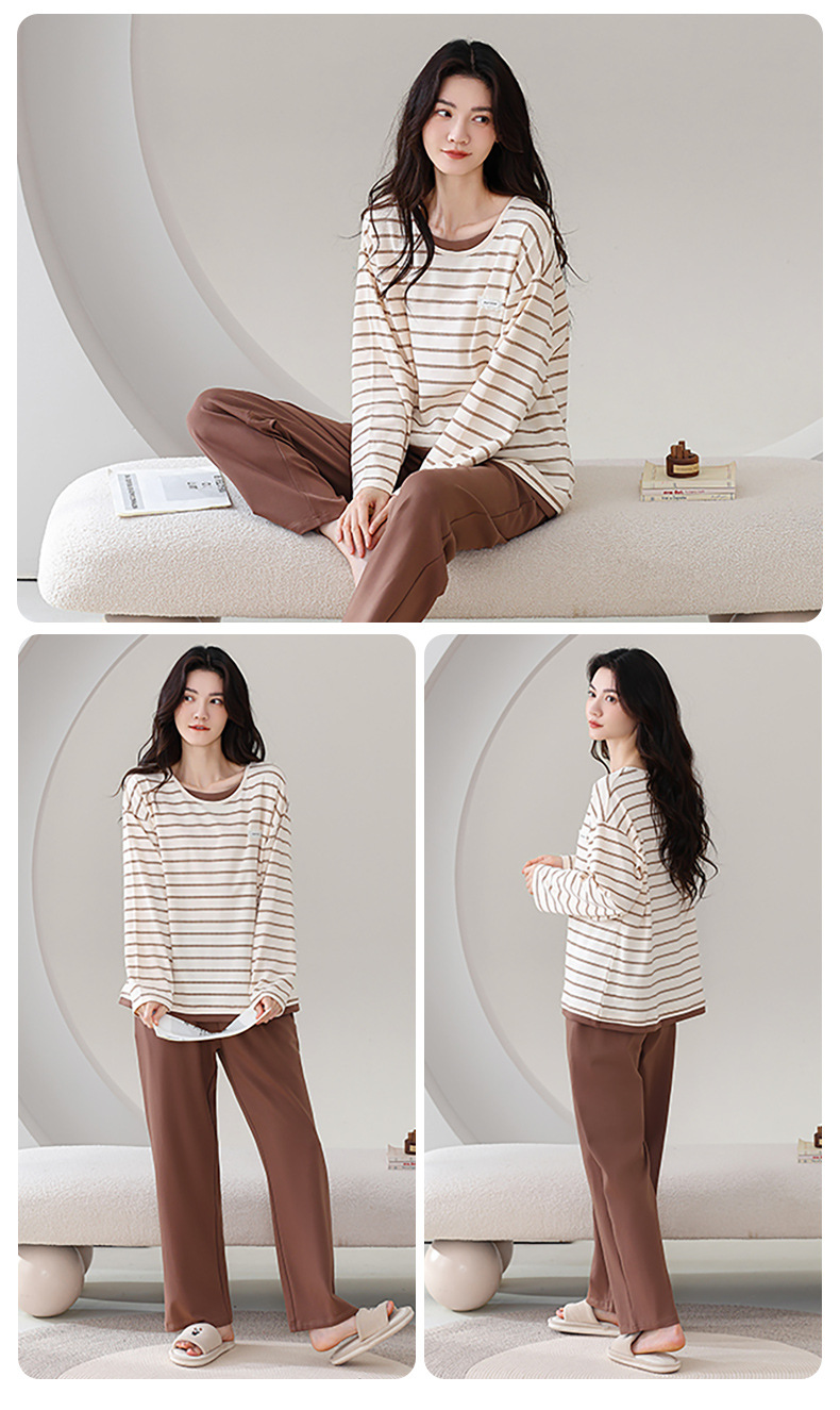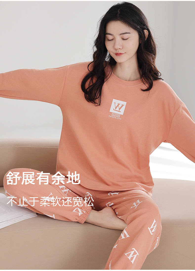 100%纯棉睡衣秋冬款女士卡通休闲薄款带胸垫可外穿家居服春秋套装