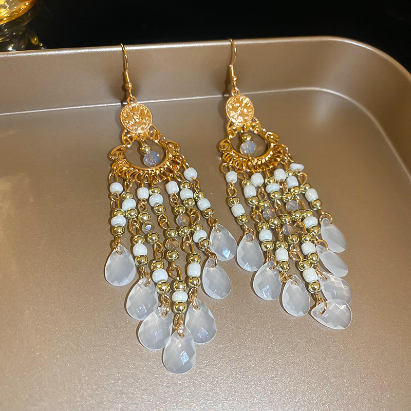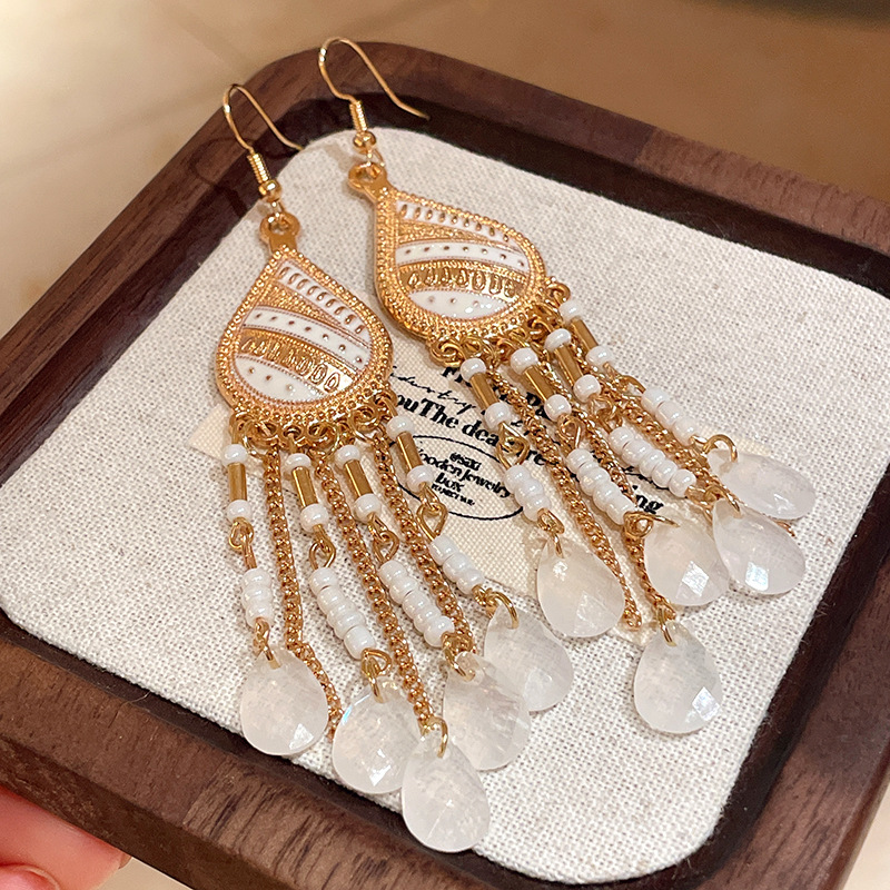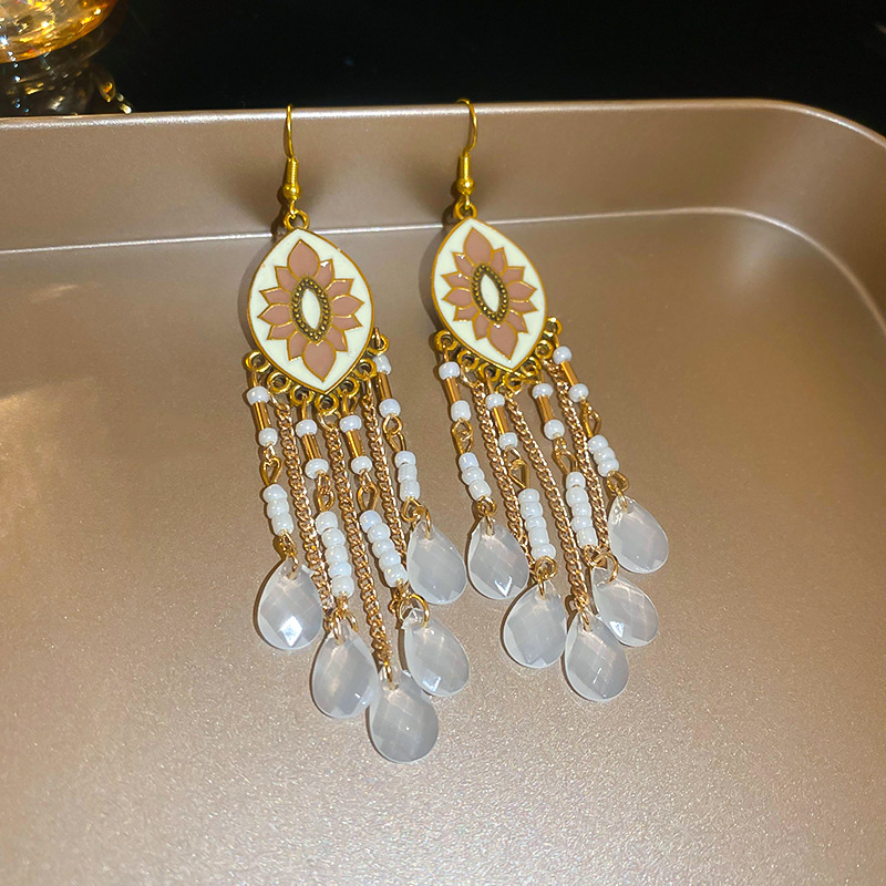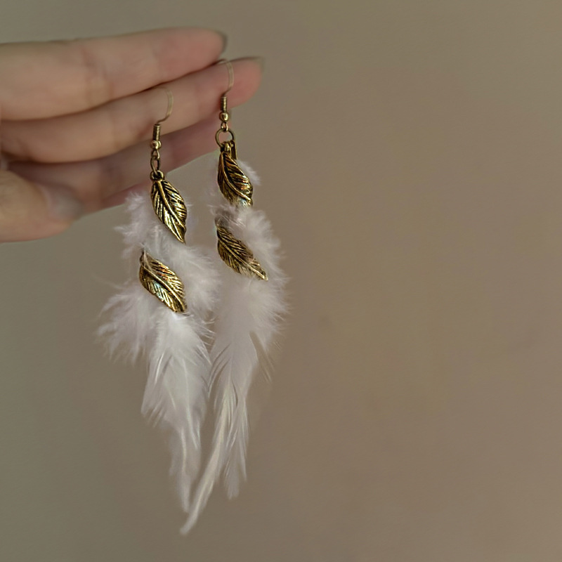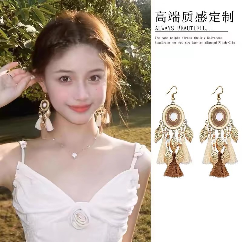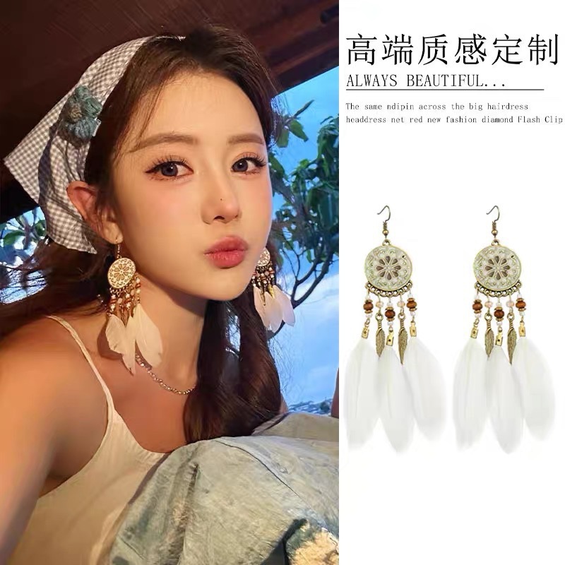 波西米亚民族风耳钩夏季海边旅游羽毛长款流苏耳坠气质高级感耳饰