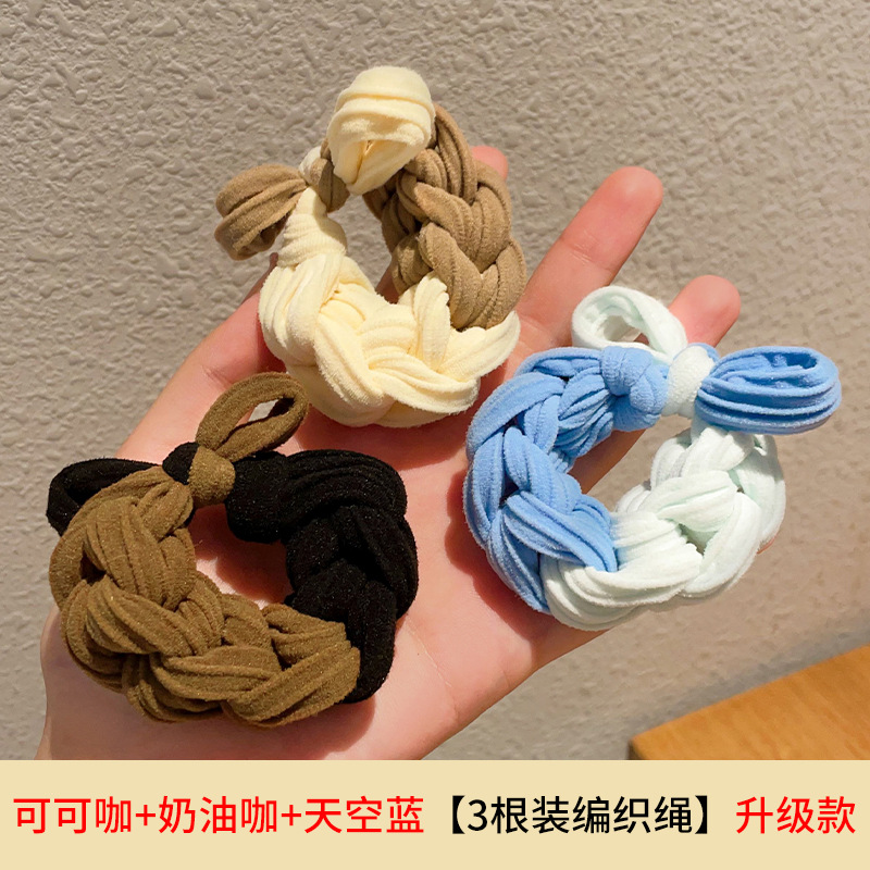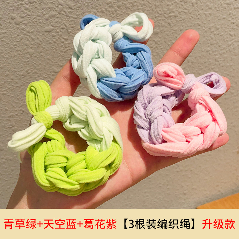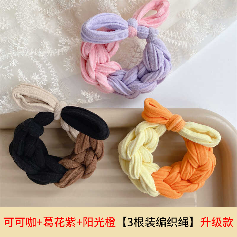 多巴胺撞色编织加粗皮筋女扎发高弹力耐用扎马尾发绳手工头绳儿童