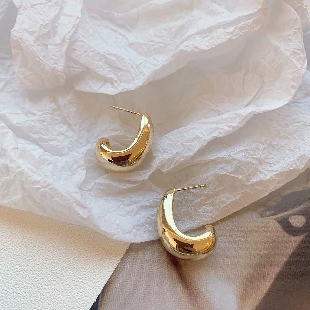 银针金属风圆形几何耳环小众简约百搭耳钉韩国ins时尚高级感耳饰