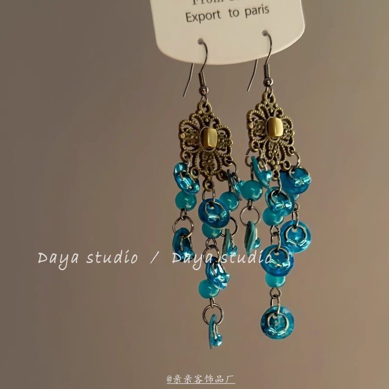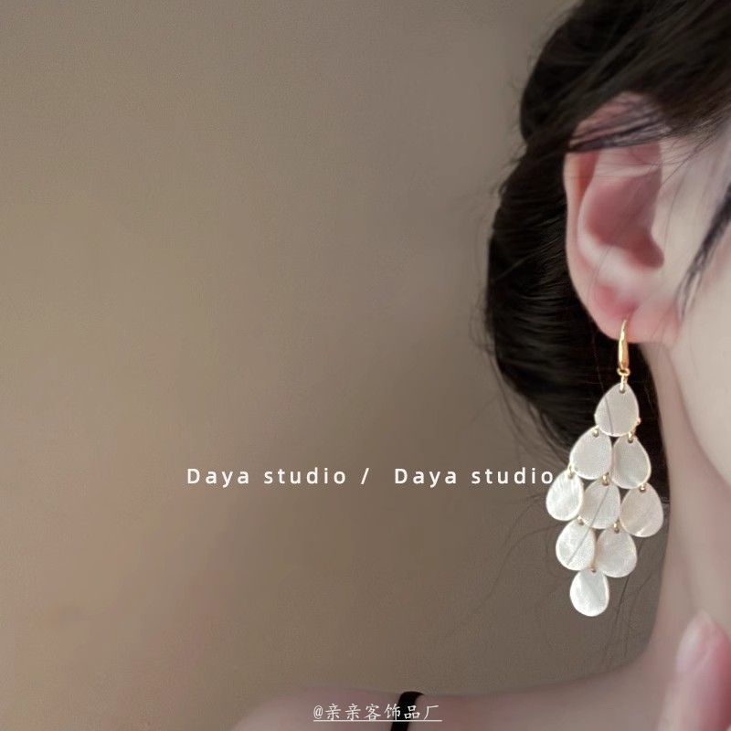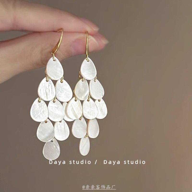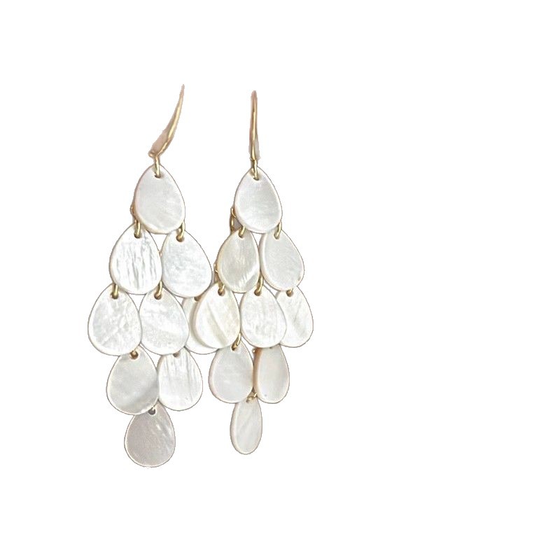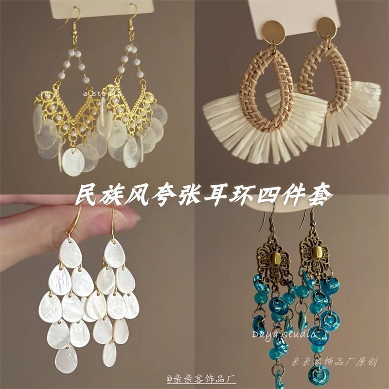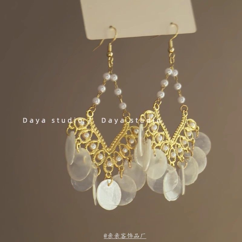 贝壳风铃 想念海边的风 和自由 波西米亚度假风复古贝壳流苏耳环