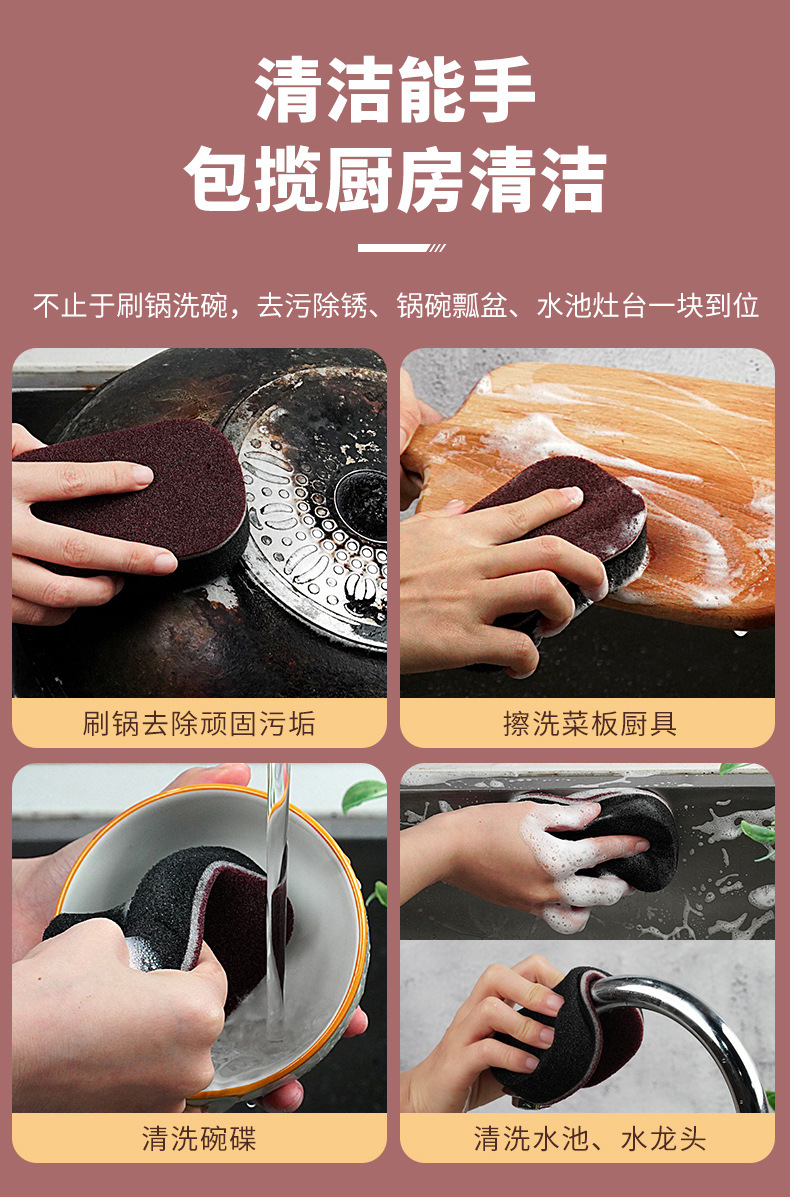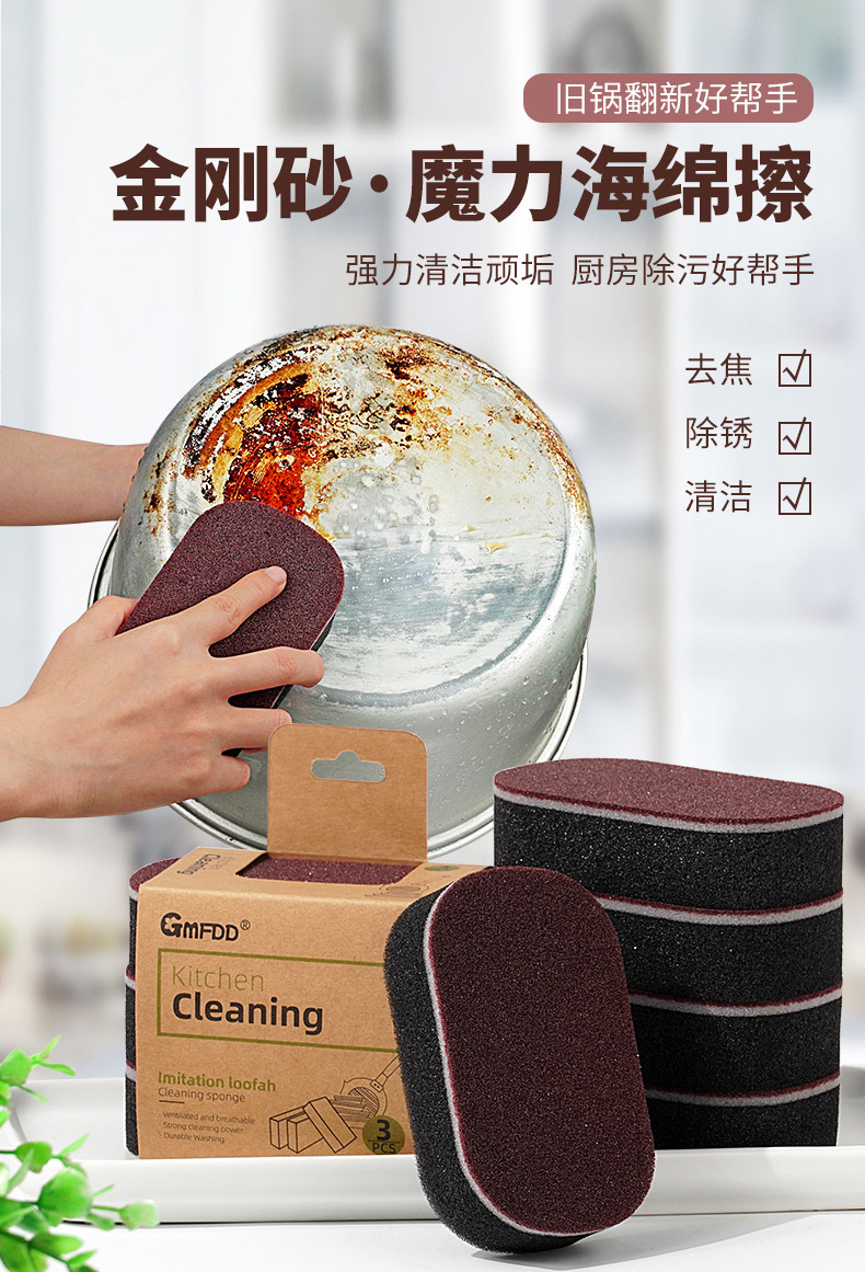 金刚砂海绵擦魔力擦厨房清洁加厚双面洗碗擦除锈刷锅底黑垢神器