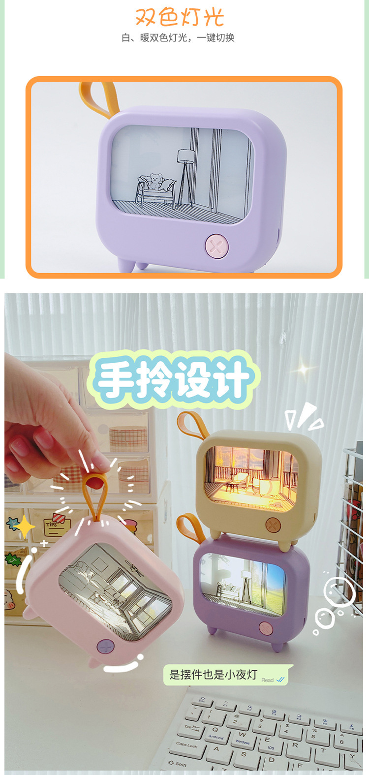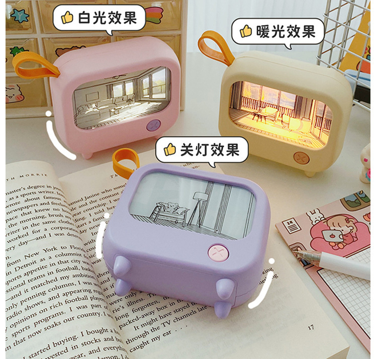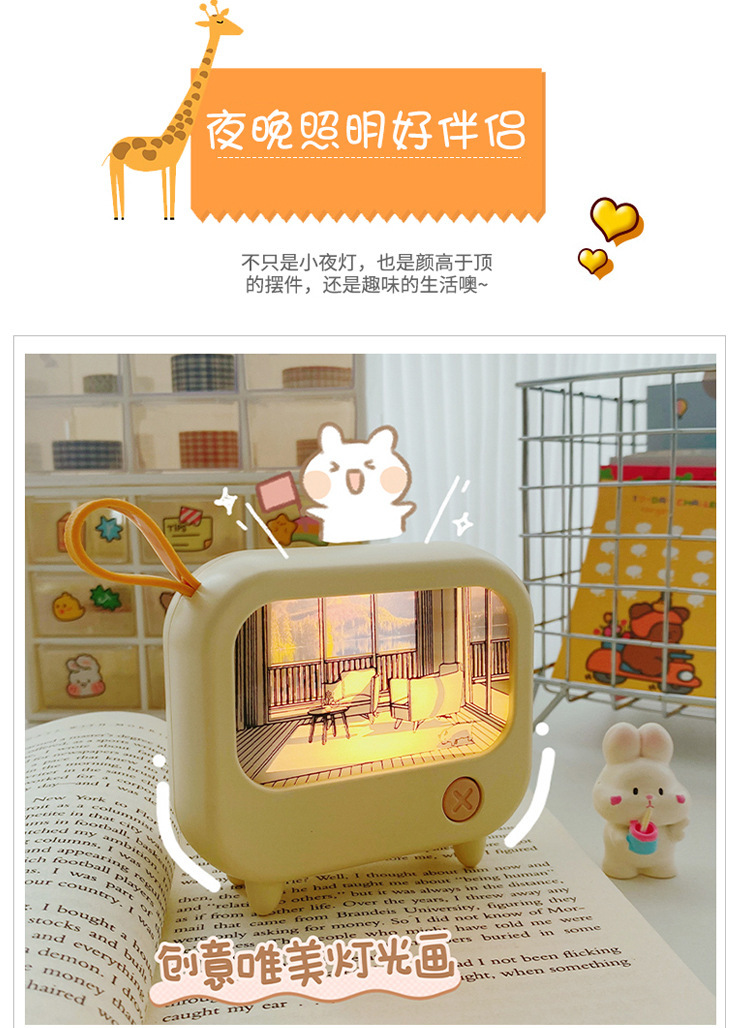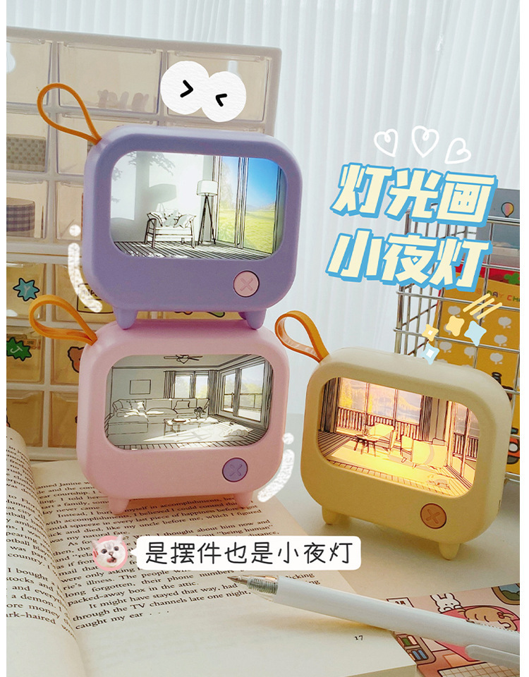 网红新款灯光画卧室小夜灯温馨暖光氛围灯儿童学习台灯二档调光灯