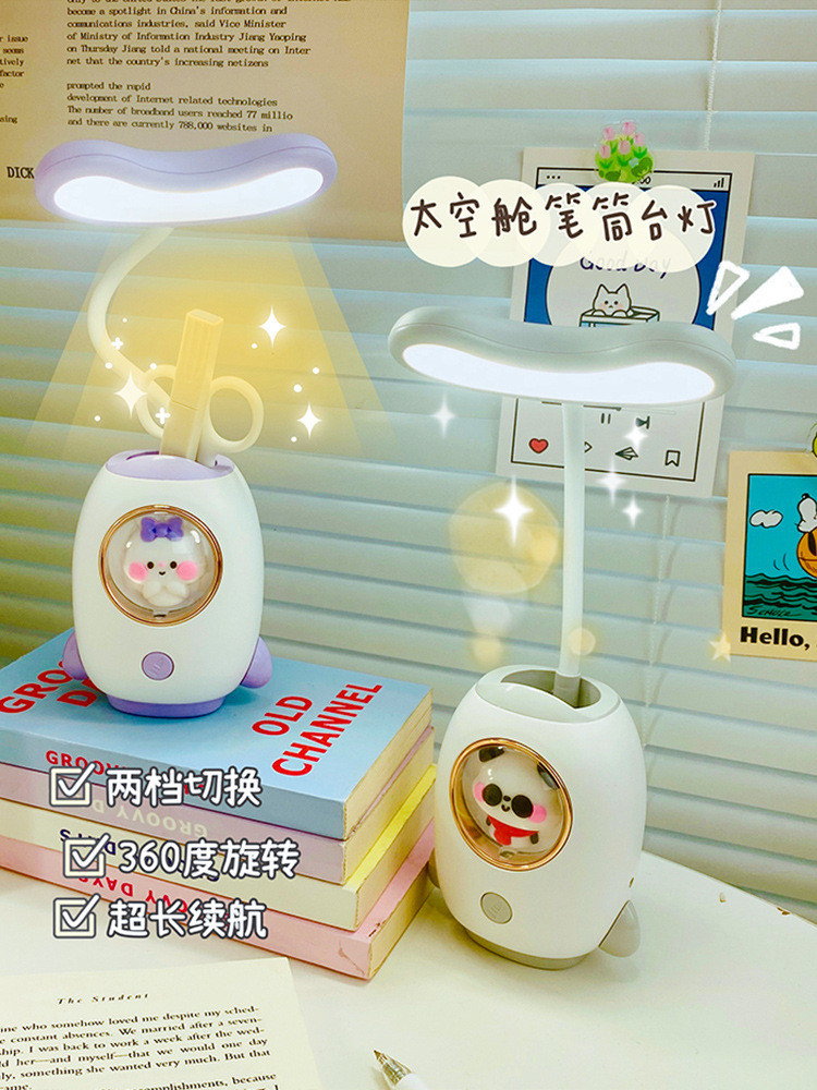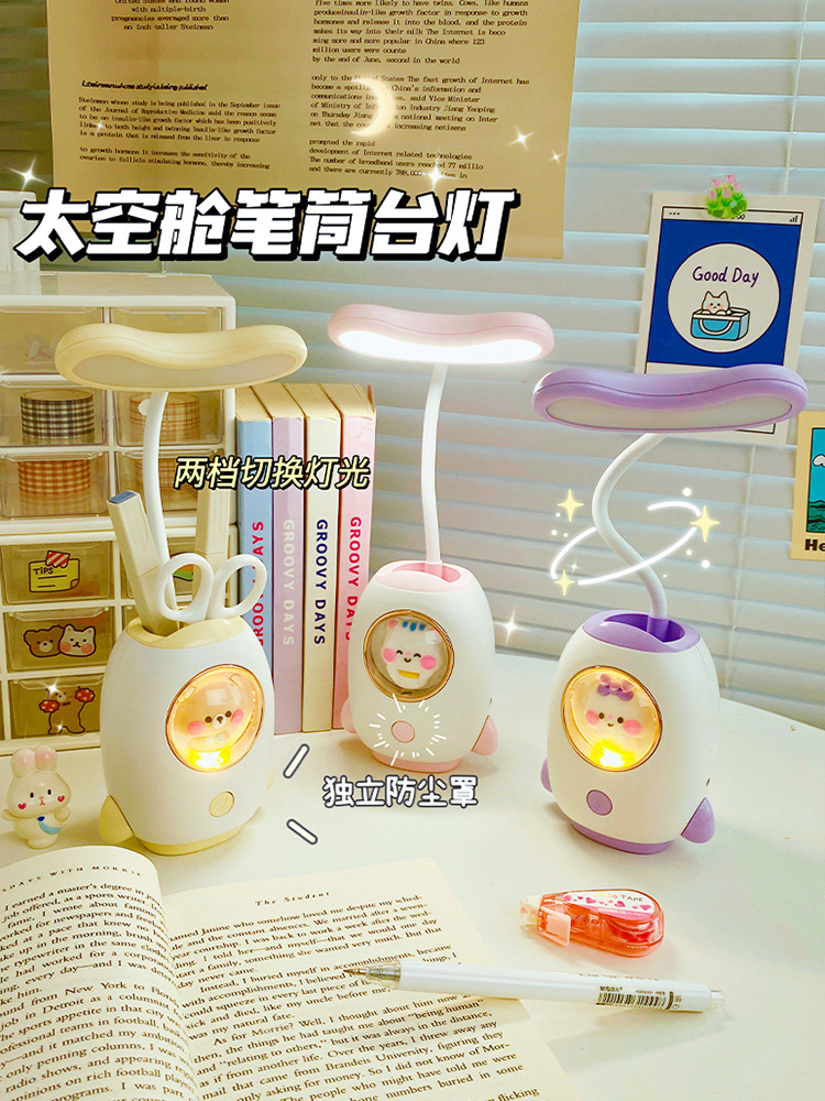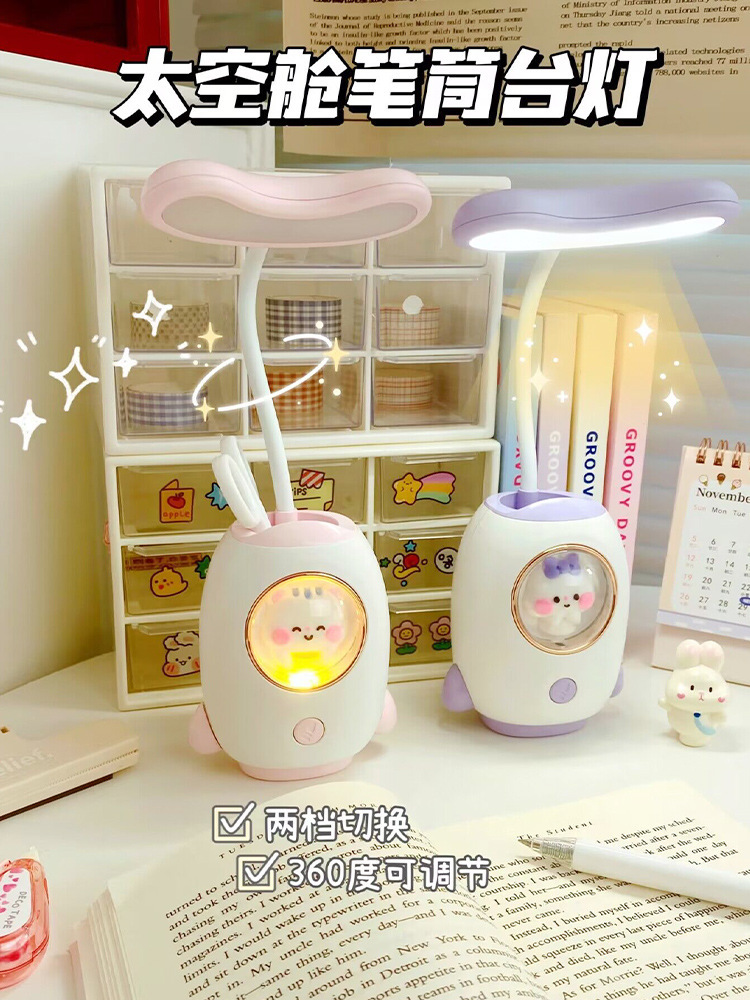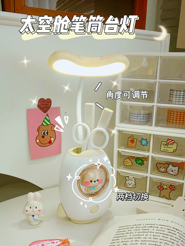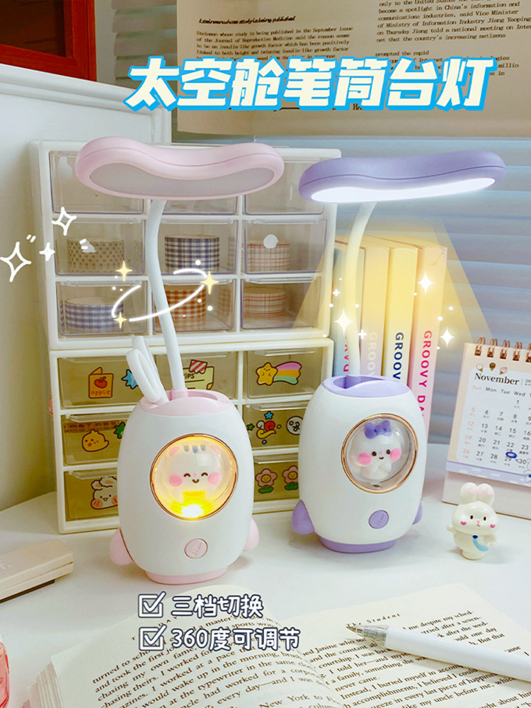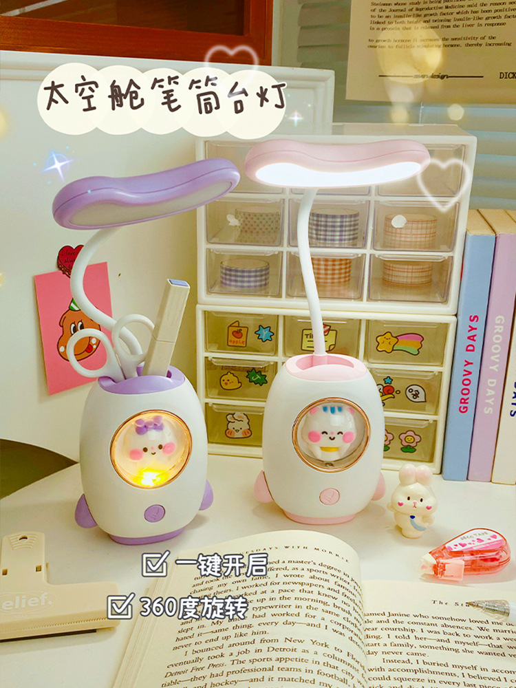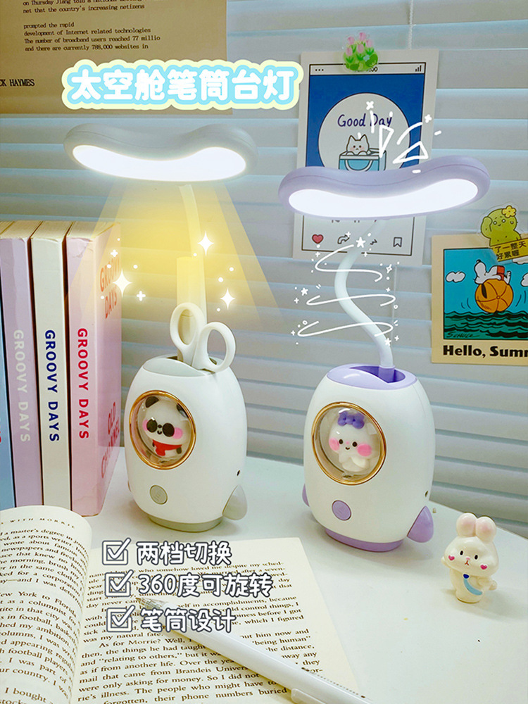 太空舱卡通充电学习台灯创意宿舍led儿童护眼台灯笔筒卡通夜灯