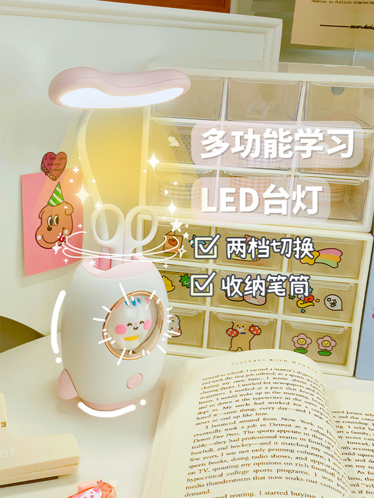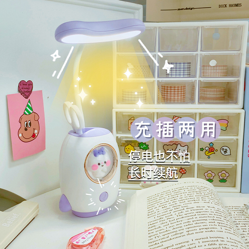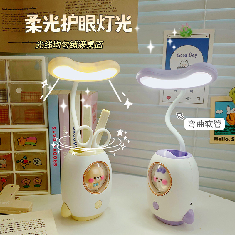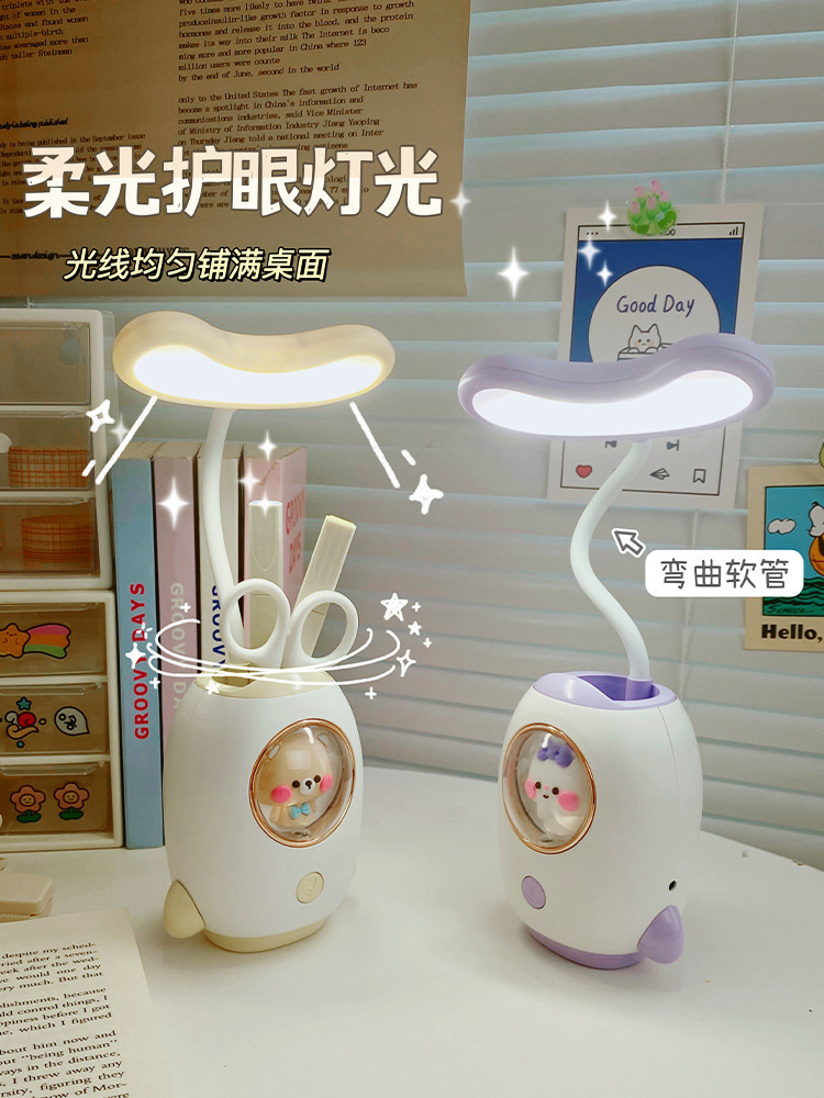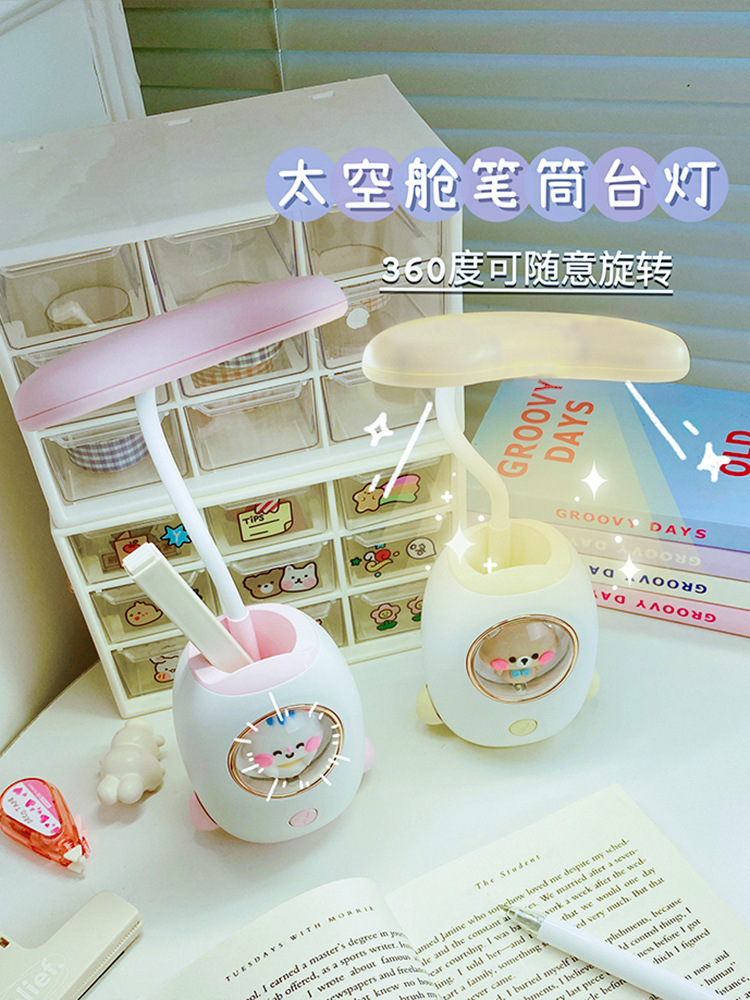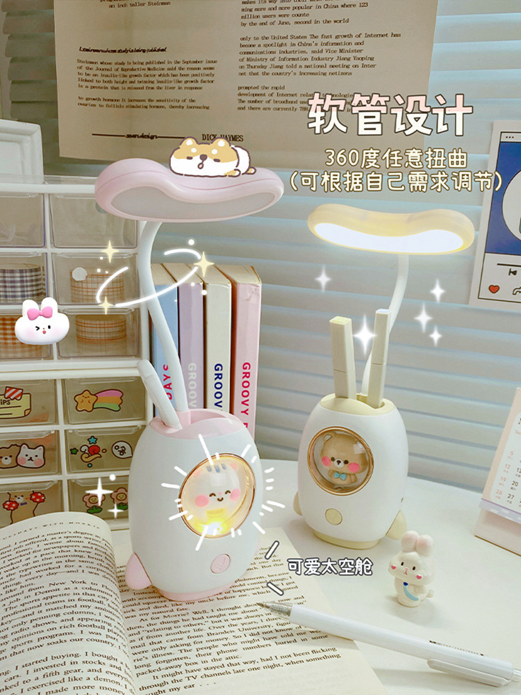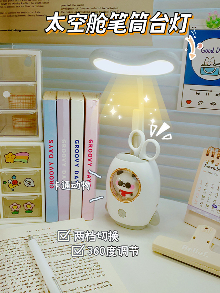 太空舱卡通充电学习台灯创意宿舍led儿童护眼台灯笔筒卡通夜灯