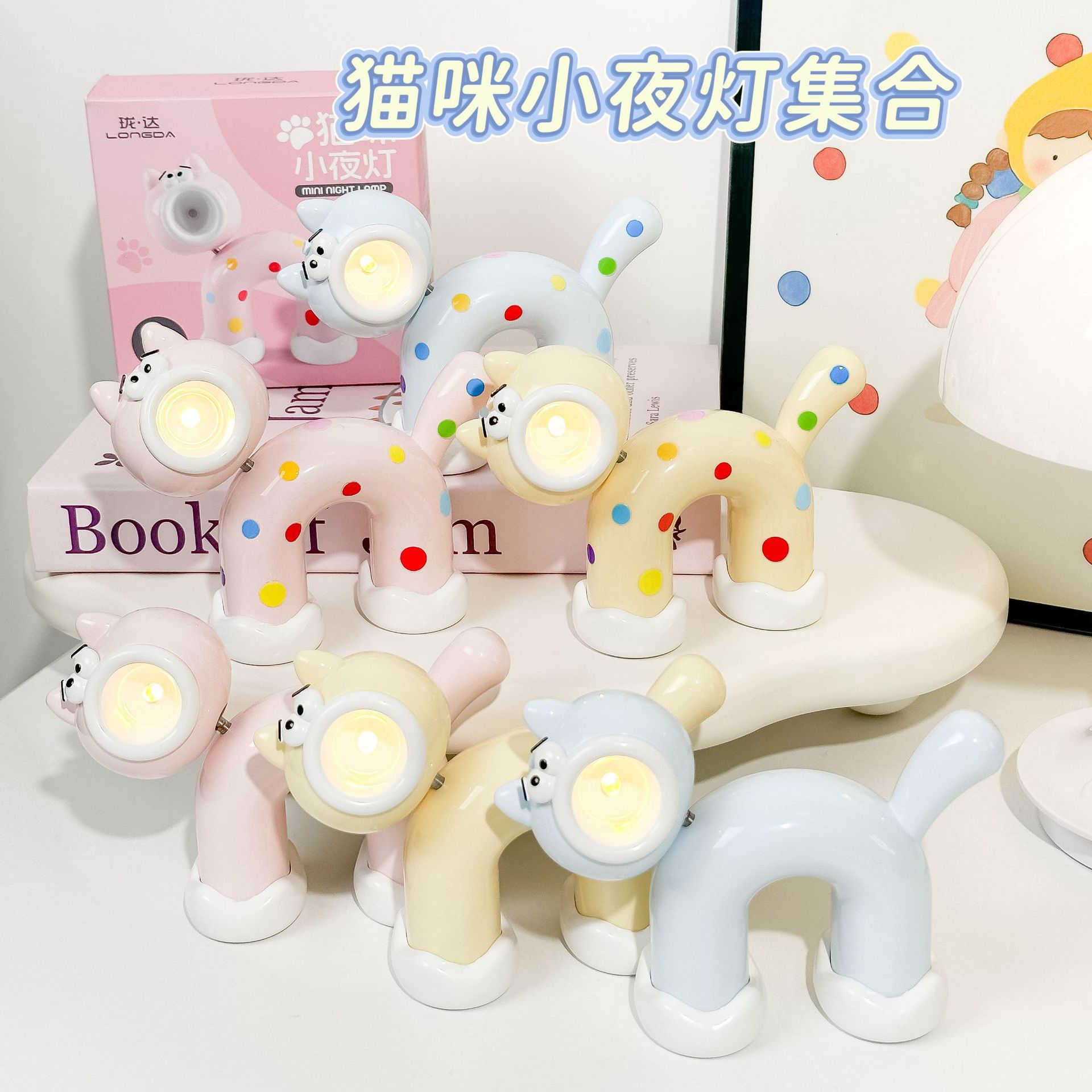 猫咪迷你台灯ins桌面创意装饰摆件学生宿舍卧室床头睡眠猫咪夜灯