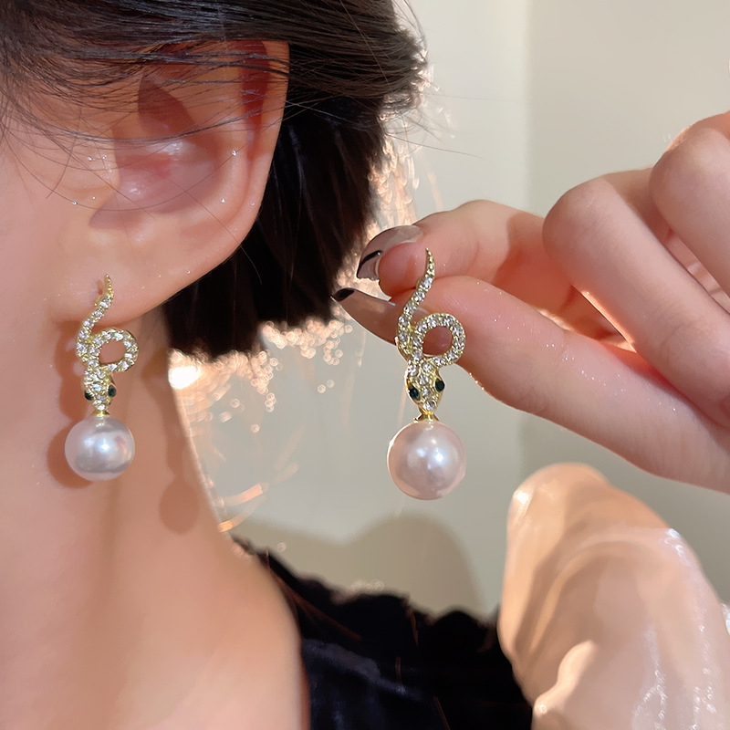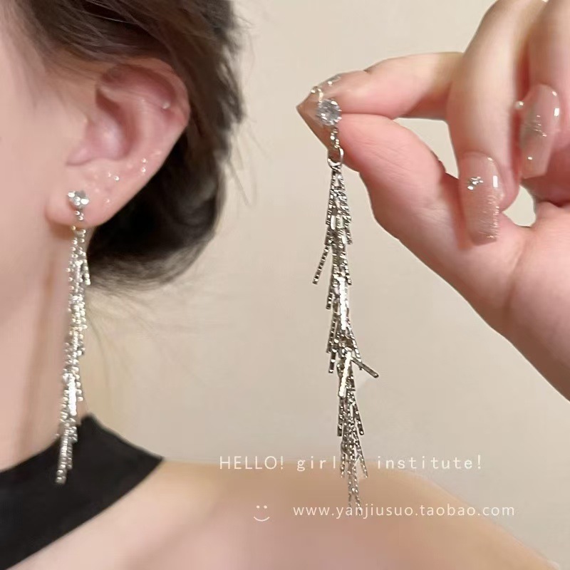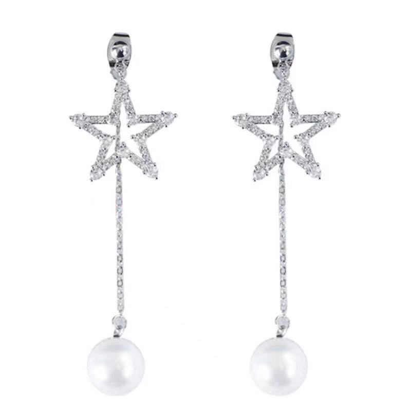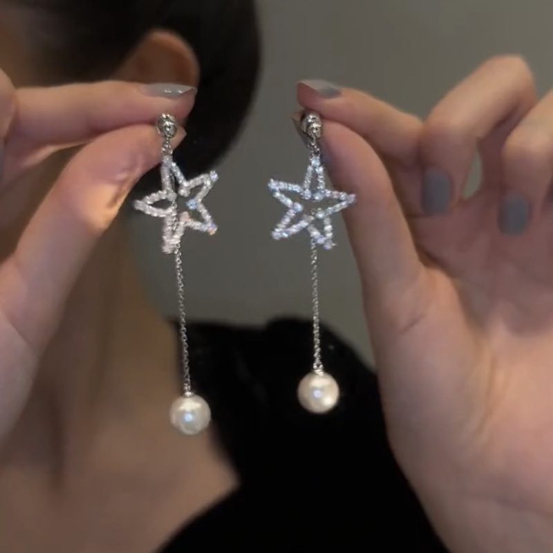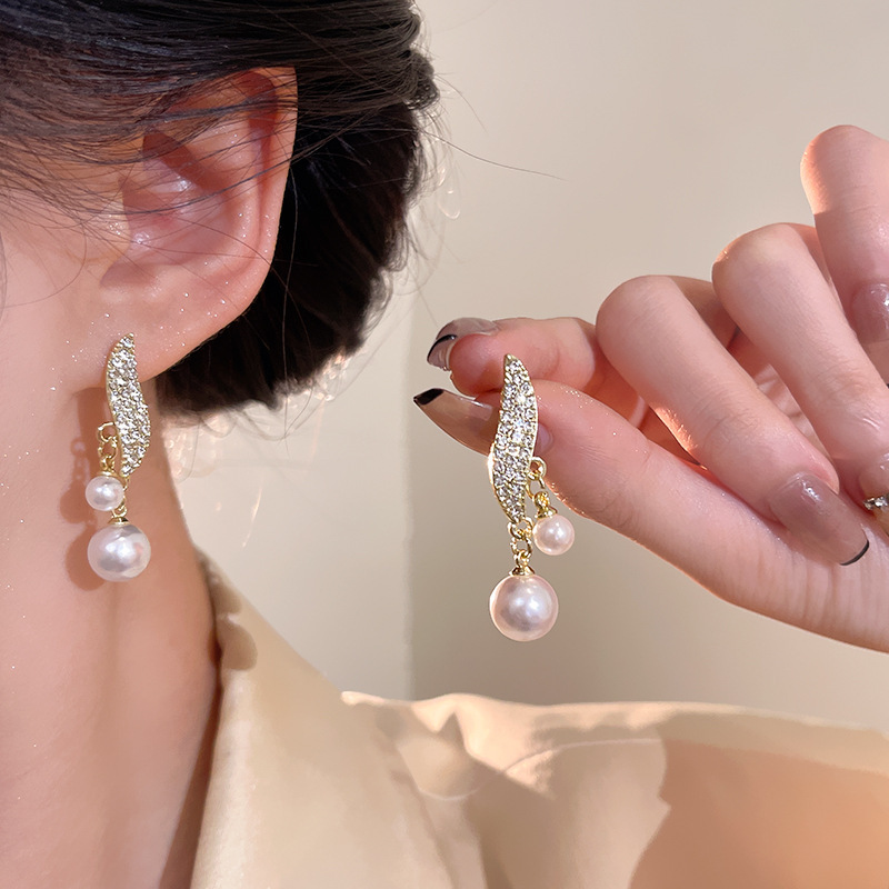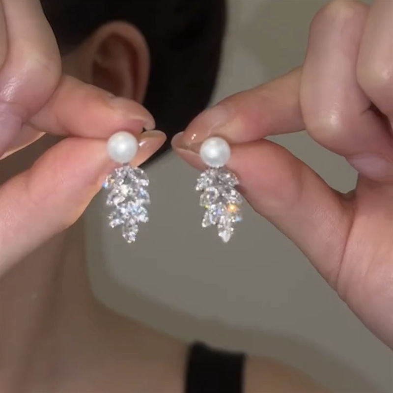 轻奢百搭微镶锆石珍珠吊坠耳钉女小众设计高级感长款流苏耳环耳饰