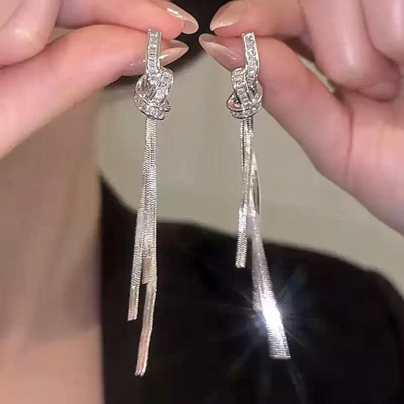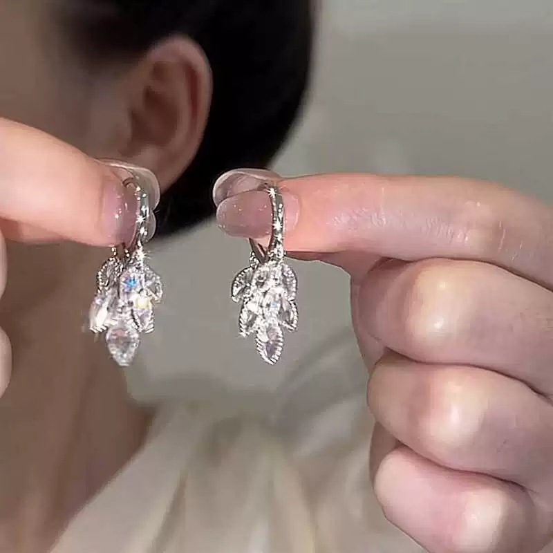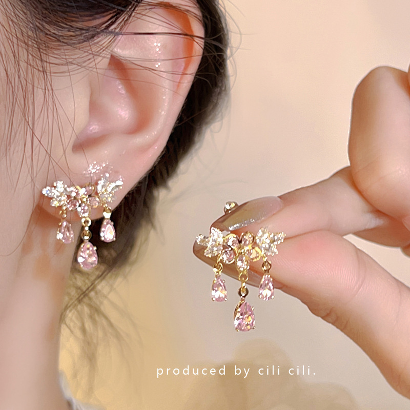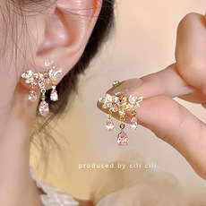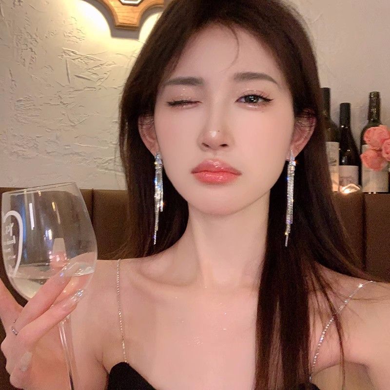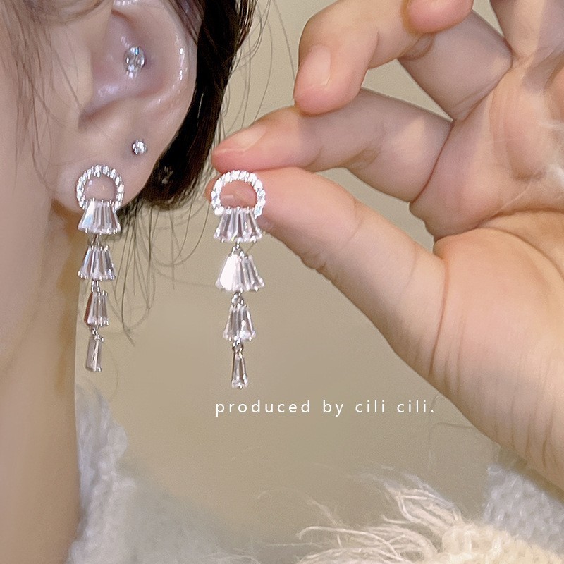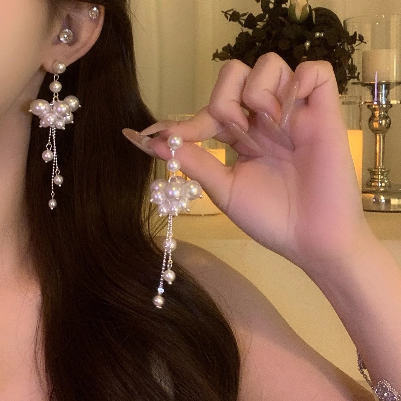轻奢百搭微镶锆石珍珠吊坠耳钉女小众设计高级感长款流苏耳环耳饰