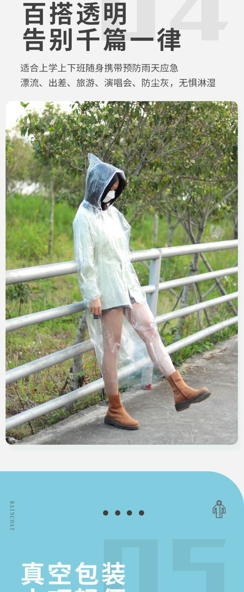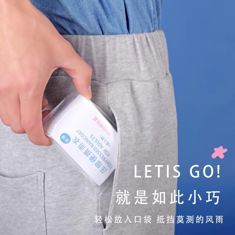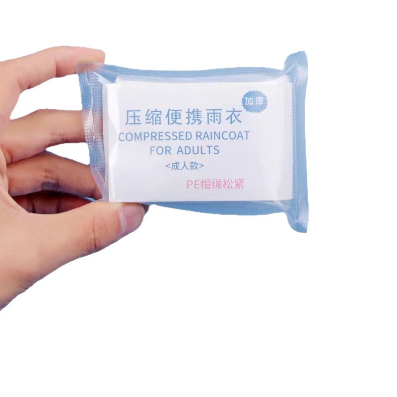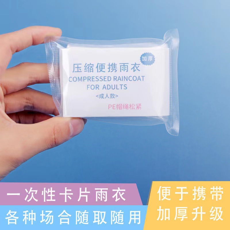 便携一次性卡片雨衣长款全身真空压缩PE帽绳松紧成人雨衣批发旅游