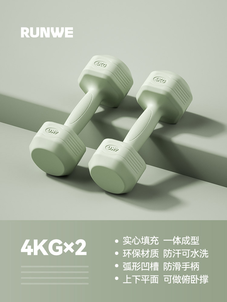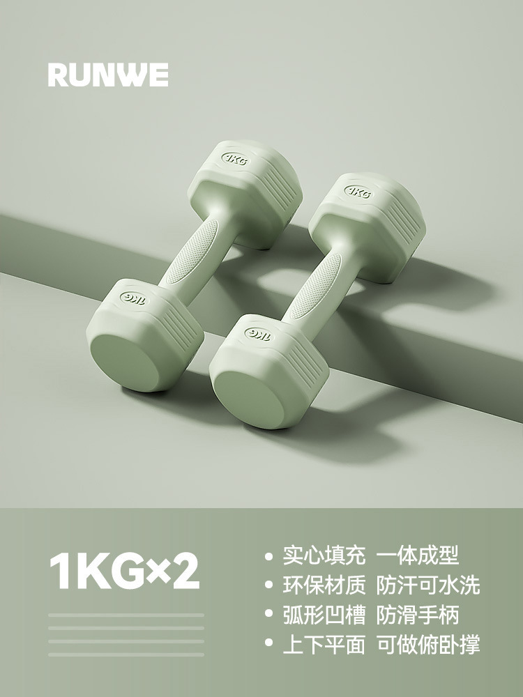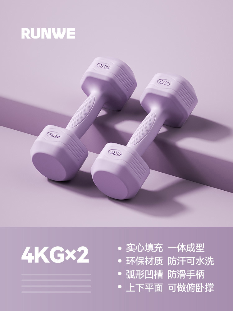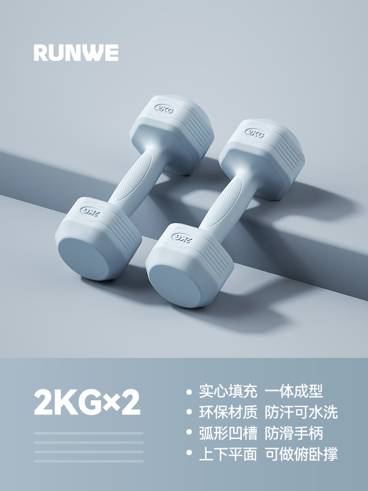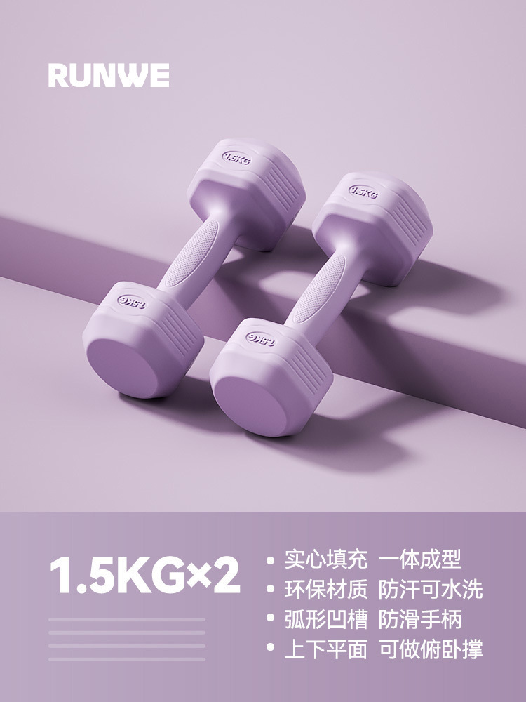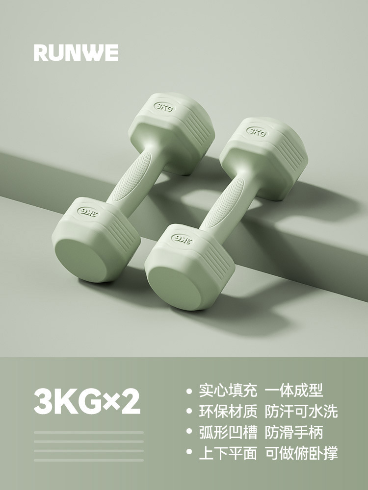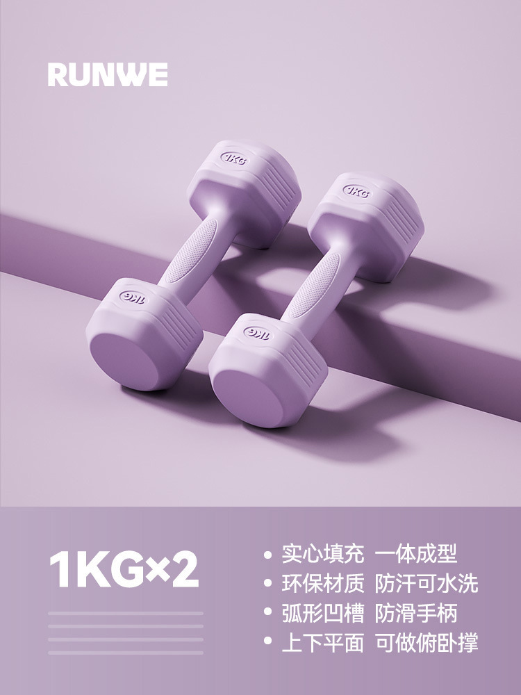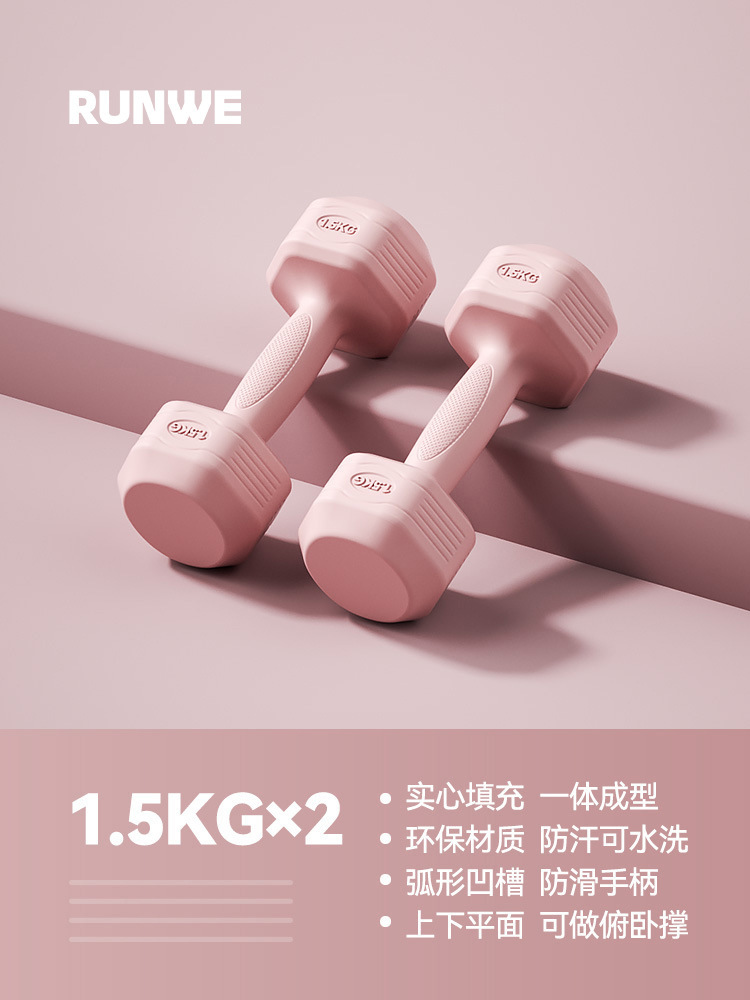哑铃女士健身家用器材六角儿童练臂肌瑜伽包胶一对杠铃男士小哑铃
