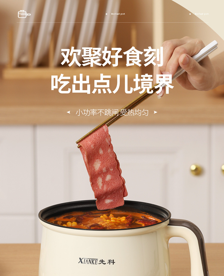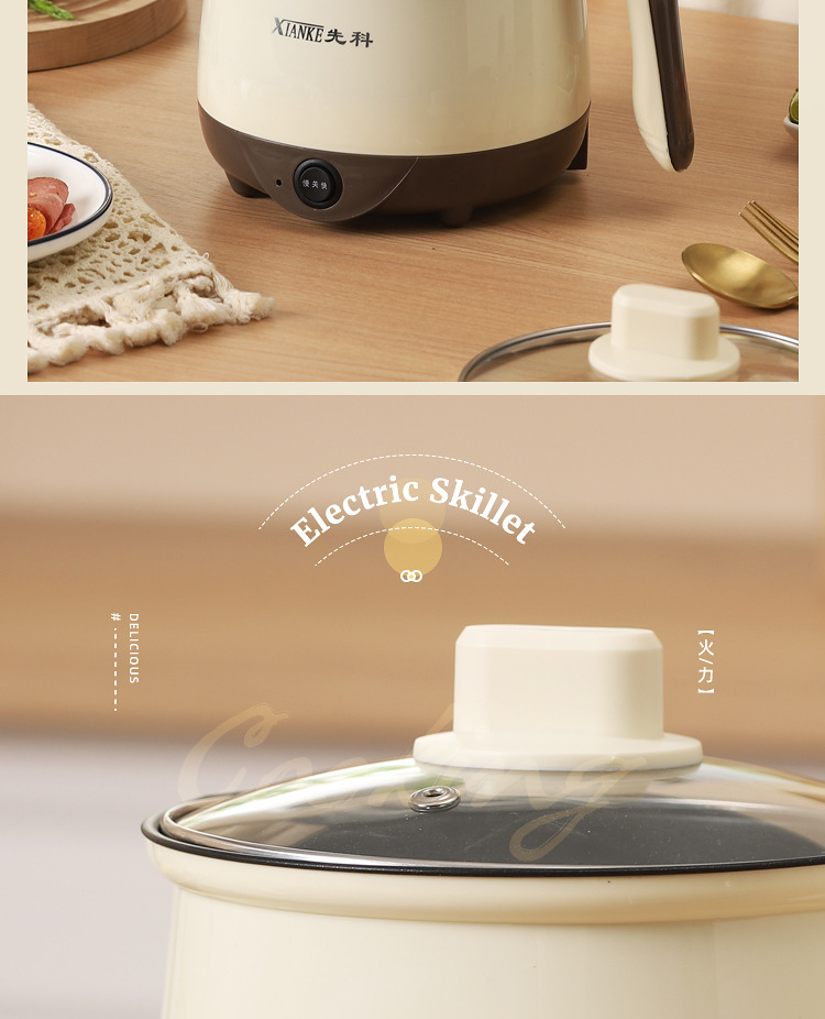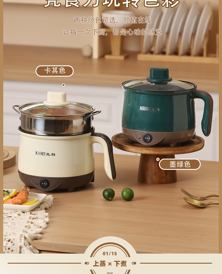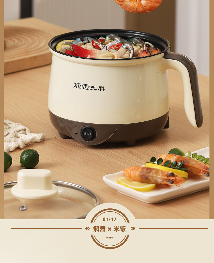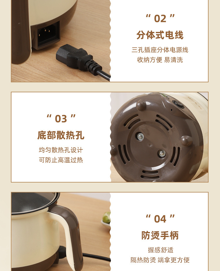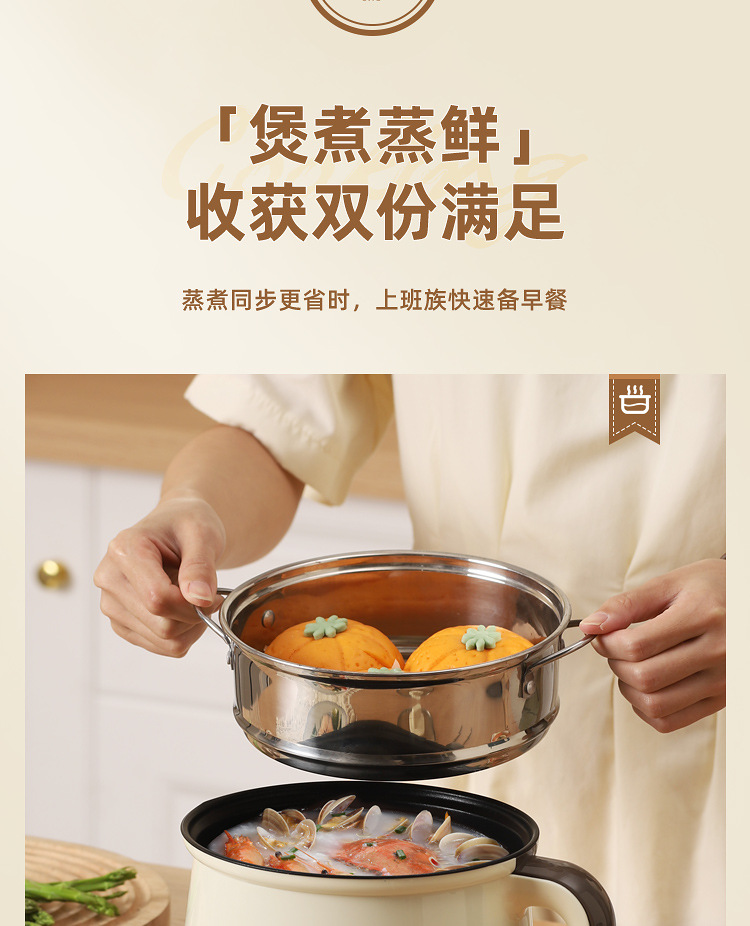 粤尔德直供 多功能电煮锅宿舍蒸煮一体锅料理锅小型电热锅电火锅