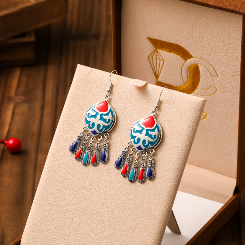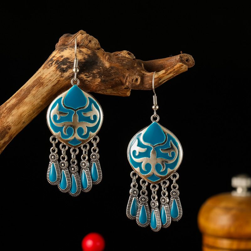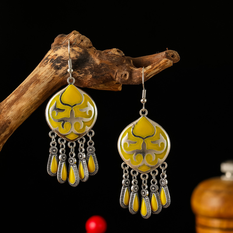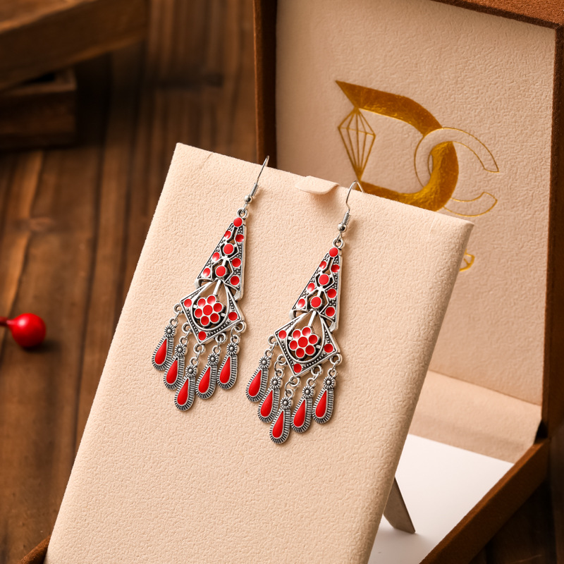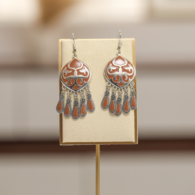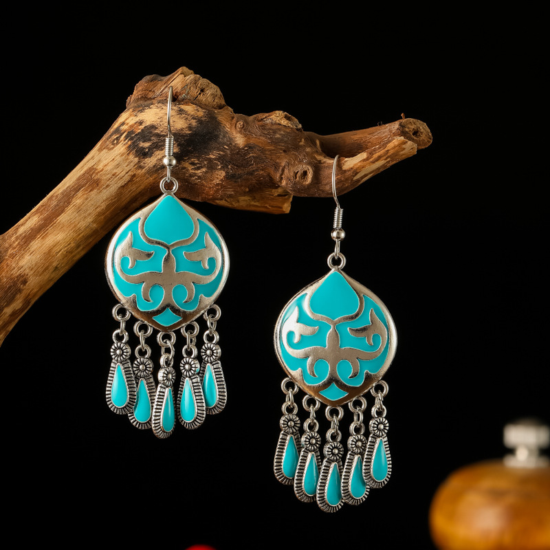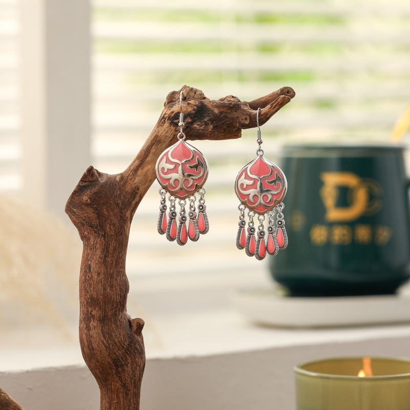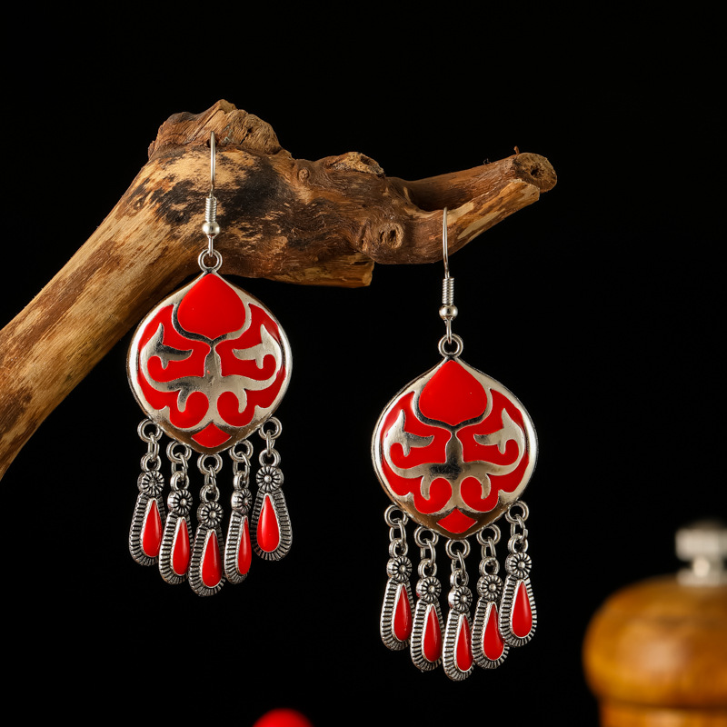 2026新款小短款光面滴油多层耳坠火焰图腾异域风耳环复古树叶耳饰