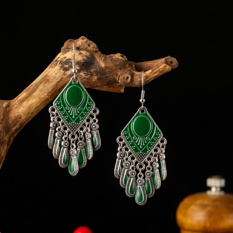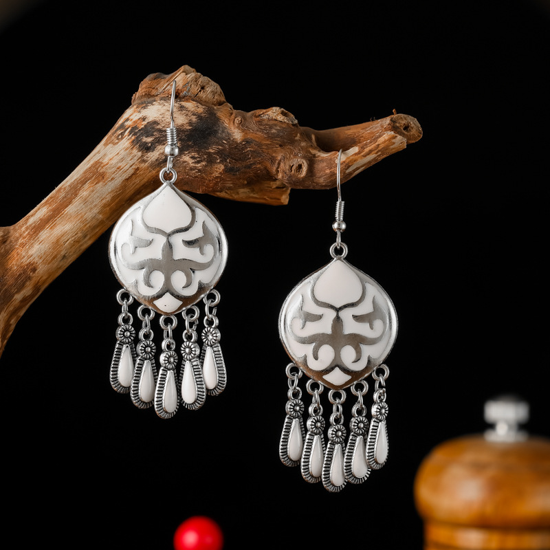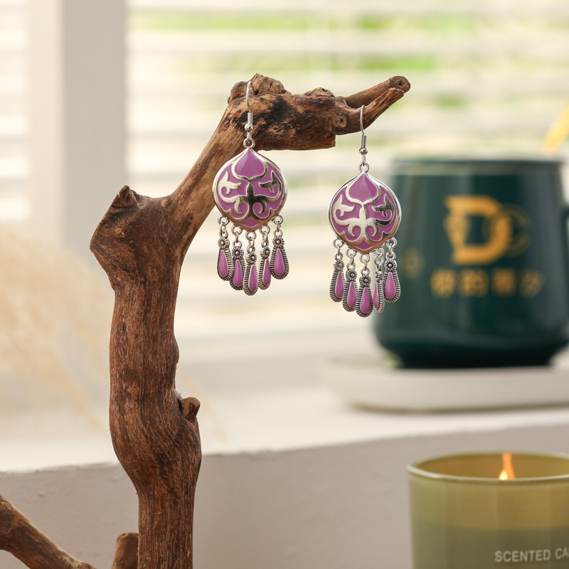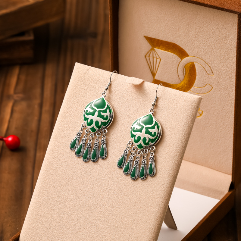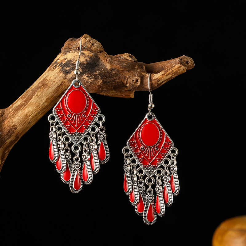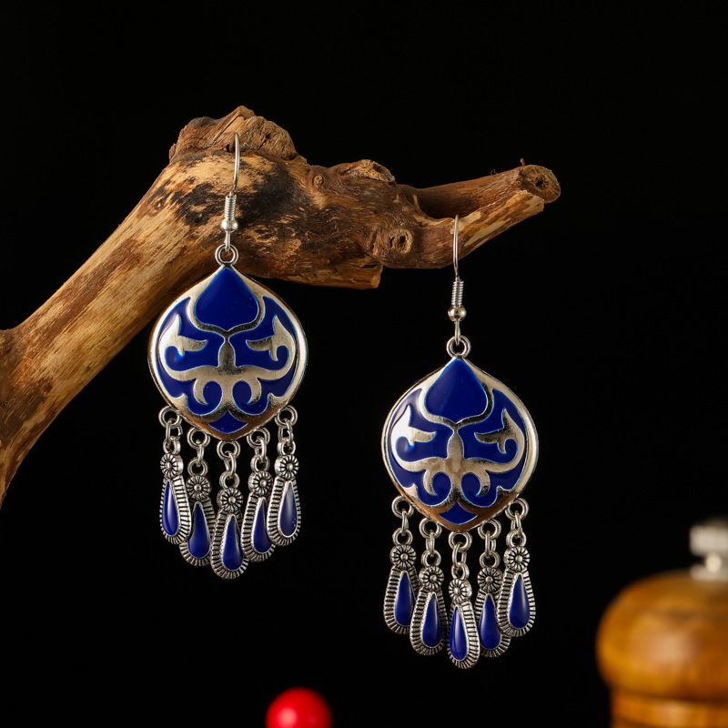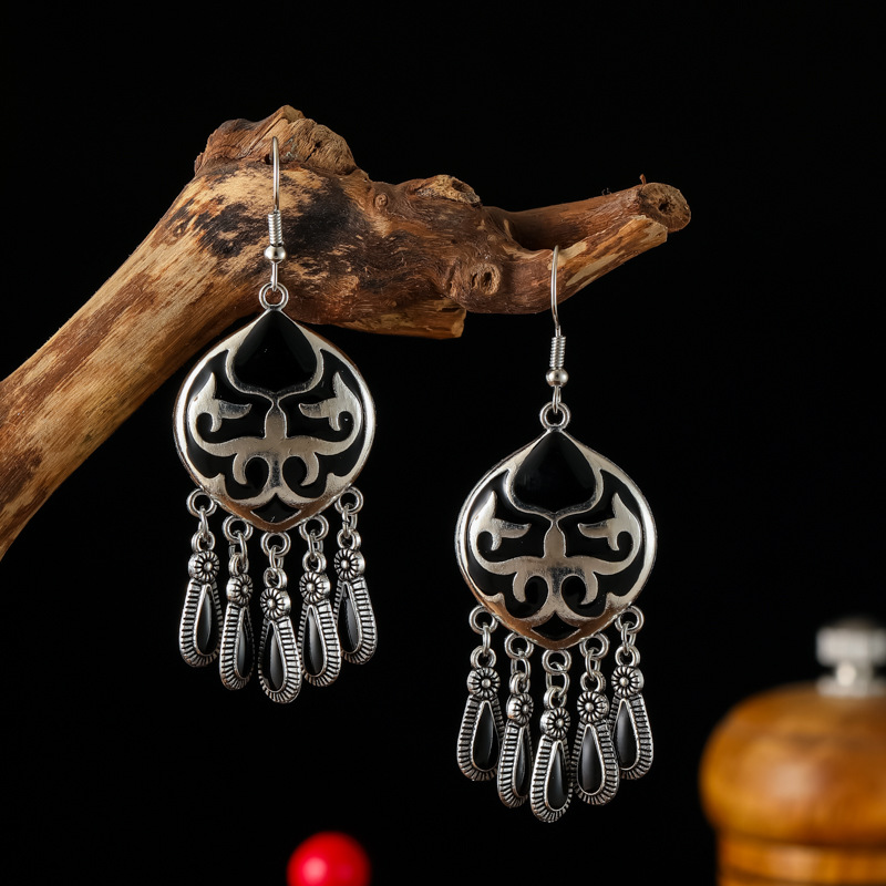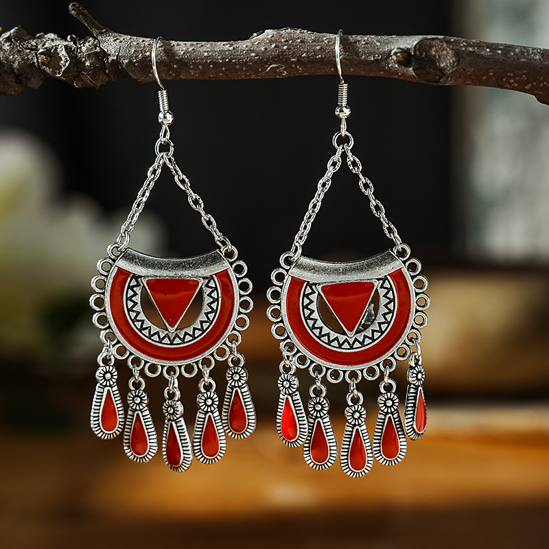 2026新款小短款光面滴油多层耳坠火焰图腾异域风耳环复古树叶耳饰