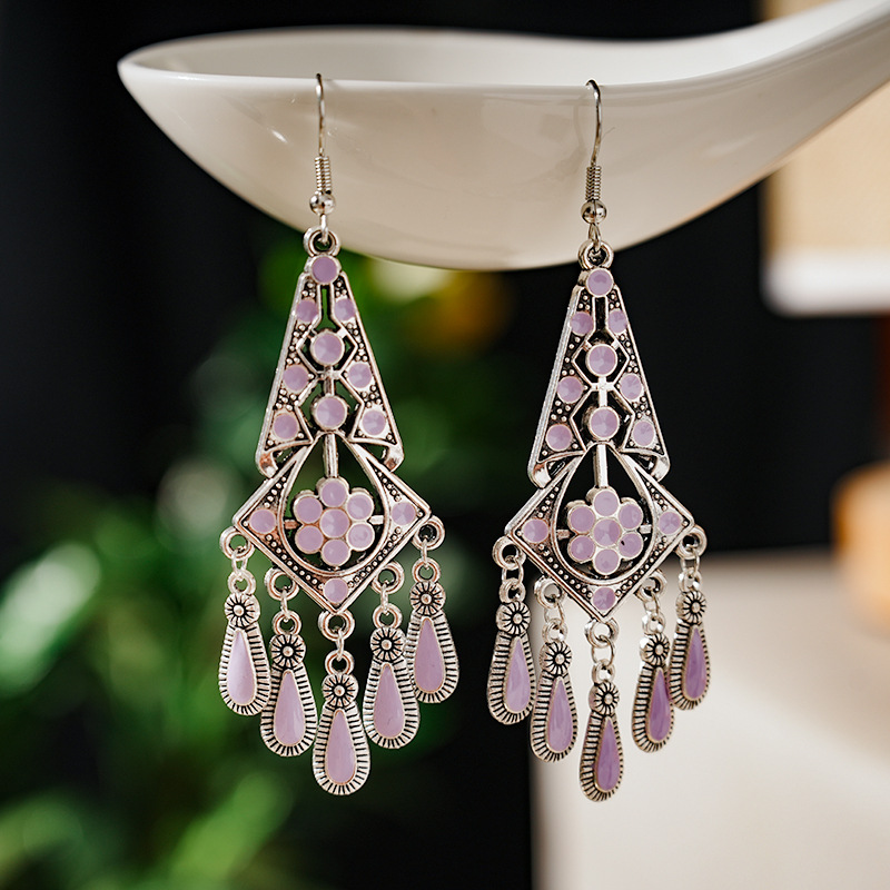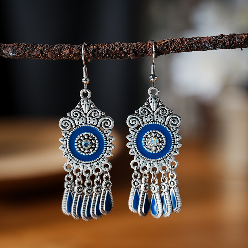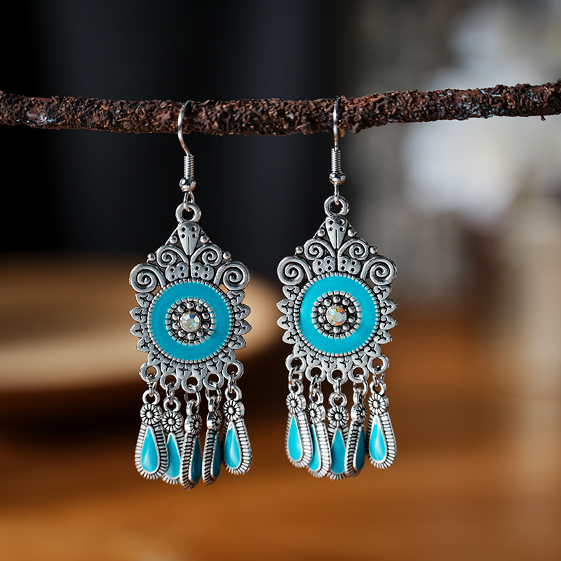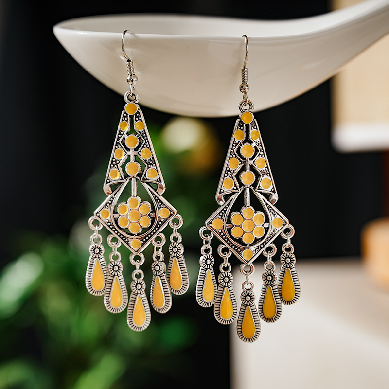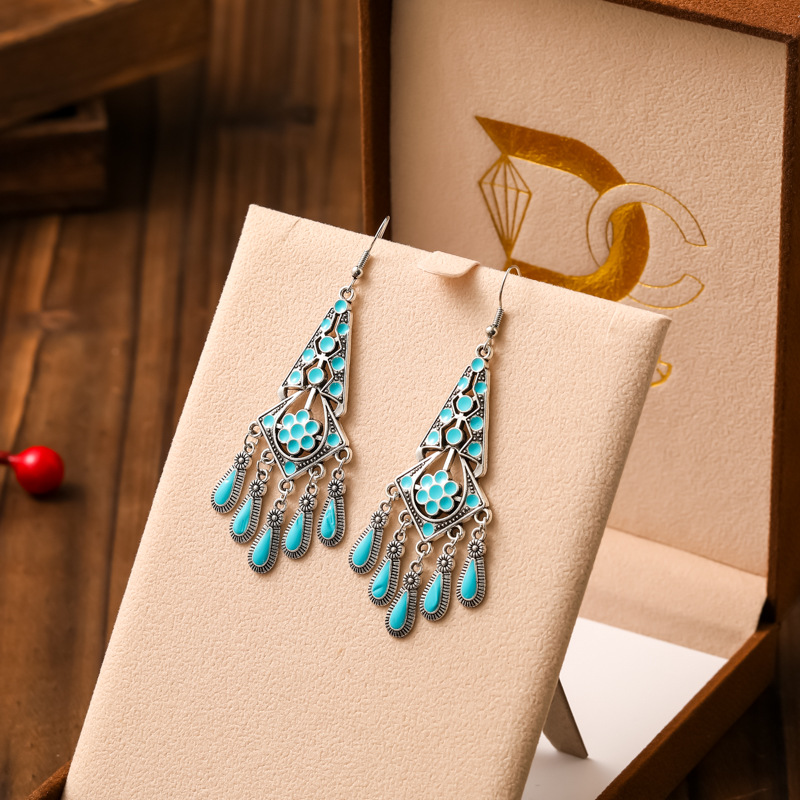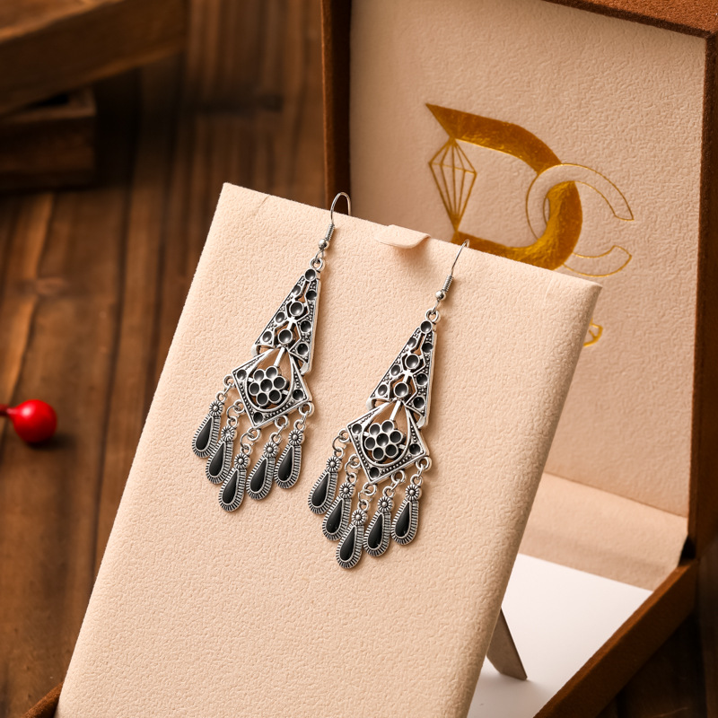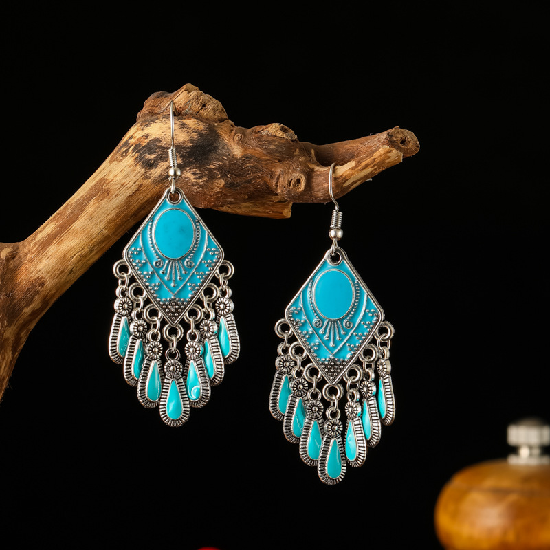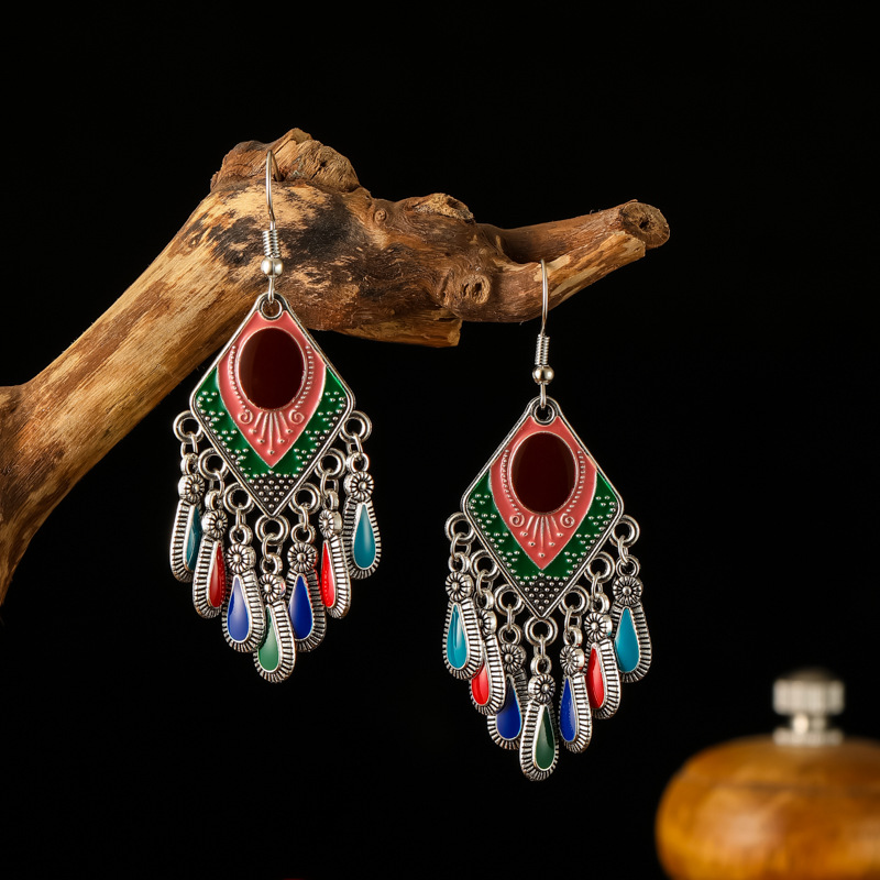 2026新款小短款光面滴油多层耳坠火焰图腾异域风耳环复古树叶耳饰