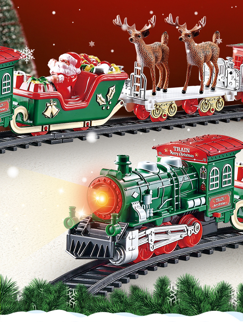 圣诞小火车玩具圣诞复古轨道电动可悬挂树模型跨境玩具场景摆设