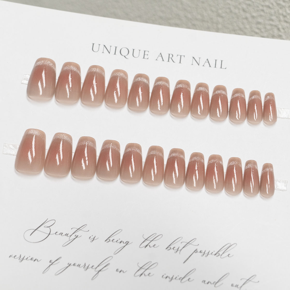 手工法式猫眼穿戴甲甲片腮红高级感美甲穿戴式指甲贴美甲片批发