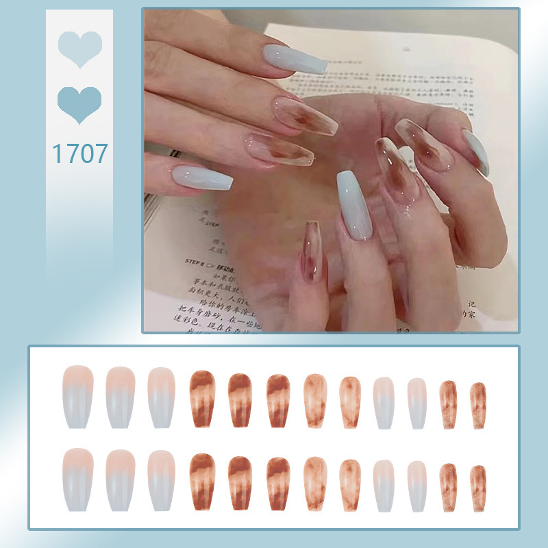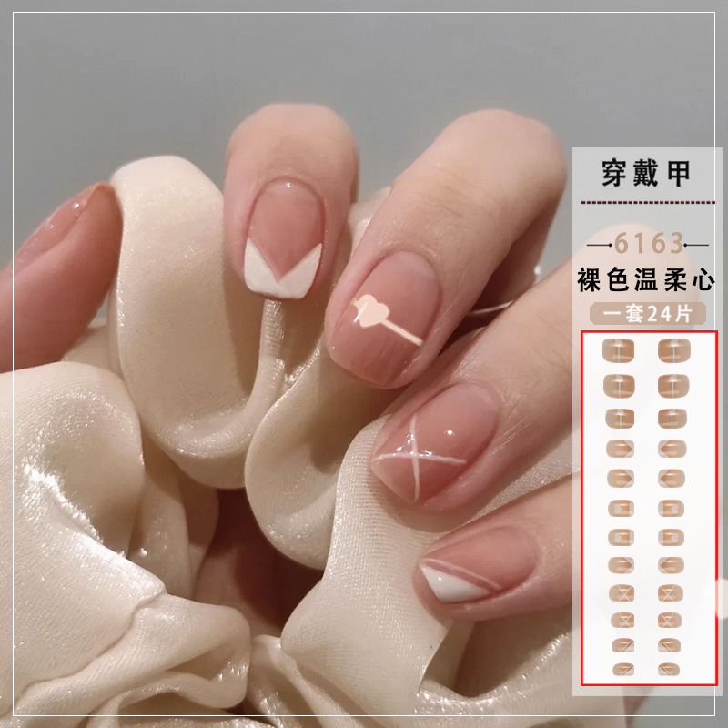 温柔中长款芭蕾甲美甲穿戴甲片冰透裸肤气质美甲贴片穿戴美甲批发