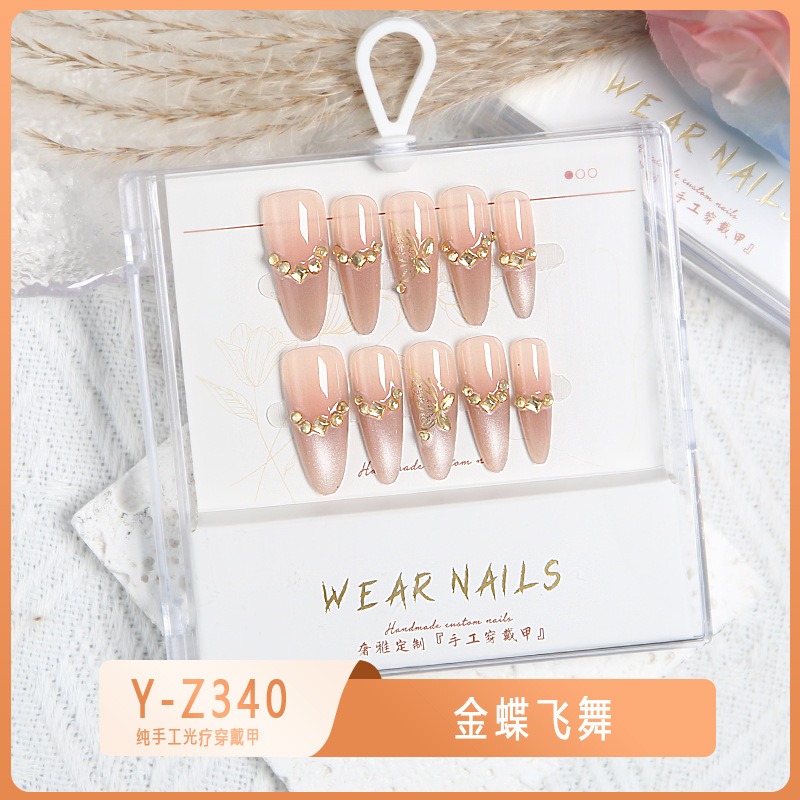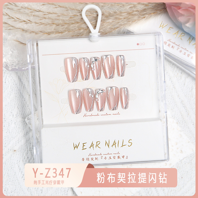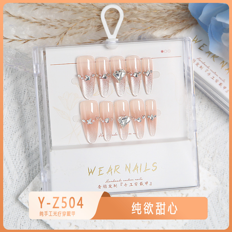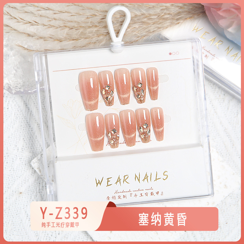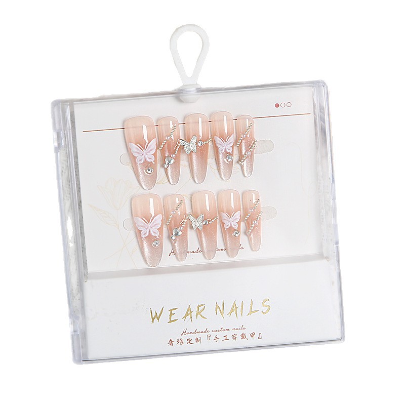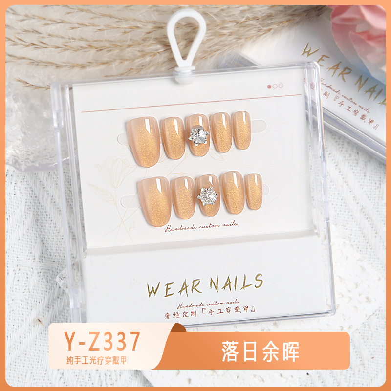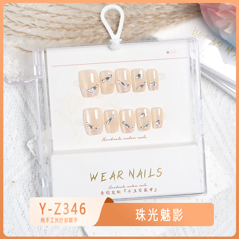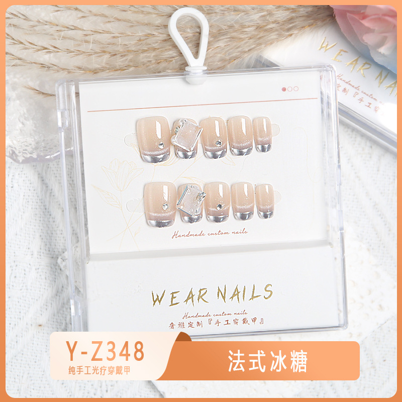 小红书爆款穿戴甲爆闪玻璃珠猫眼法式水钻美甲小众款透明盒装甲片