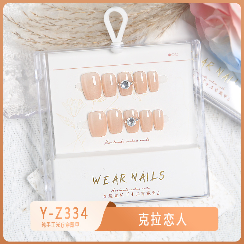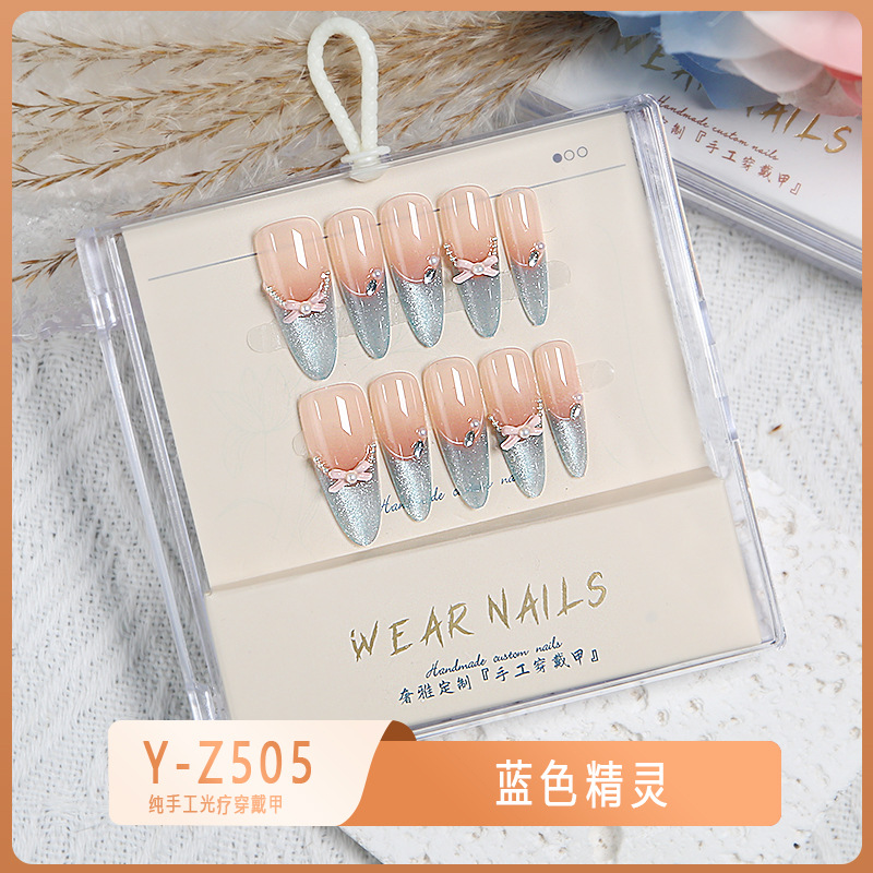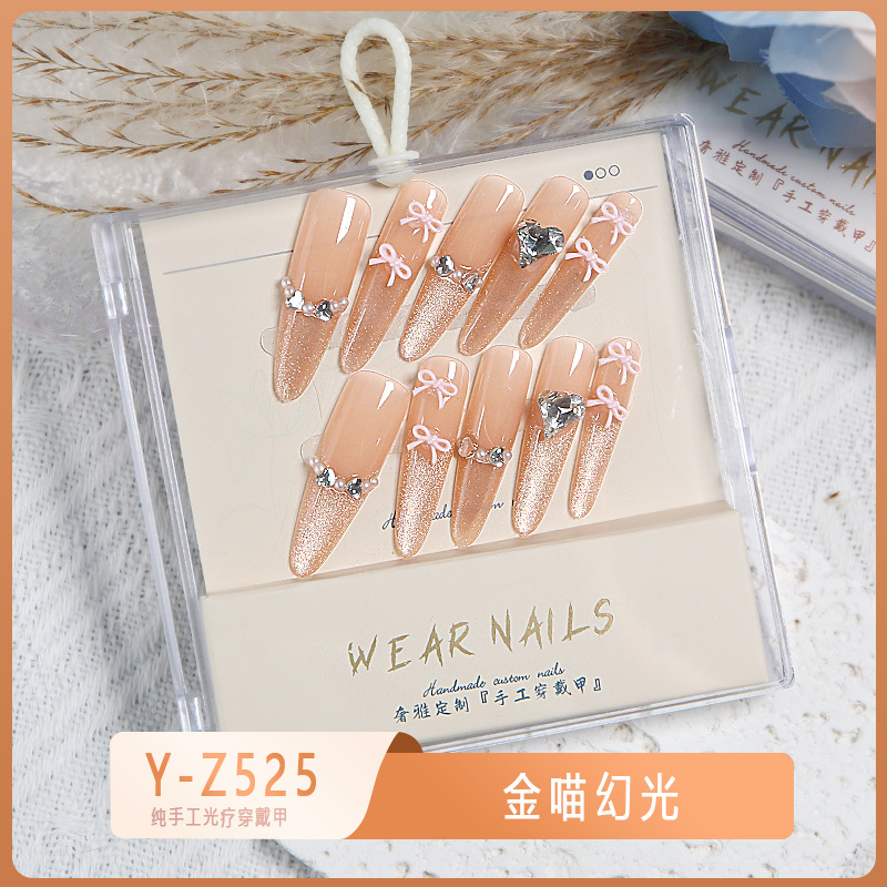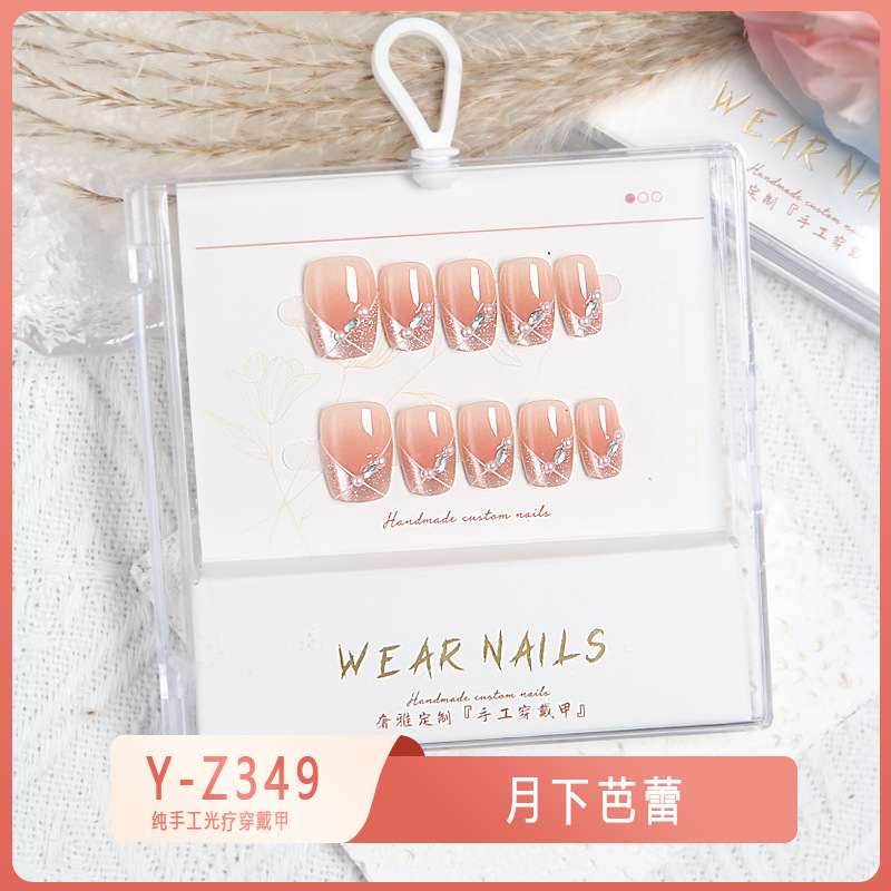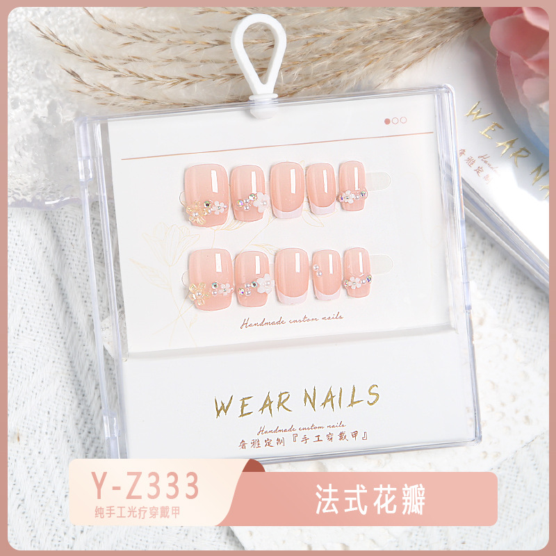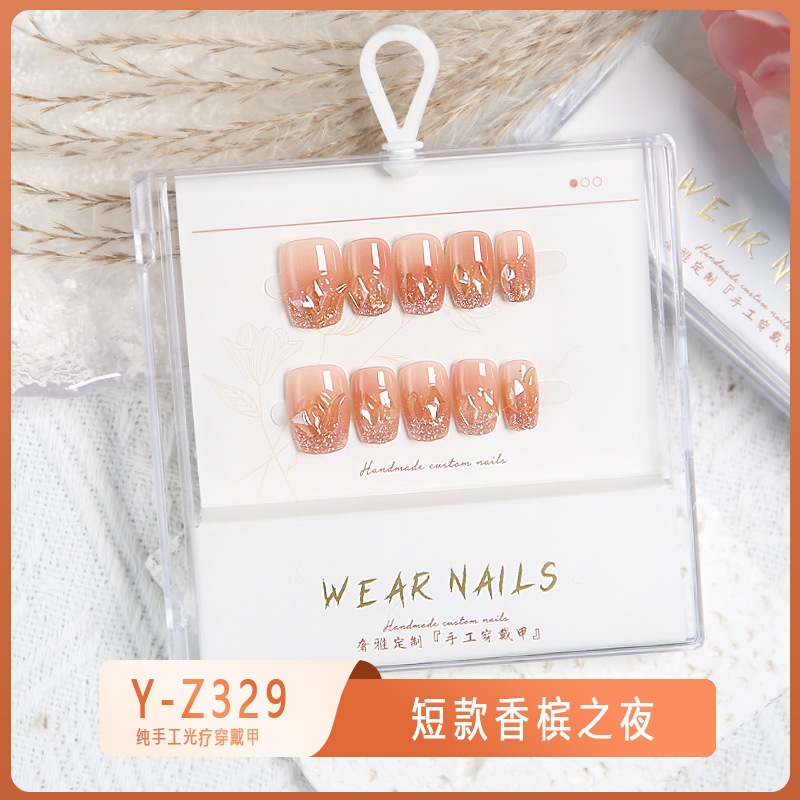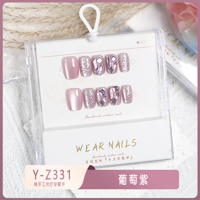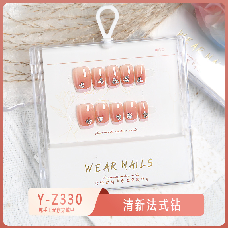 小红书爆款穿戴甲爆闪玻璃珠猫眼法式水钻美甲小众款透明盒装甲片