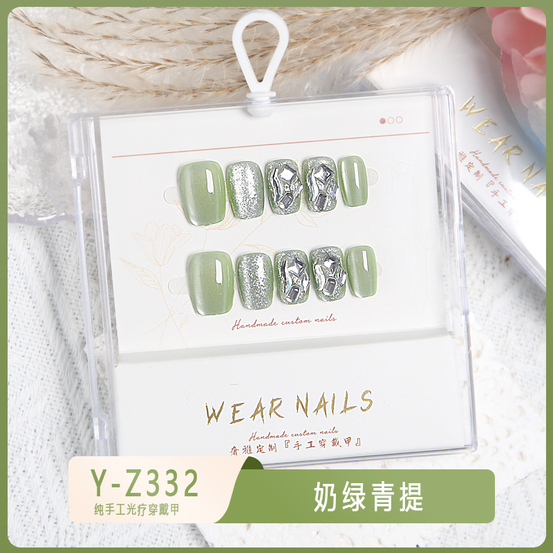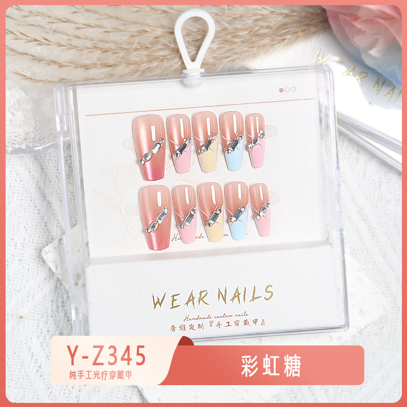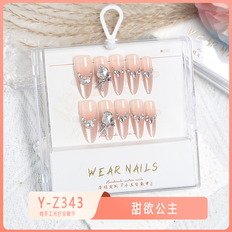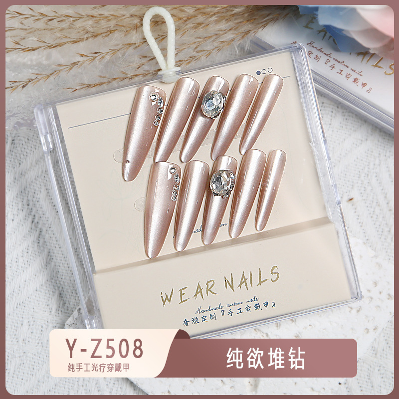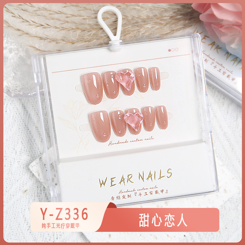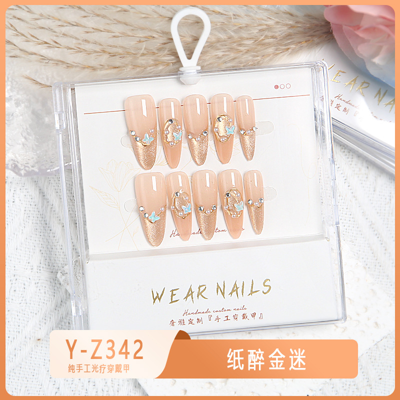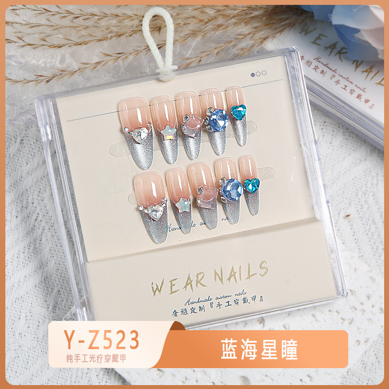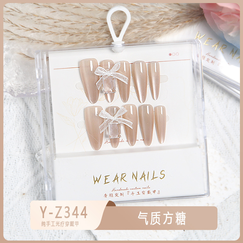 小红书爆款穿戴甲爆闪玻璃珠猫眼法式水钻美甲小众款透明盒装甲片
