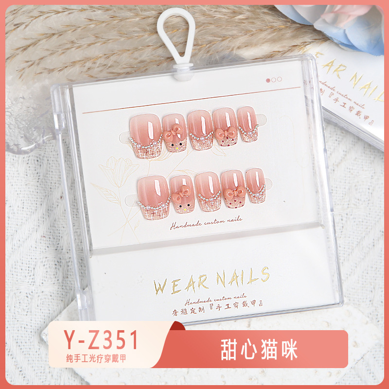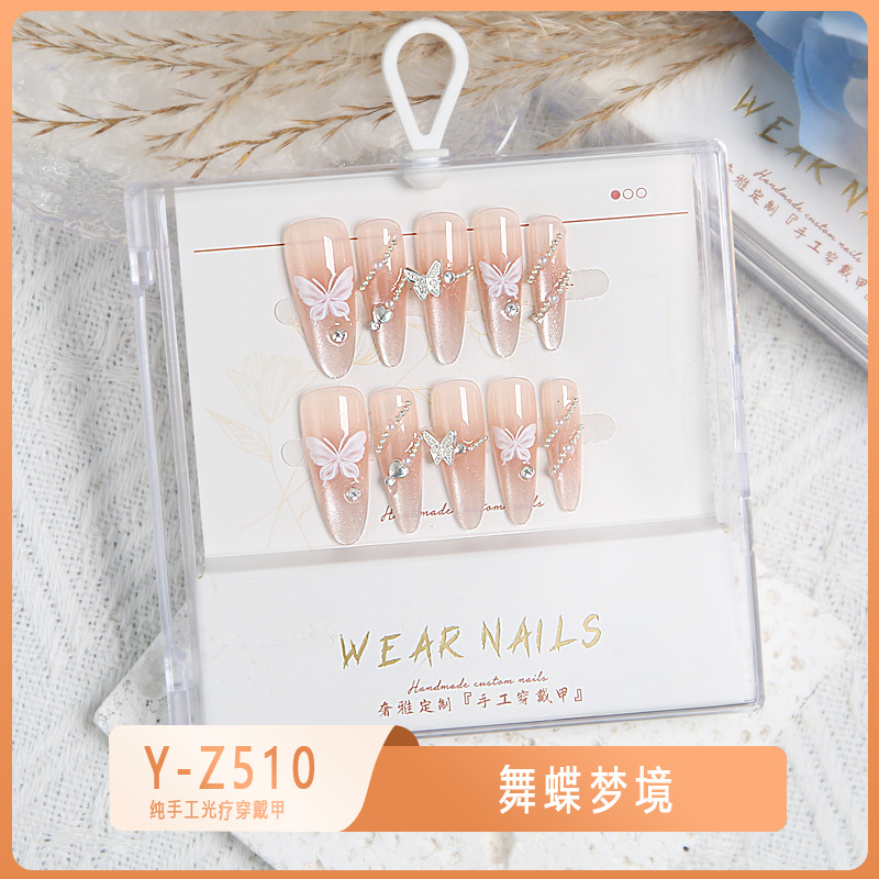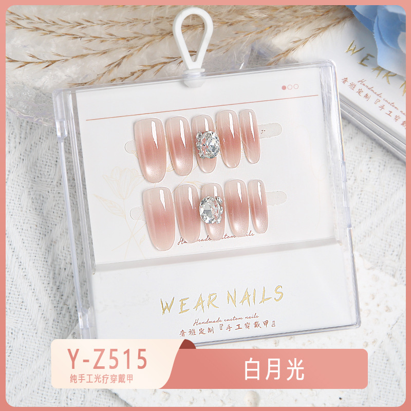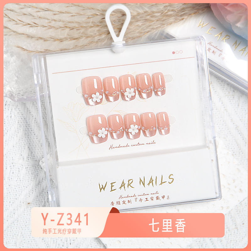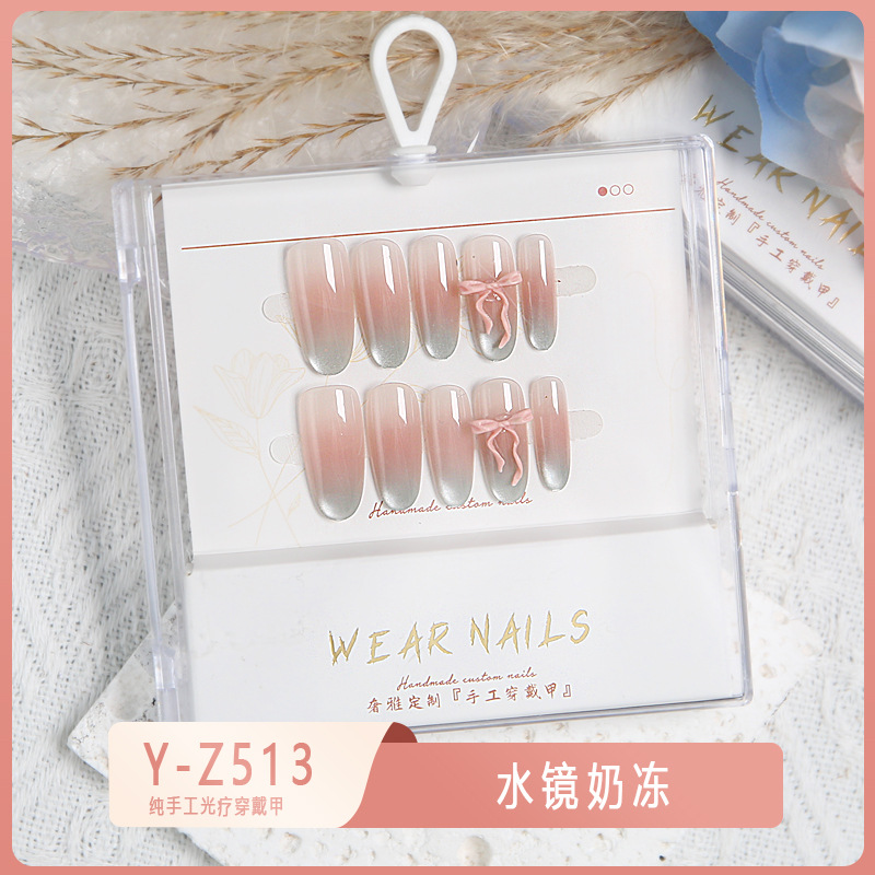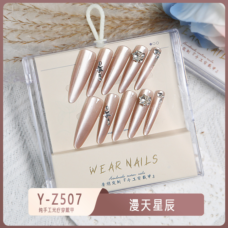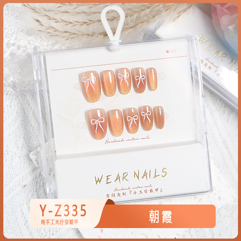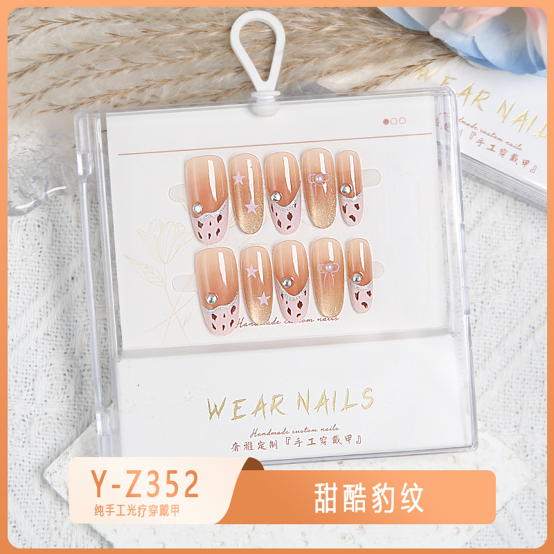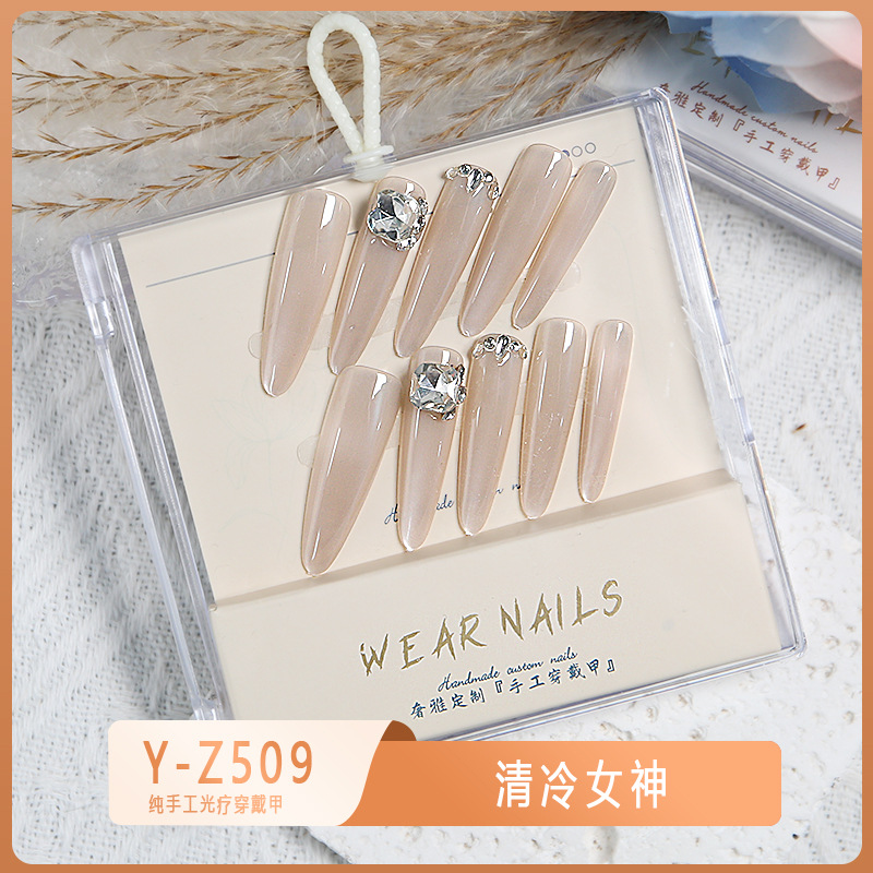 小红书爆款穿戴甲爆闪玻璃珠猫眼法式水钻美甲小众款透明盒装甲片