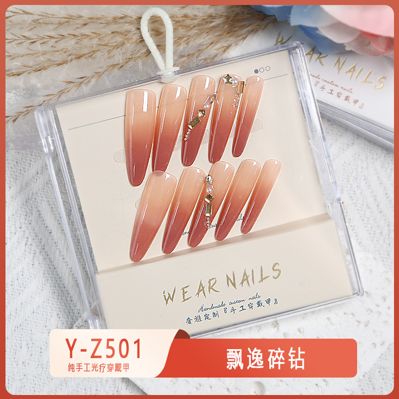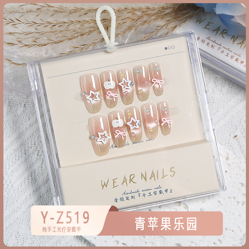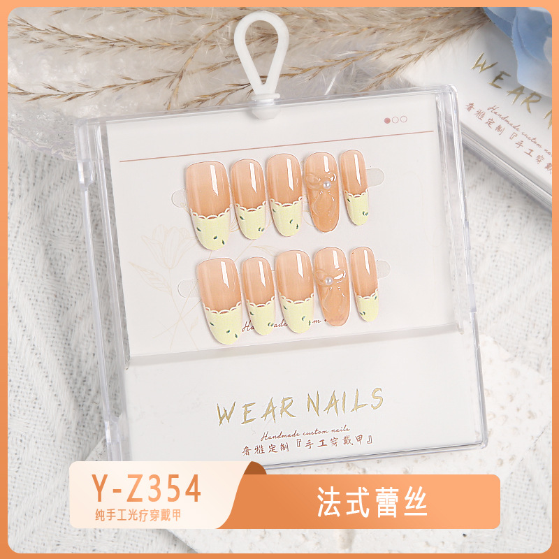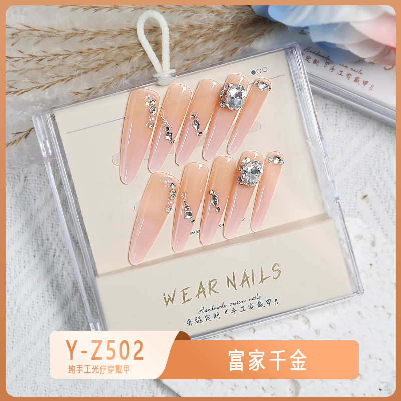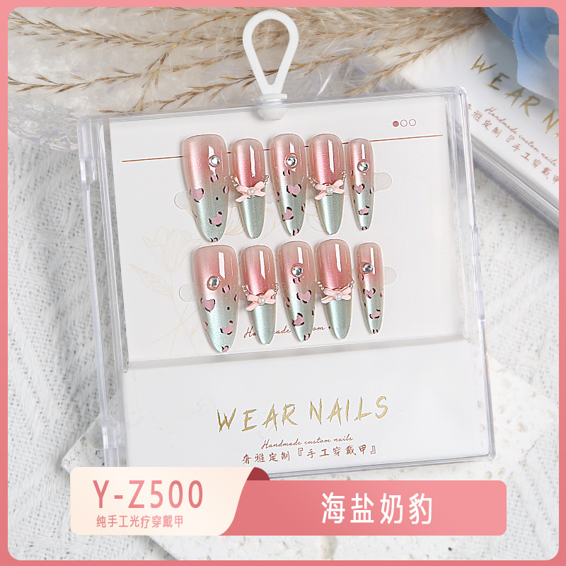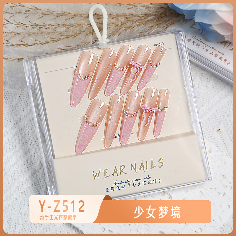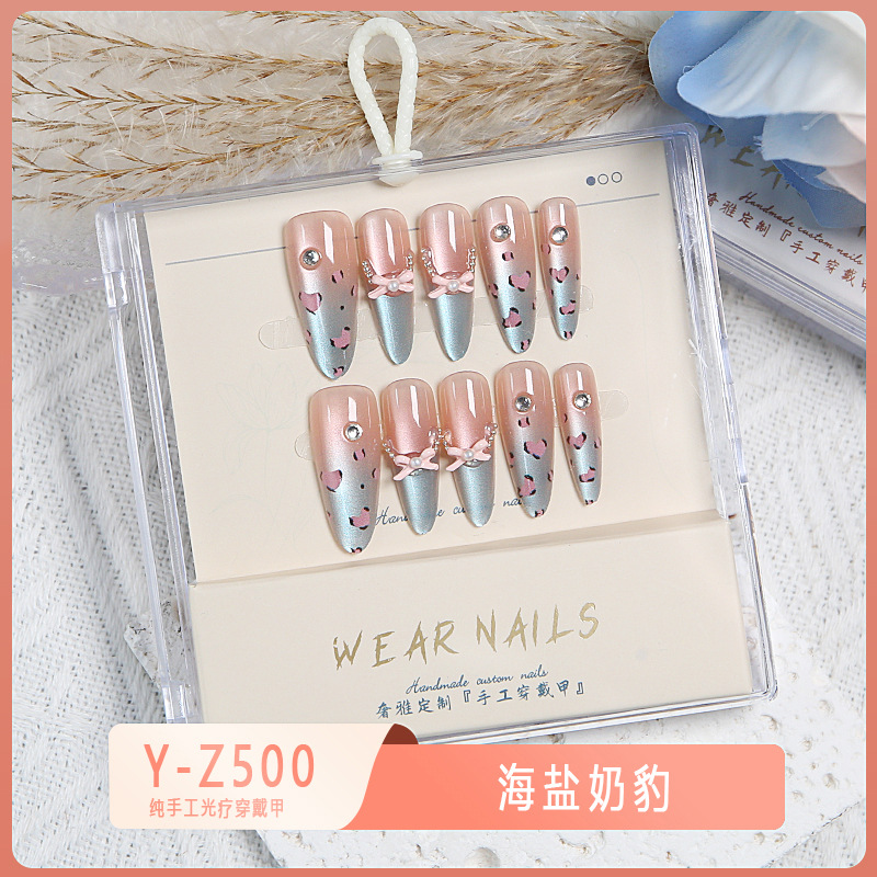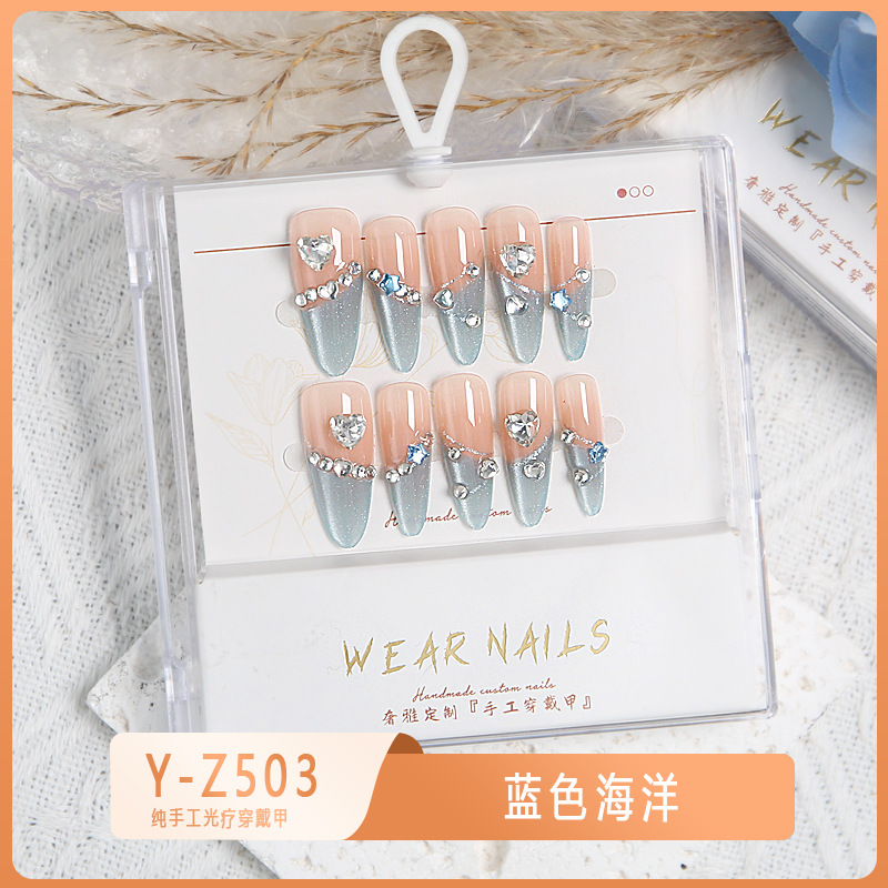 小红书爆款穿戴甲爆闪玻璃珠猫眼法式水钻美甲小众款透明盒装甲片