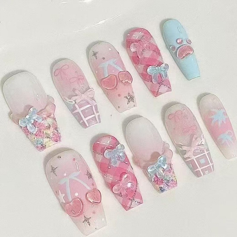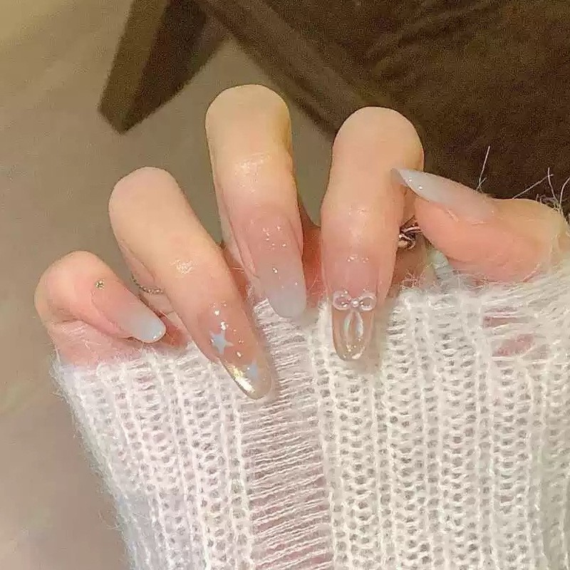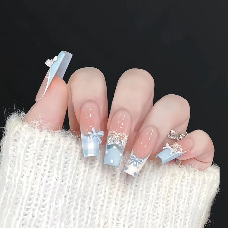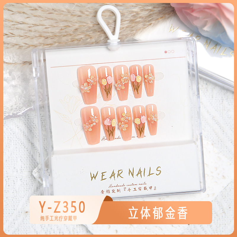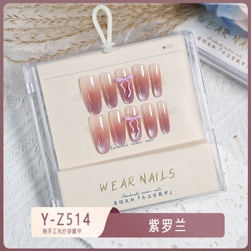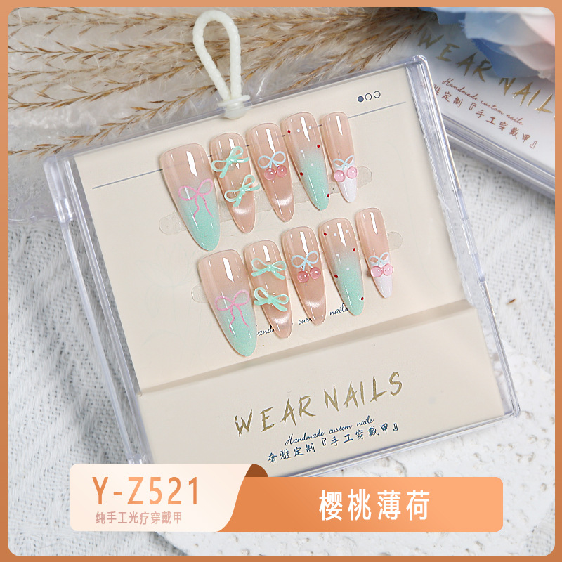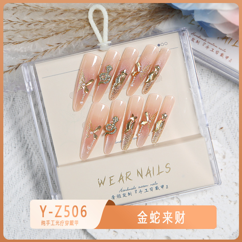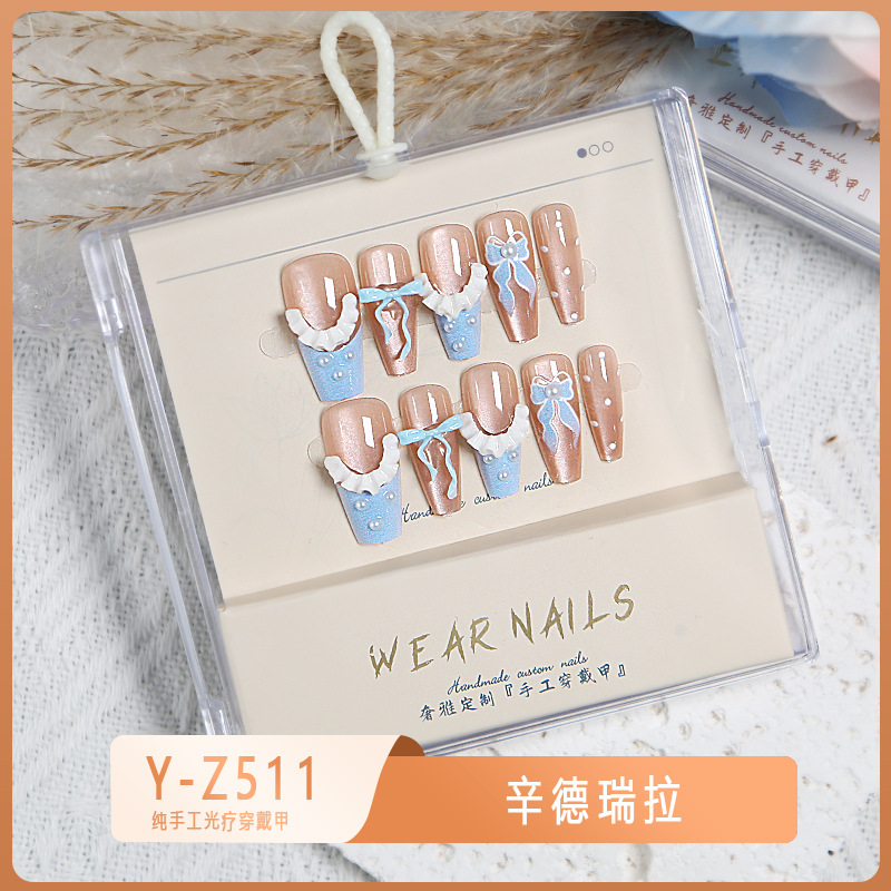 小红书爆款穿戴甲爆闪玻璃珠猫眼法式水钻美甲小众款透明盒装甲片