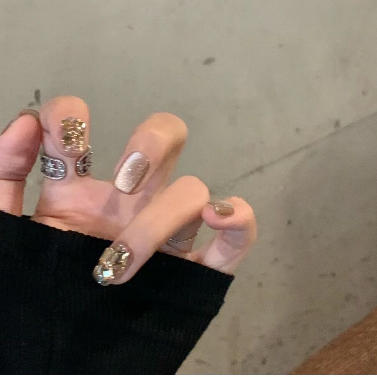 穿戴甲爆闪香槟钻显白气质手工猫眼穿戴式指甲贴成品甲片30片猫眼